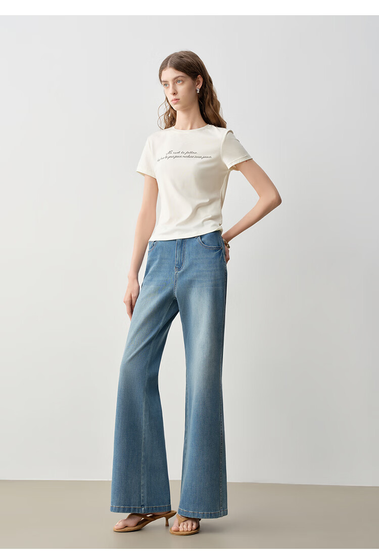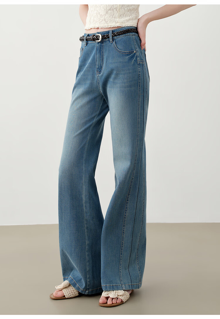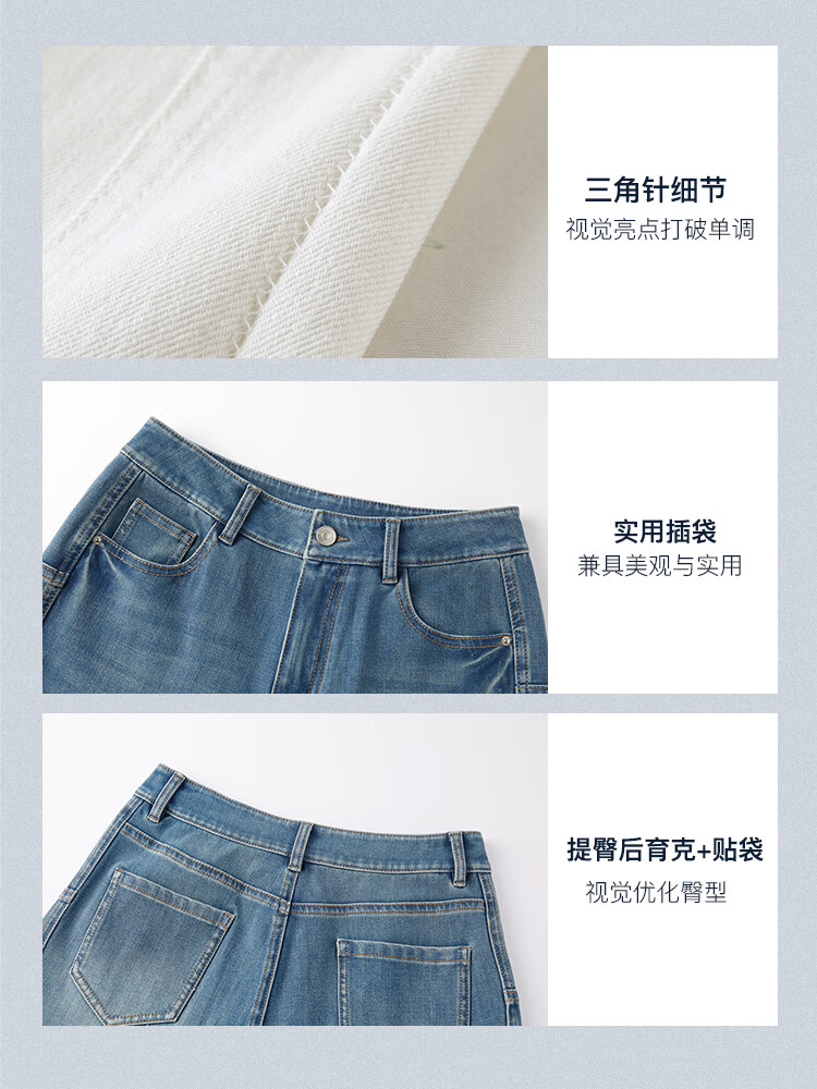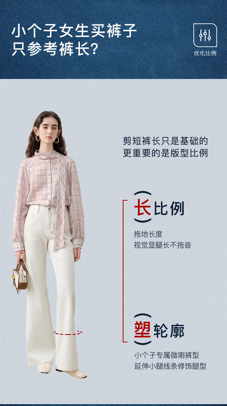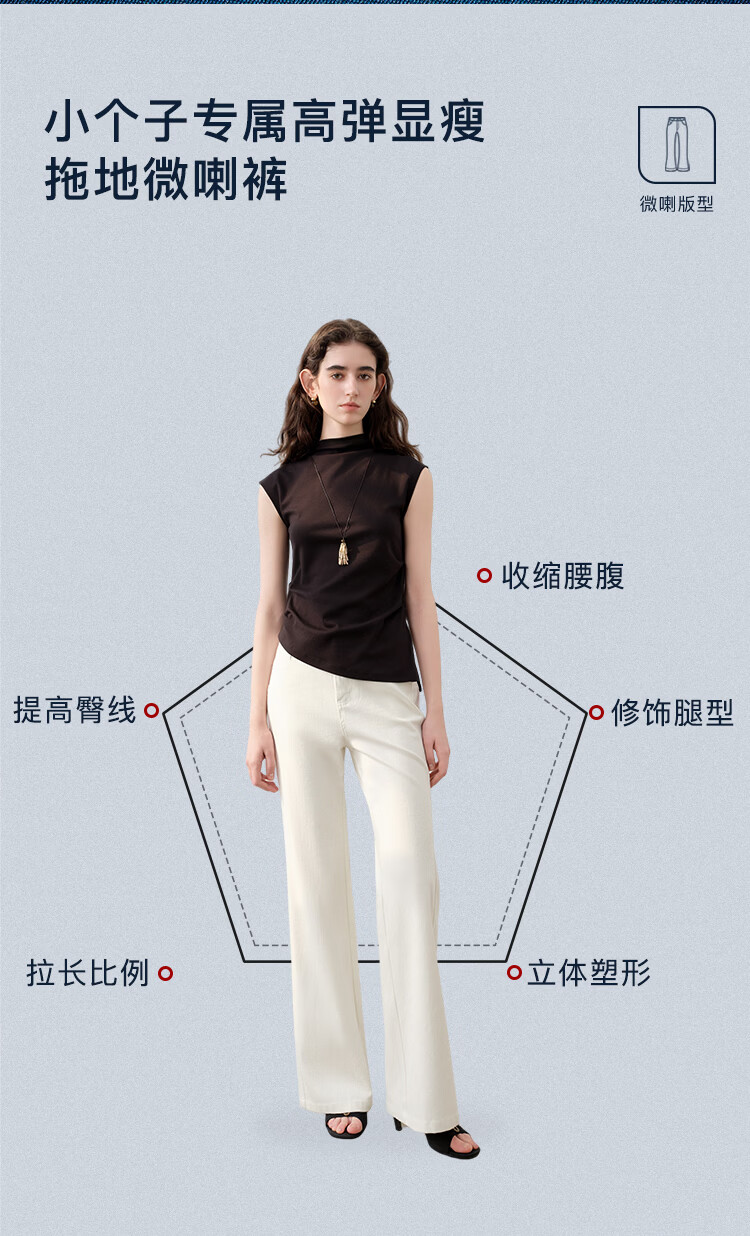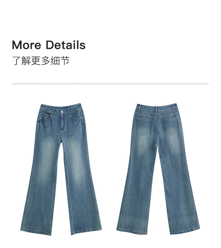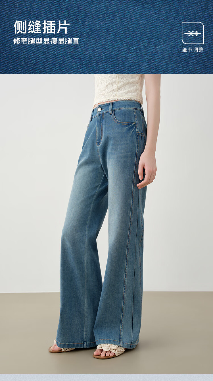 自巧小个子侧缝插片微喇裤牛仔裤女2026新款浅蓝色喇叭裤360°弹 牛仔蓝 L (尺码:5)