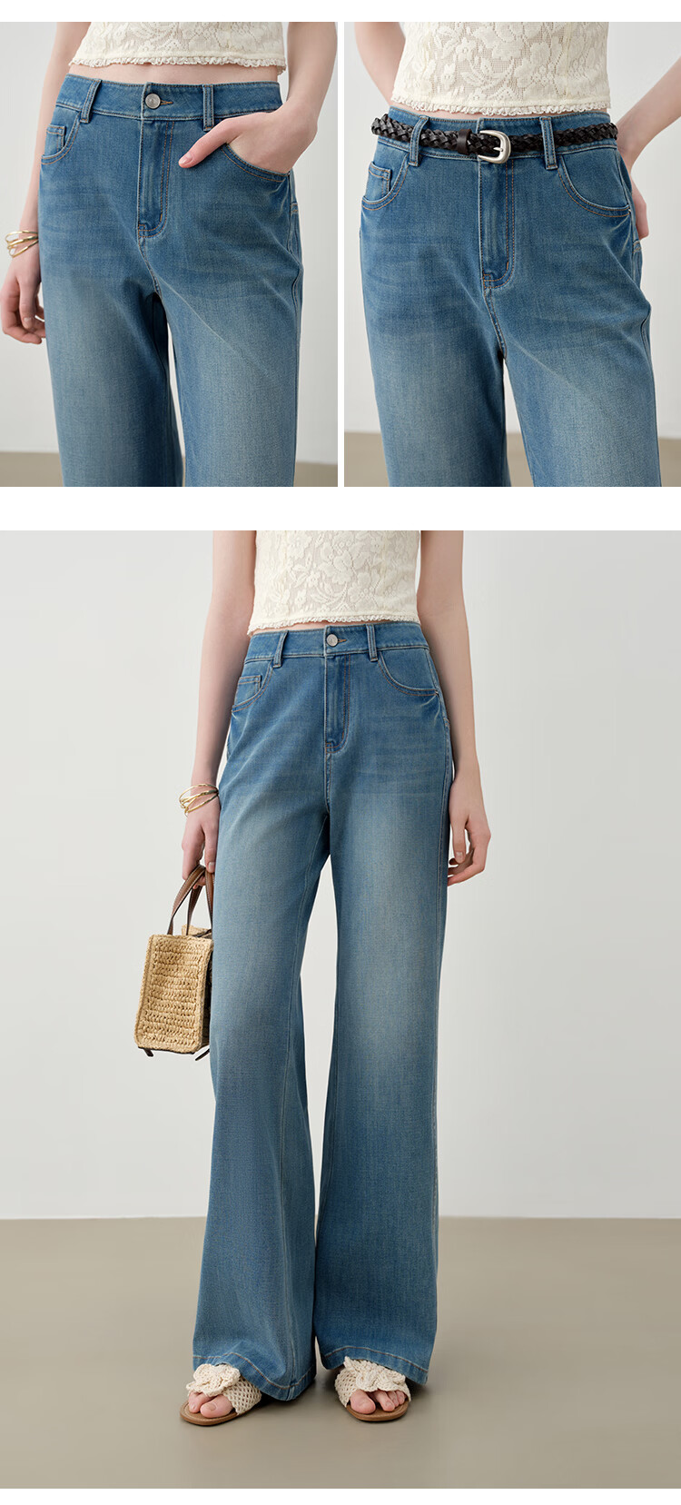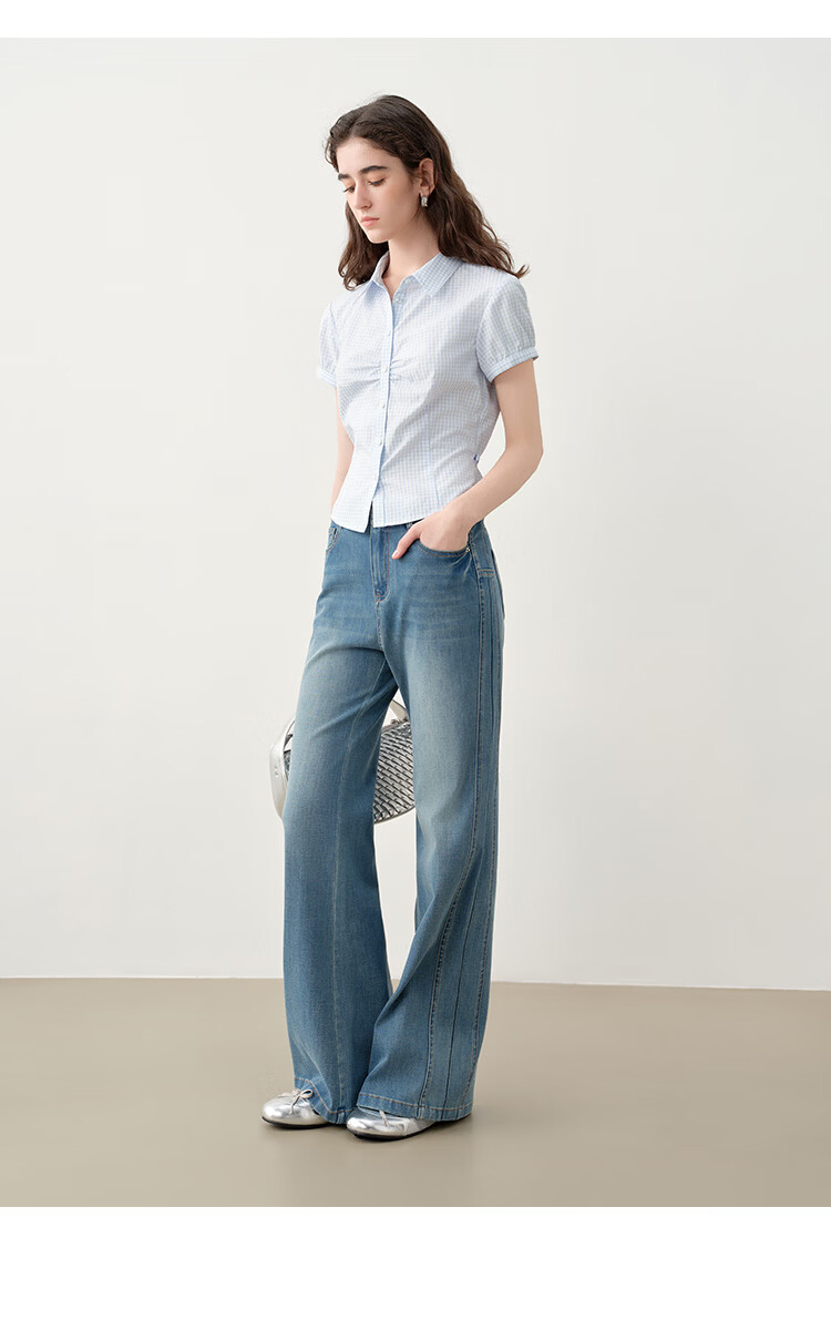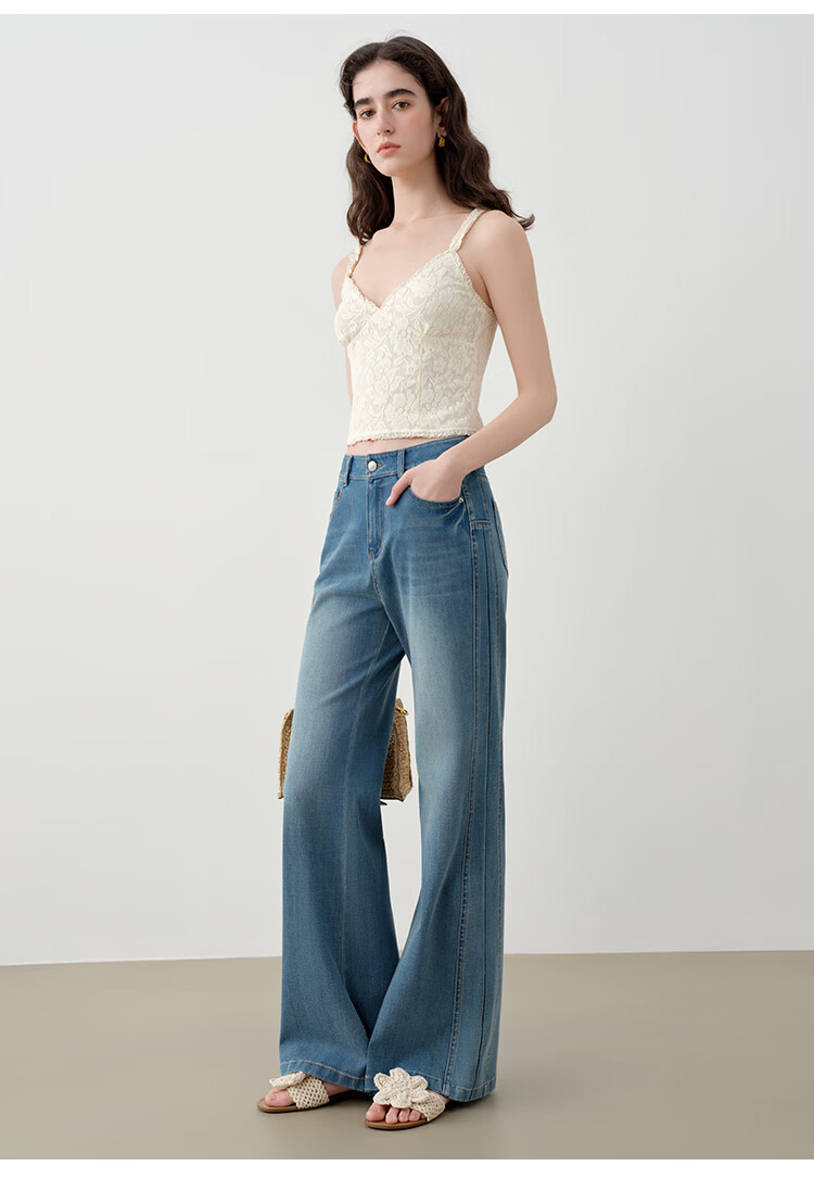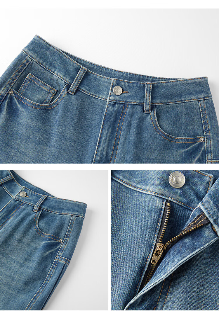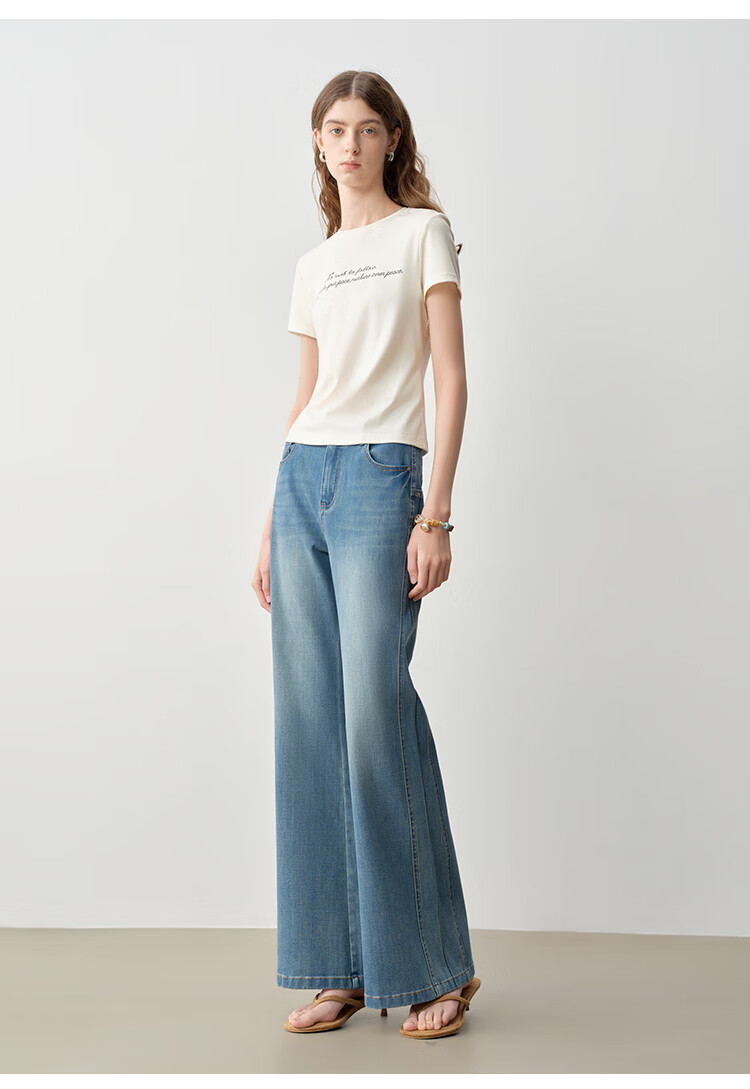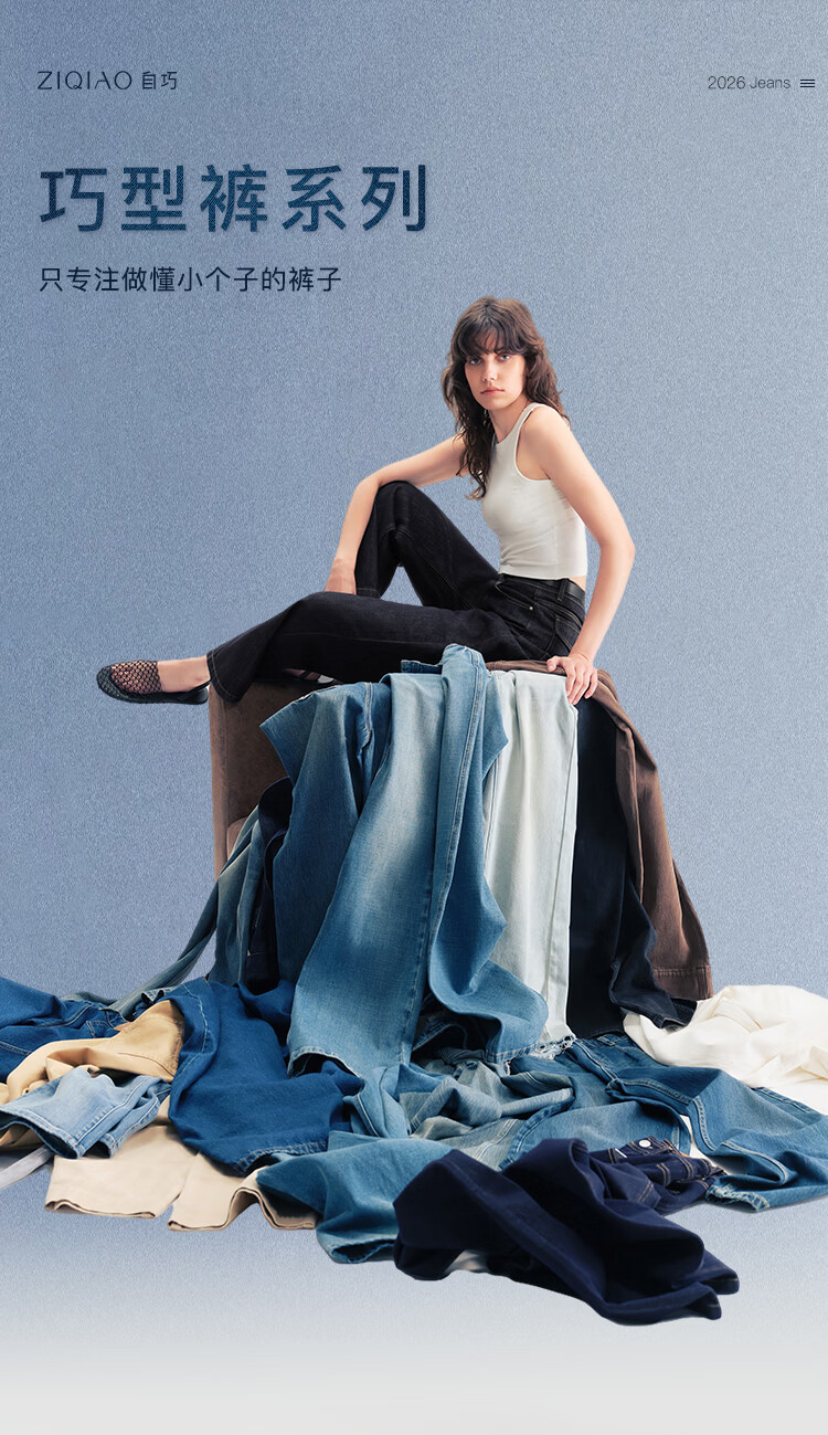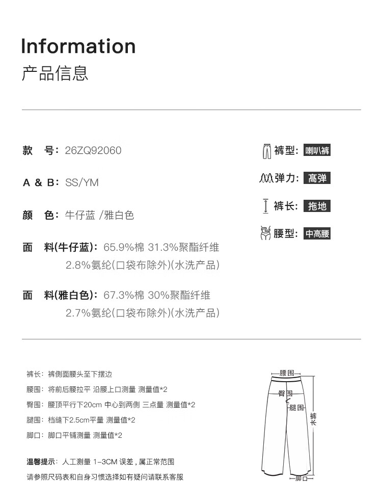 自巧小个子侧缝插片微喇裤牛仔裤女2026新款浅蓝色喇叭裤360°弹 牛仔蓝 L (尺码:5)