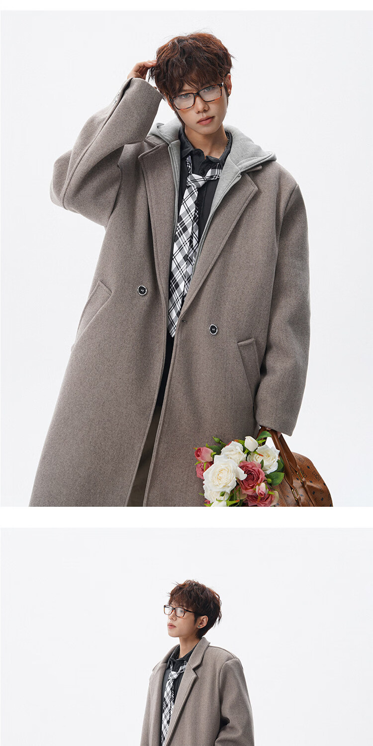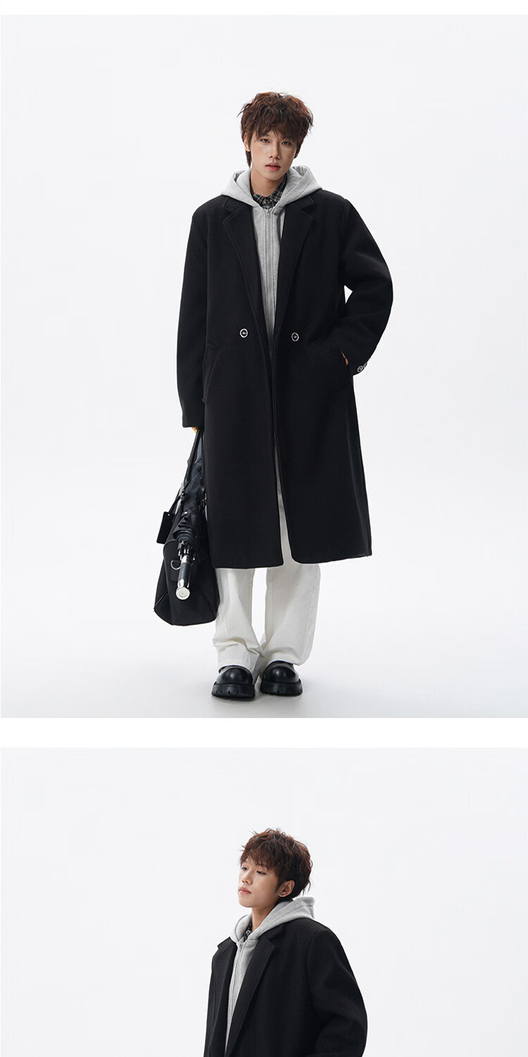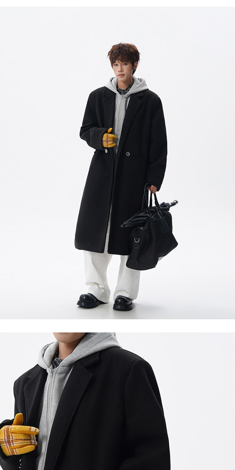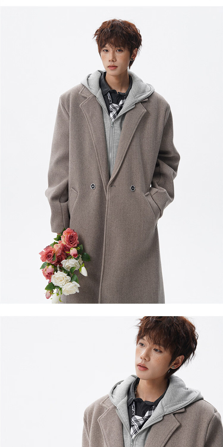 NEW OR MODE假两件高级感毛呢大衣男士冬季新款可拆卸连帽中长款过膝加棉外套 黑色夹棉 M 【建议90-110斤】
