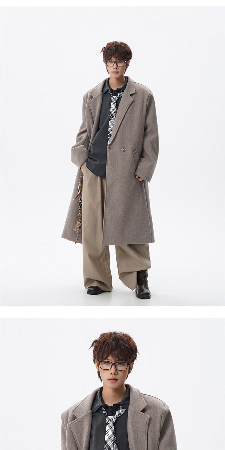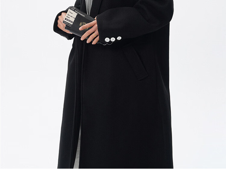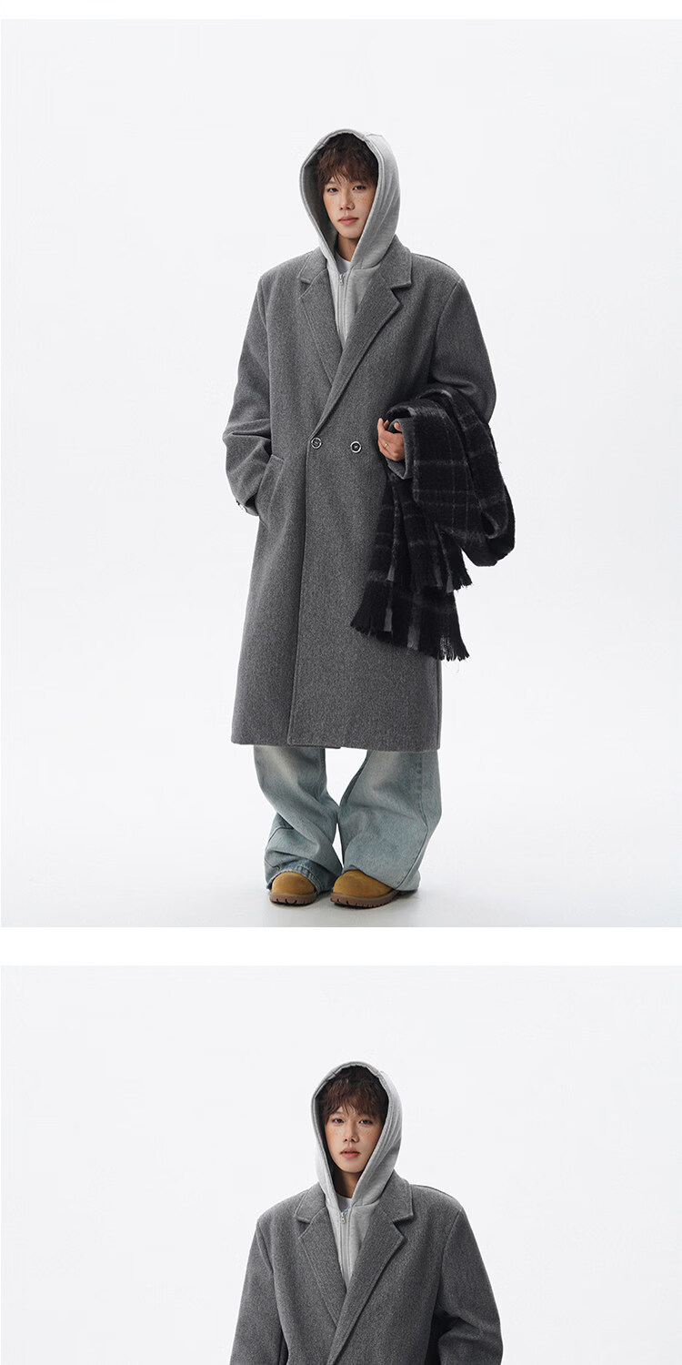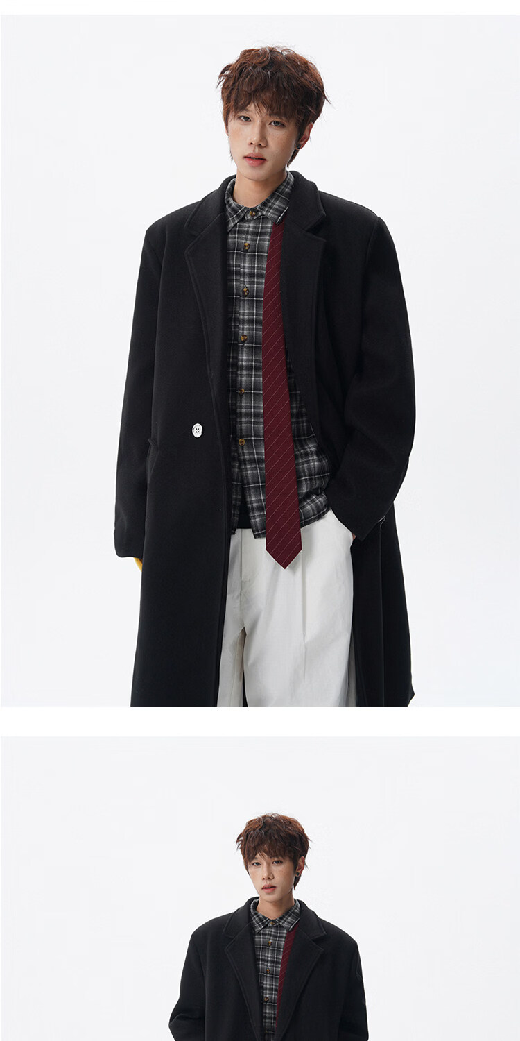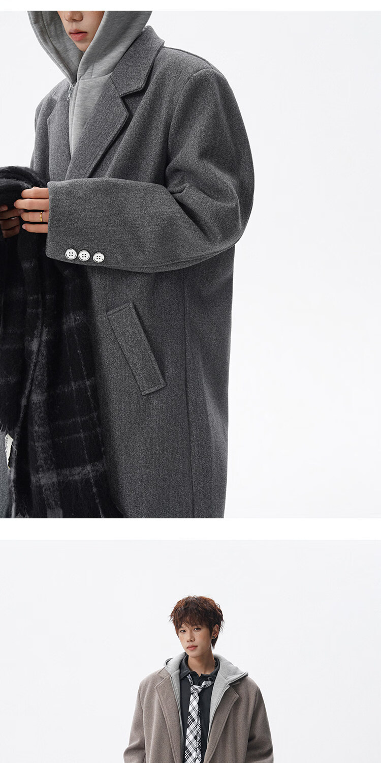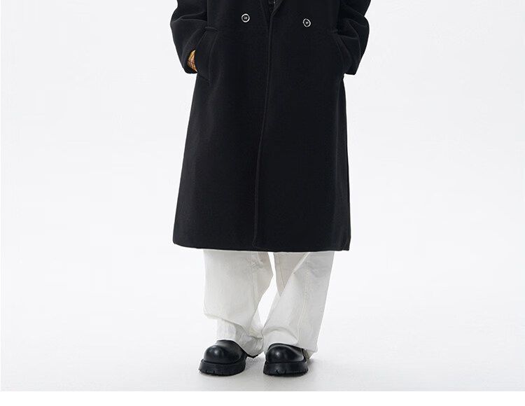 NEW OR MODE假两件高级感毛呢大衣男士冬季新款可拆卸连帽中长款过膝加棉外套 黑色夹棉 M 【建议90-110斤】