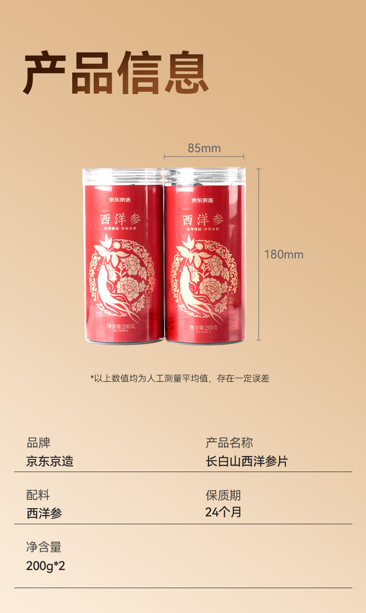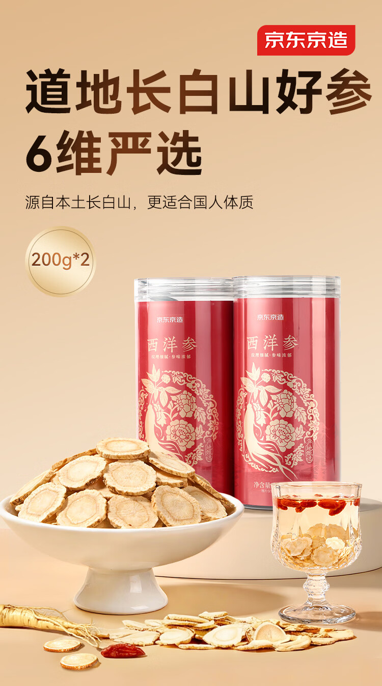 京东京造西洋参片400g 0.6-0.8cm补品 长白山产送父母长辈营养品礼品