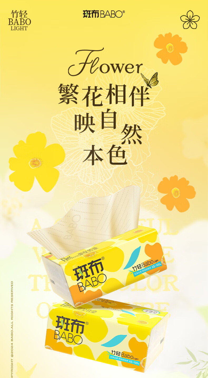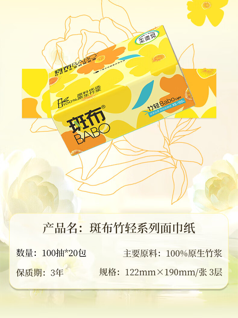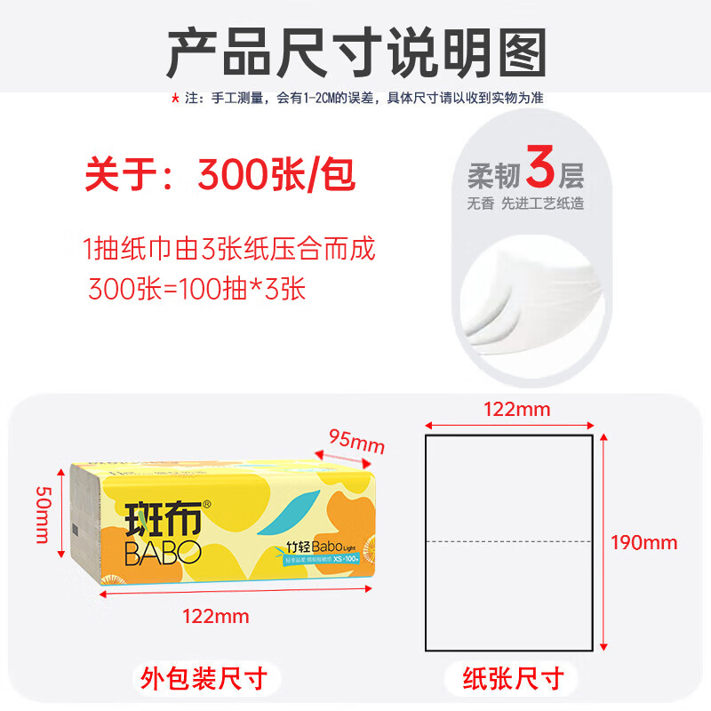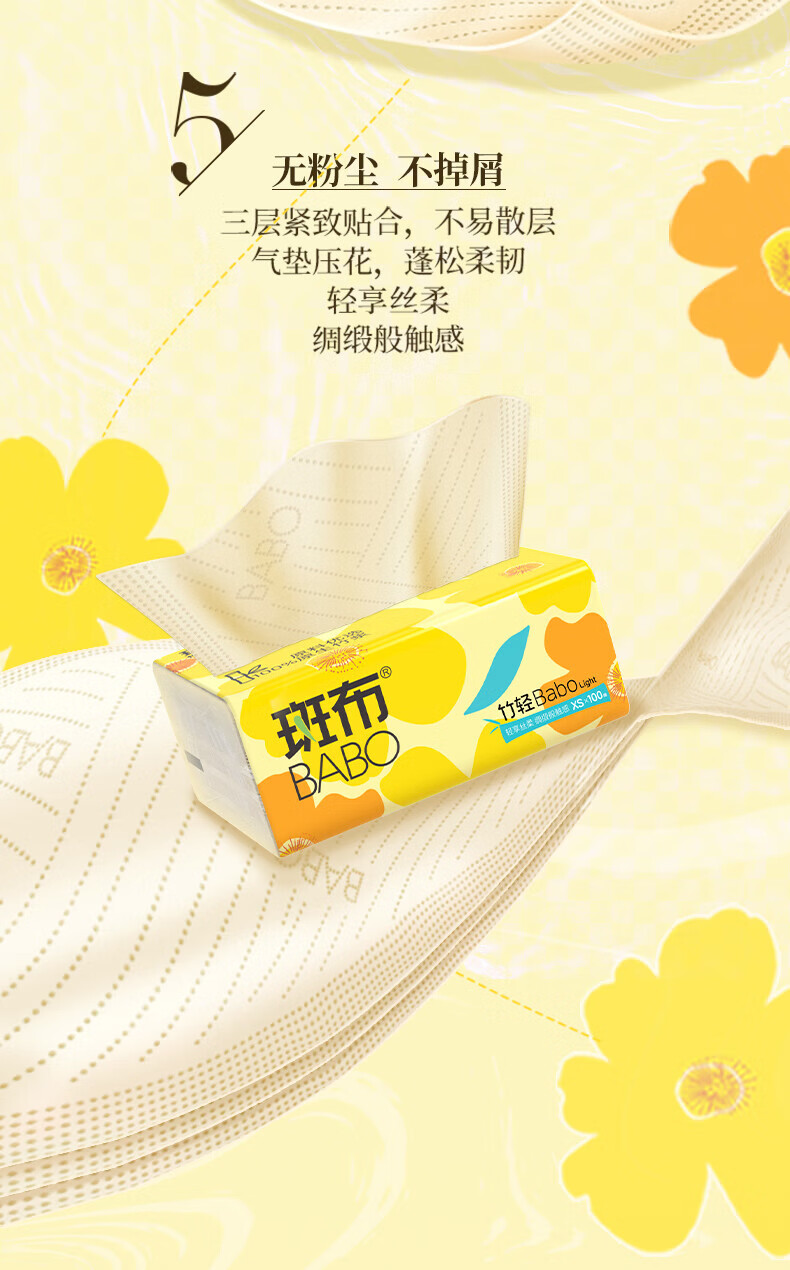 斑布抽纸 纸巾3层加厚300张软抽 餐巾纸擦手纸家用卫生纸 3层 300张*8包 【新客专享】
