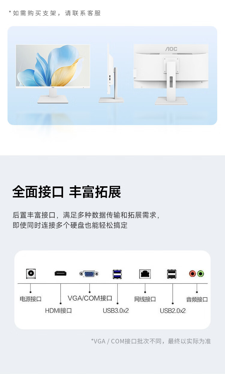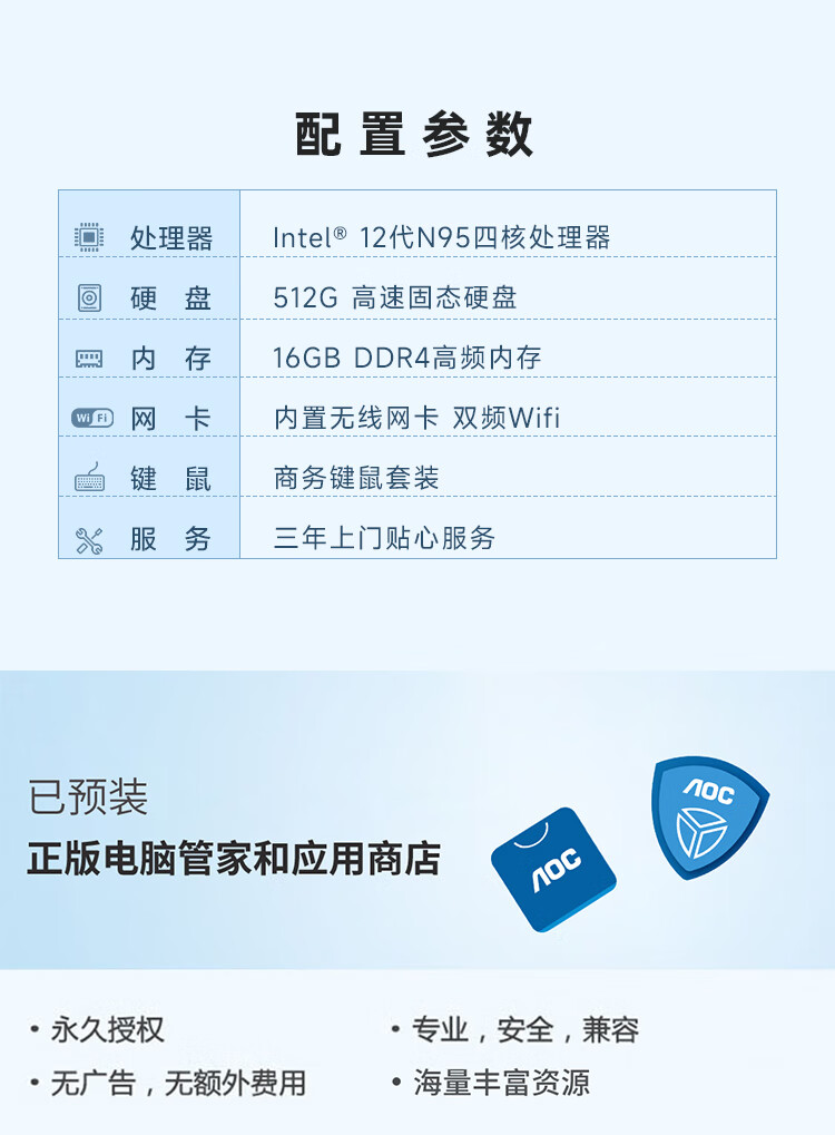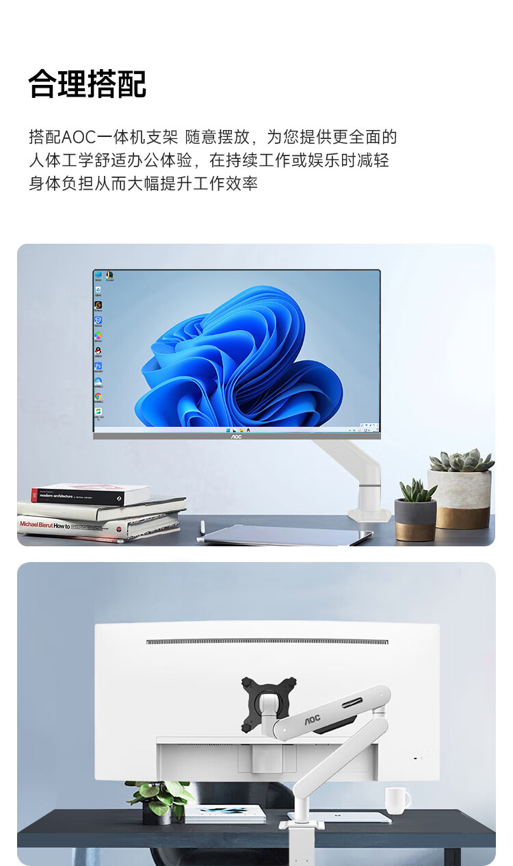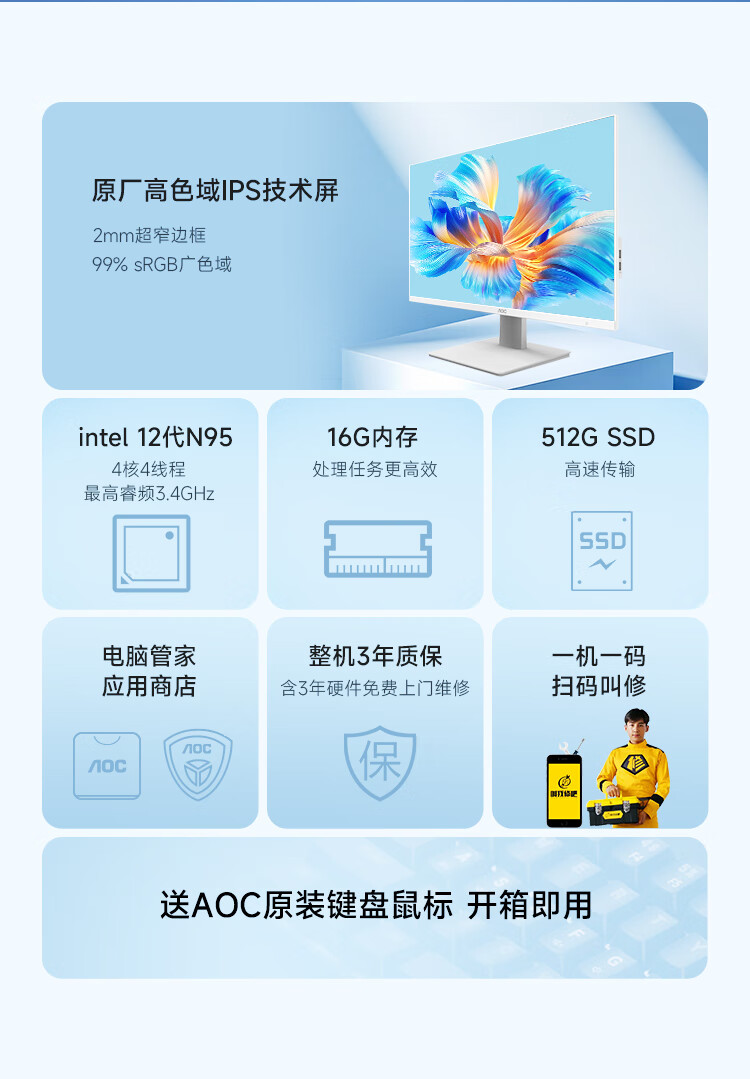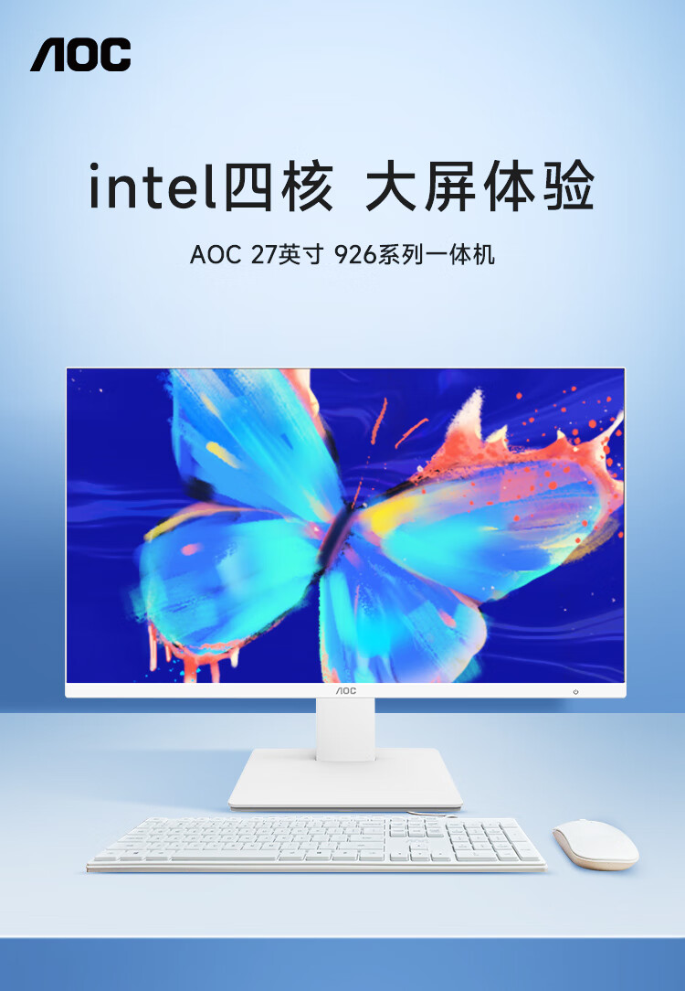AOC国家补贴大师926 27英寸高清学习商用办公一体机电脑台式主机(N95 16G 512G WIFI键鼠) 白