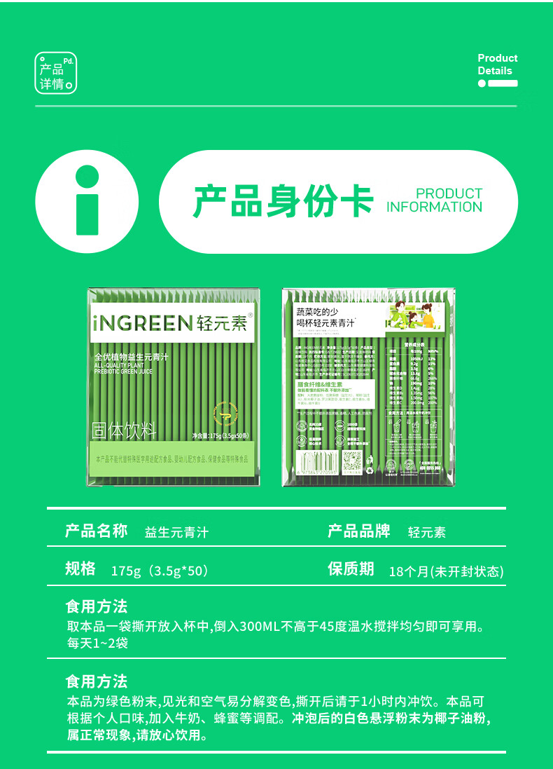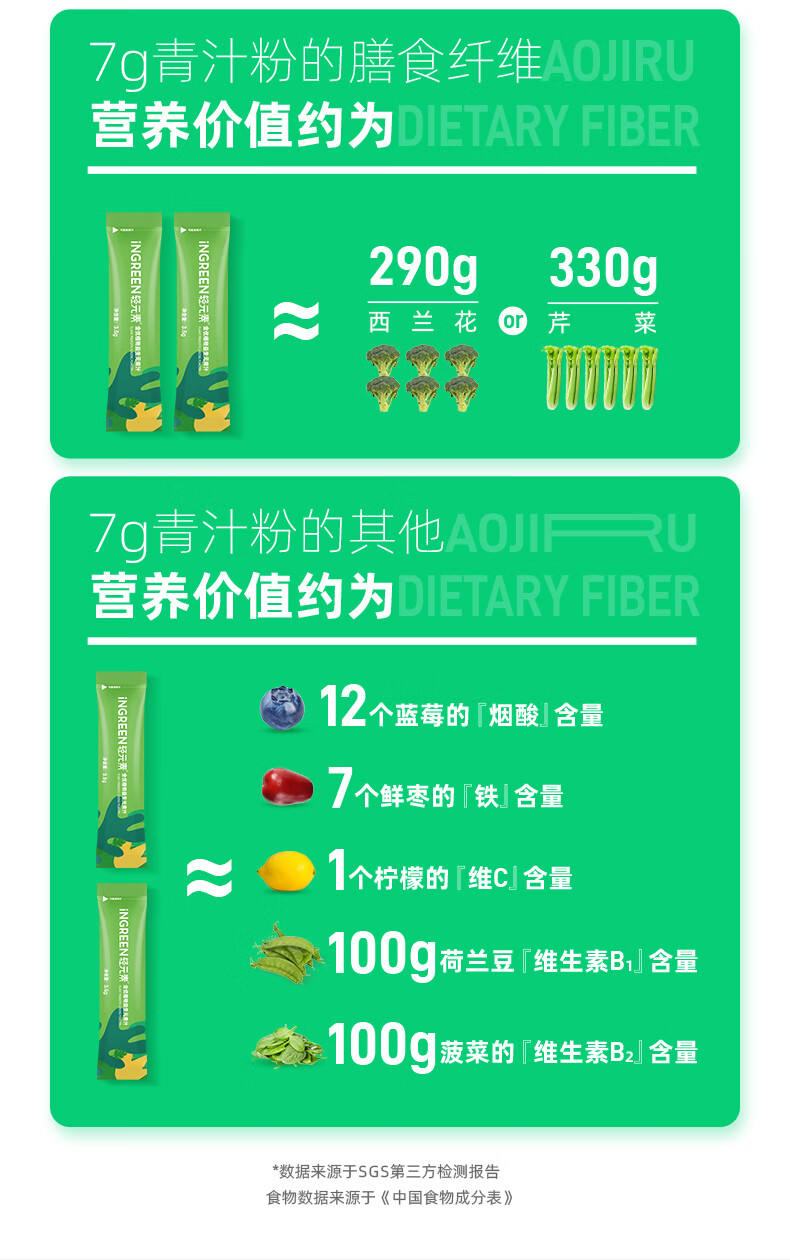 轻元素全优植物益生元青汁175g(50袋) 高膳食纤维代餐粉早餐冲饮