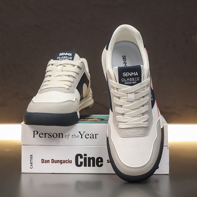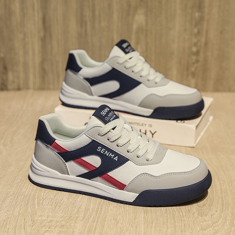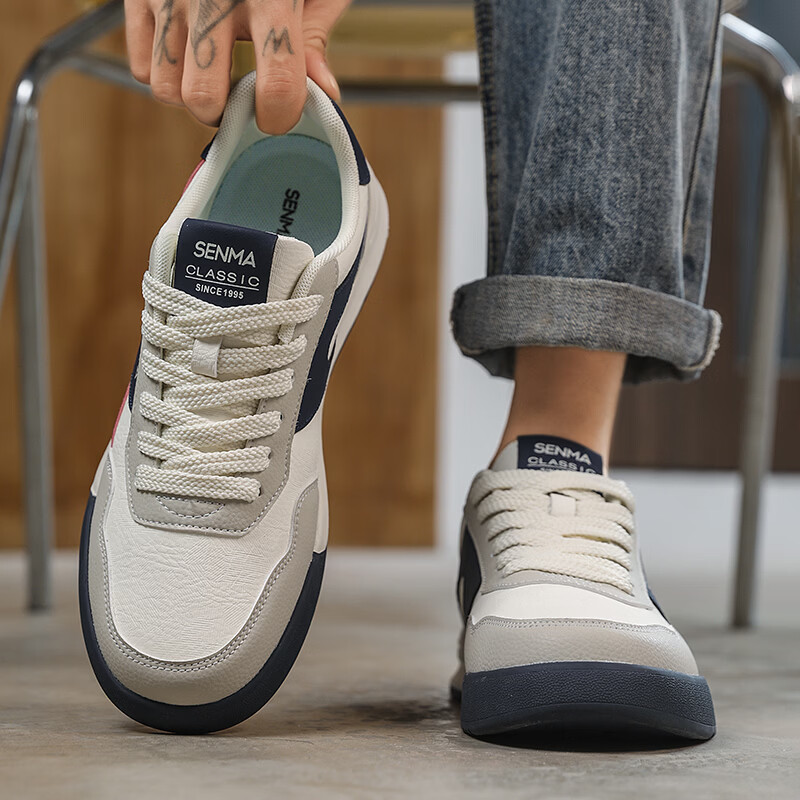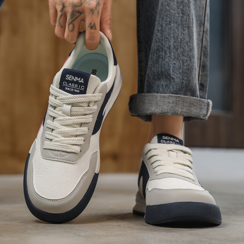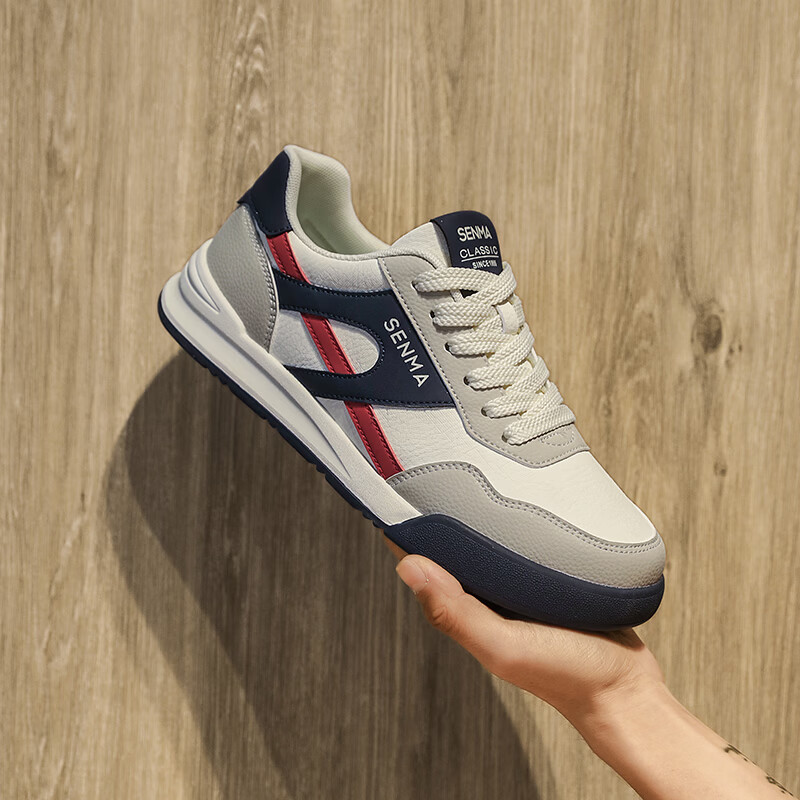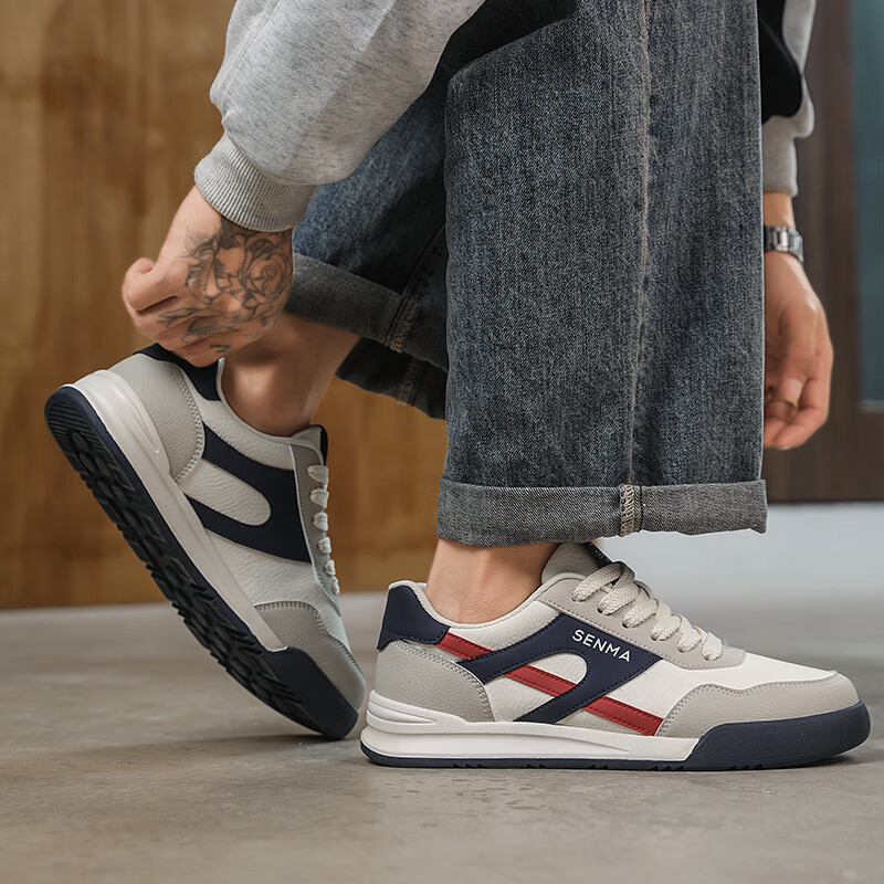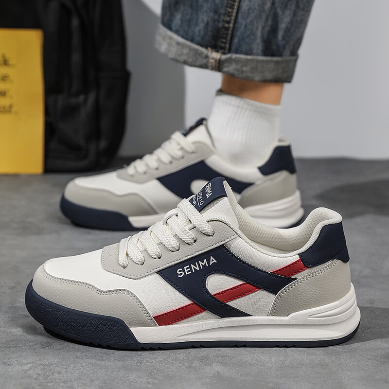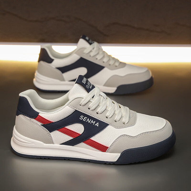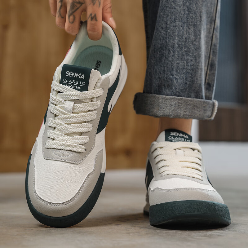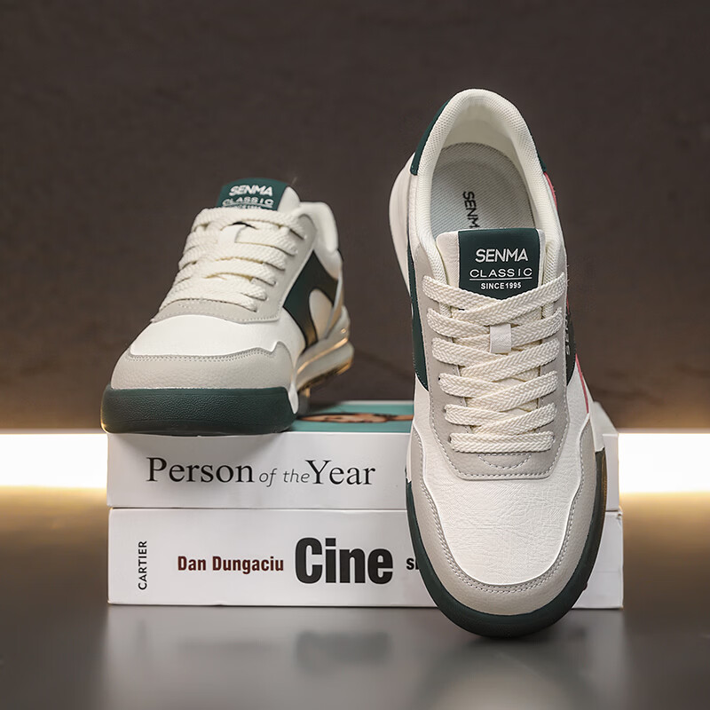 森馬男鞋春季2026新款防滑防臭软底休闲板鞋男士韩版百搭皮面运动潮鞋 米绿红【基础款】 39 标准码数/现货秒发