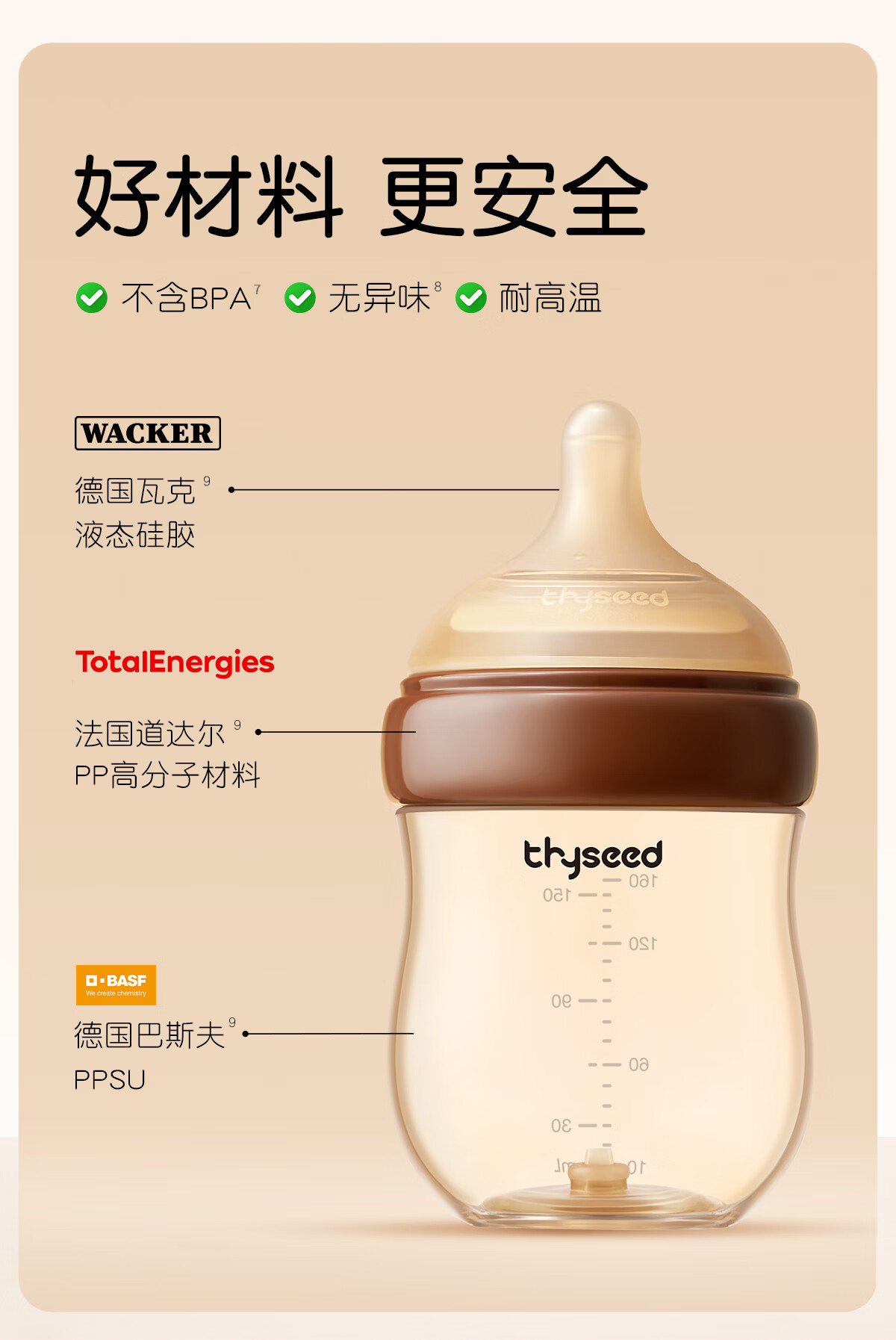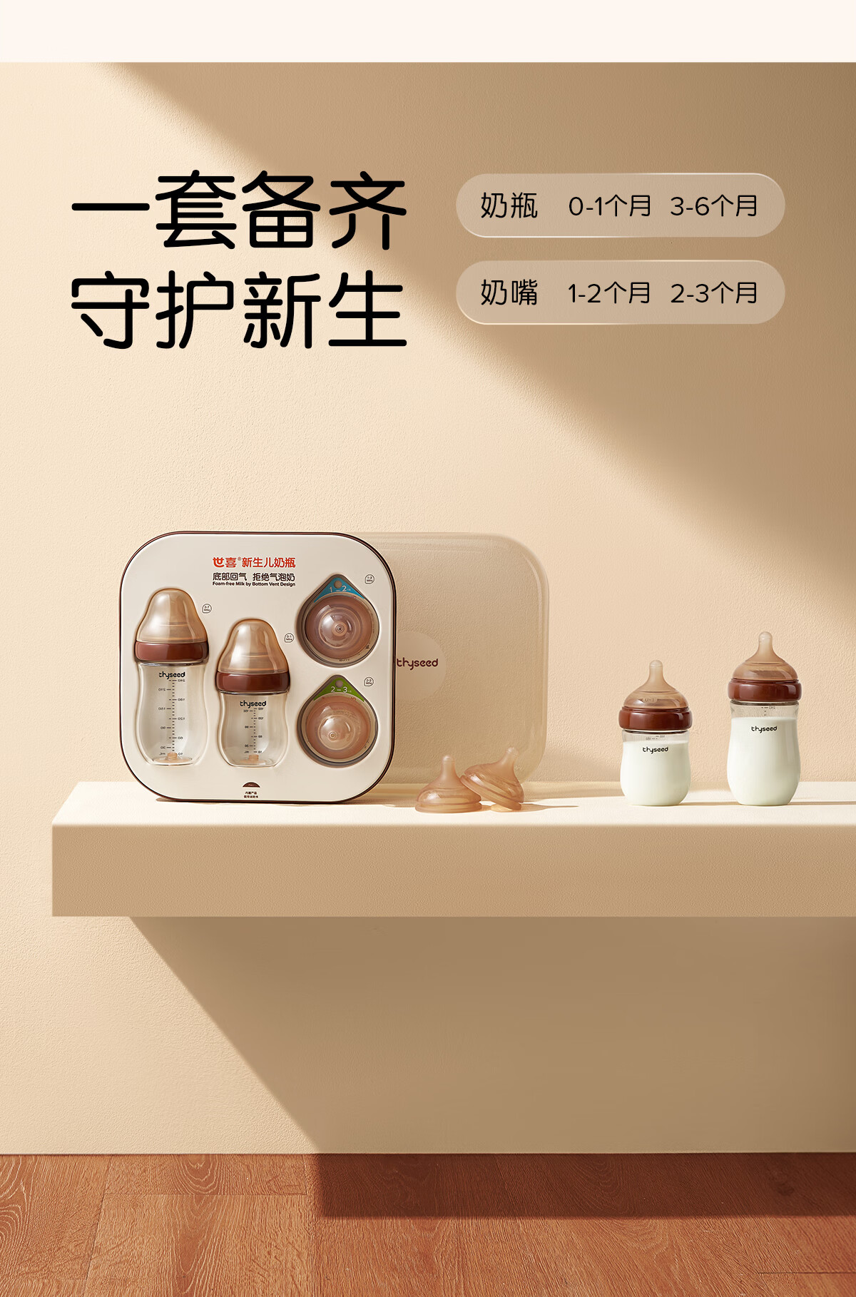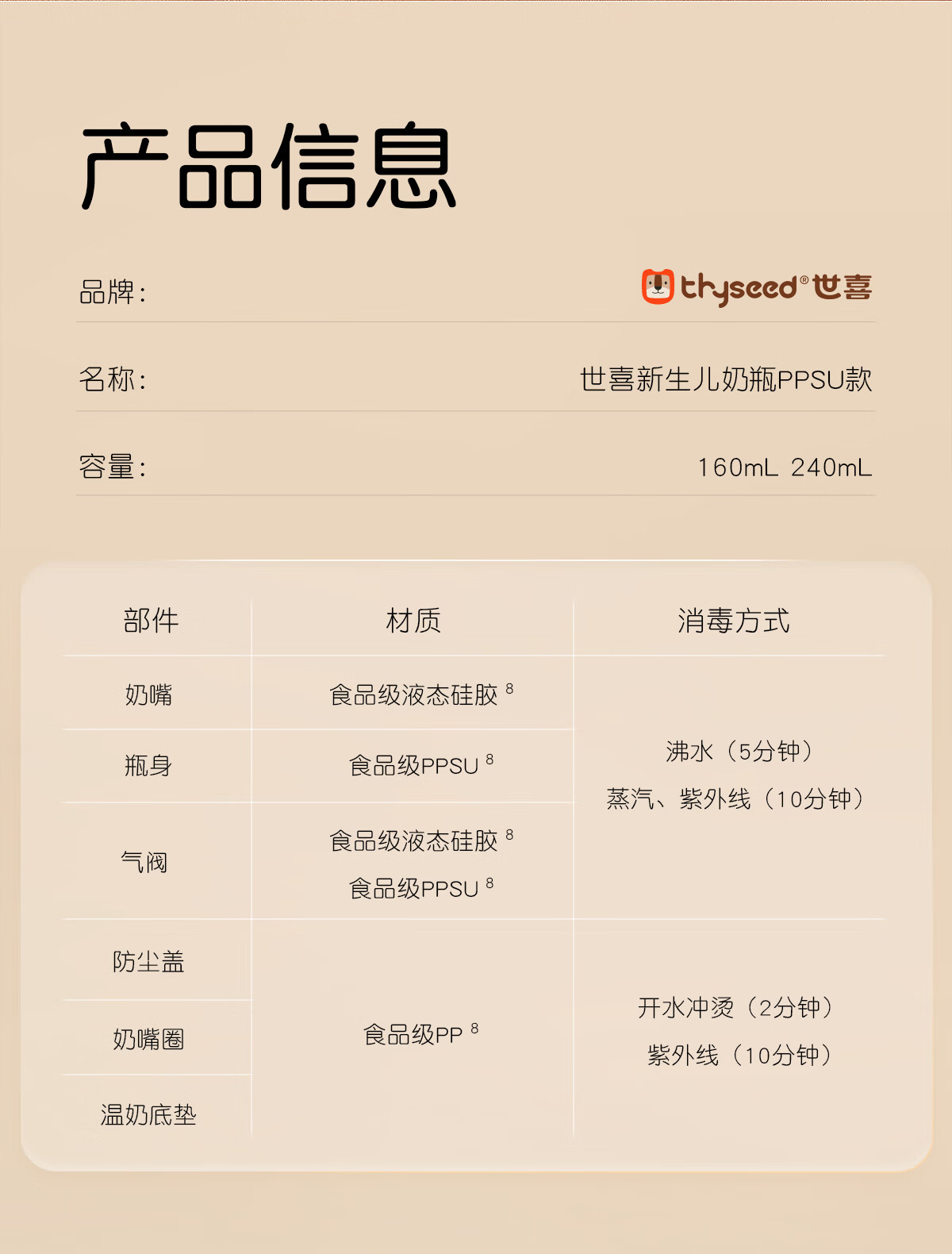 世喜奶瓶新生儿3-6个月以上防胀气ppsu婴儿仿母乳奶嘴240ml