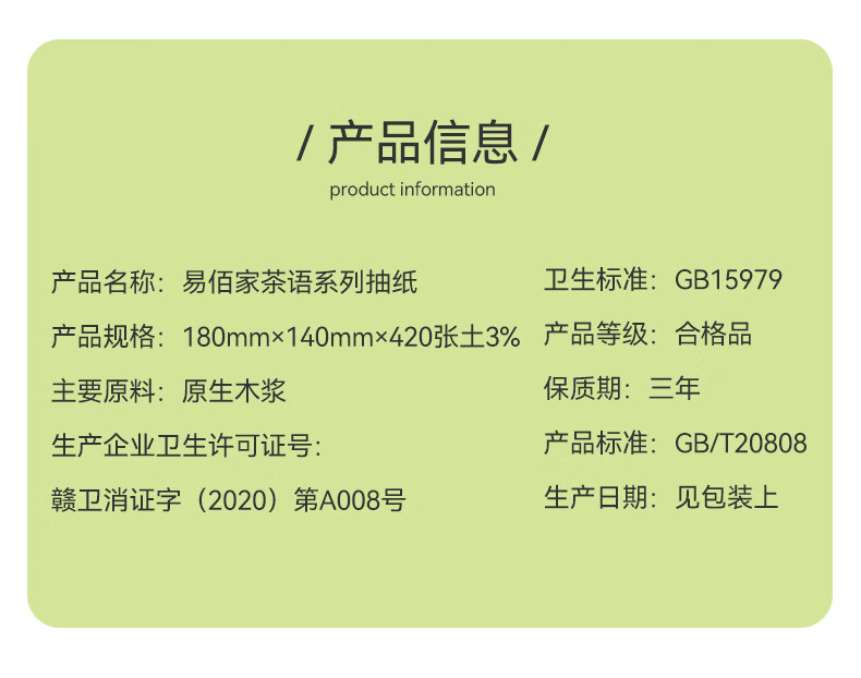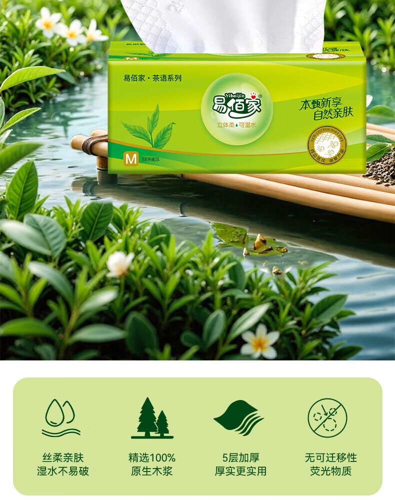 易佰家茶语系列抽纸巾大规格整提装 4层 420张*10包 (1提)