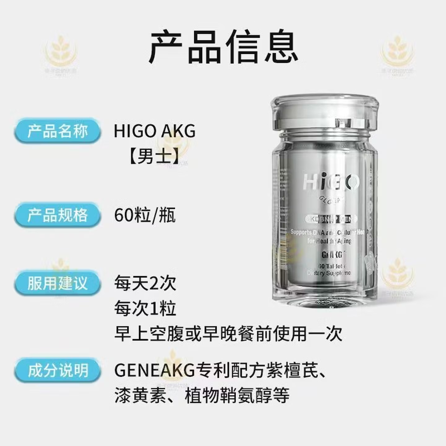 HIGO美国嘿米新款基因AKG海购AKG逆年片男士女士抗衰老抗氧化原装进口 美国新款HIGO抗衰老女款 60片*3瓶