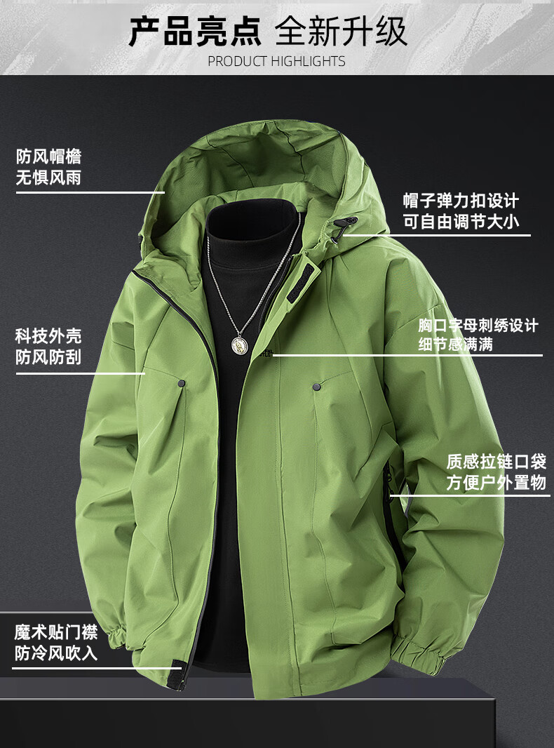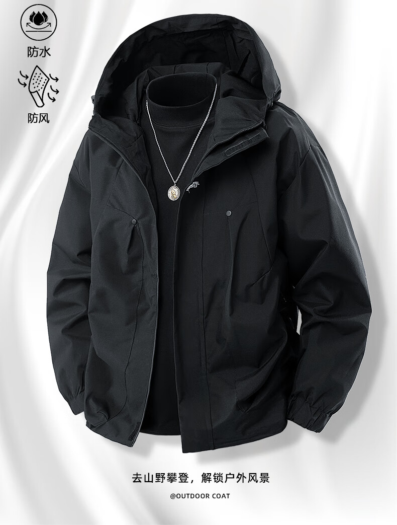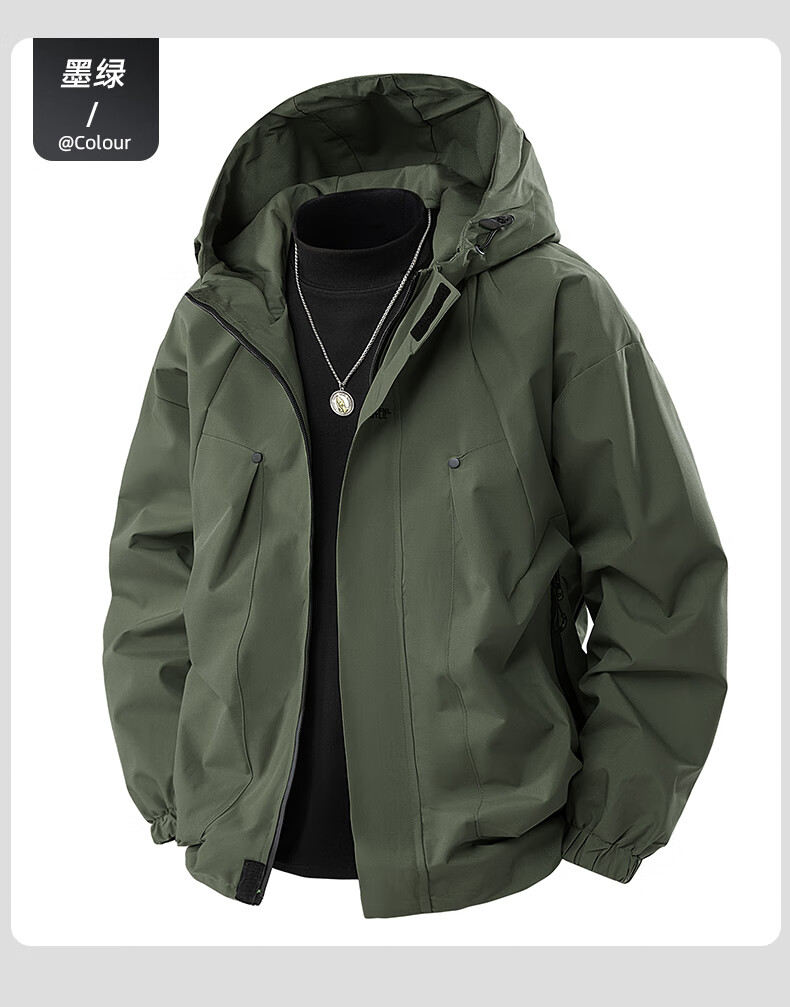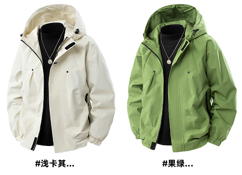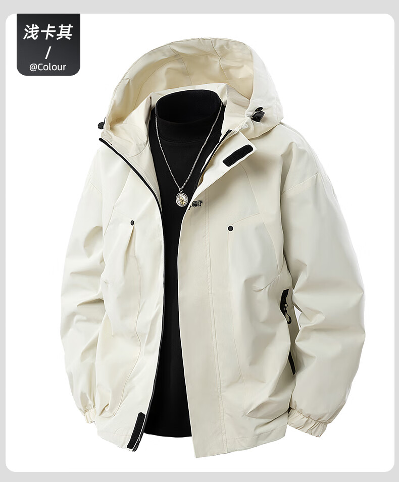 JEEP SPIRIT冲锋衣外套男款春秋季户外防风防水登山青少年情侣工装夹克 浅卡其 XL