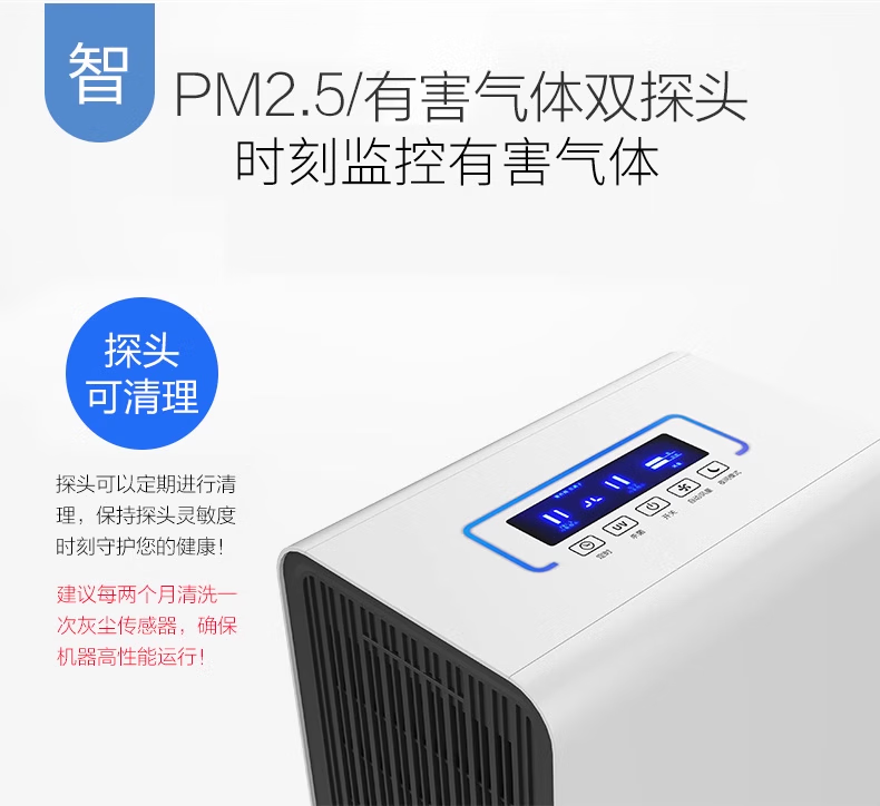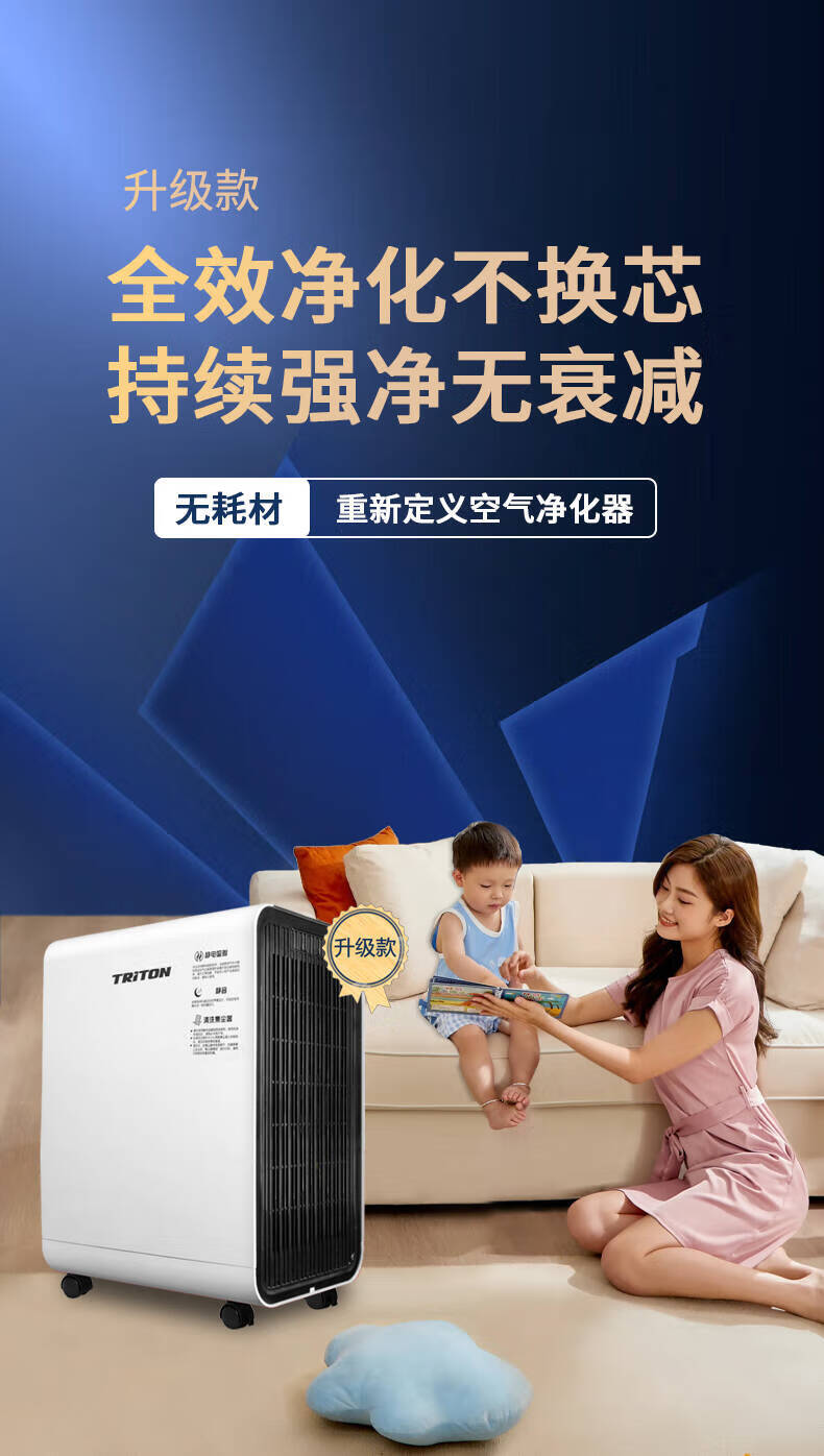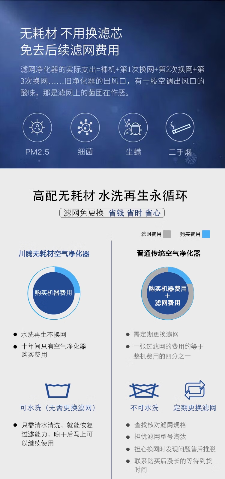 川腾无耗材空气净化器家用除甲醛二手烟PM2.5室内卧室内异味紫外线杀菌智能负离子可水洗 旗舰款无耗材+滤网复合顶配款白色