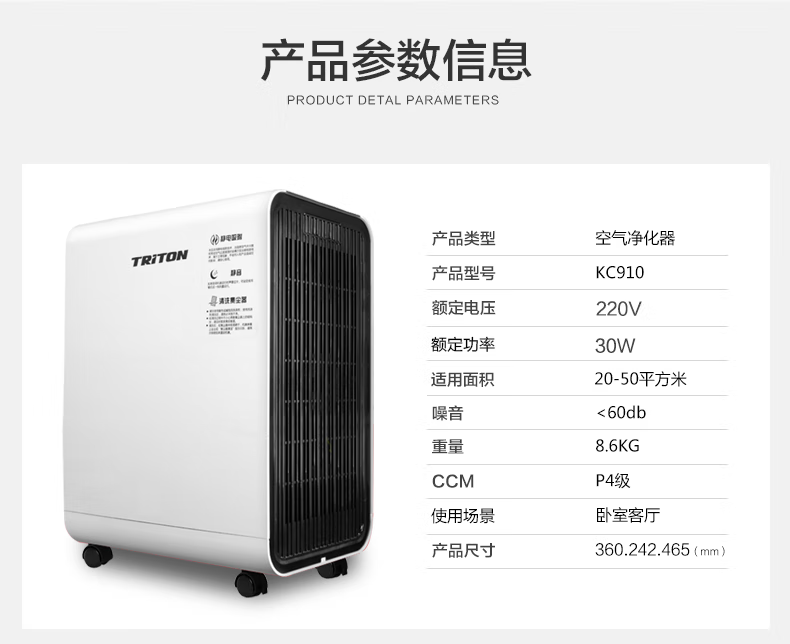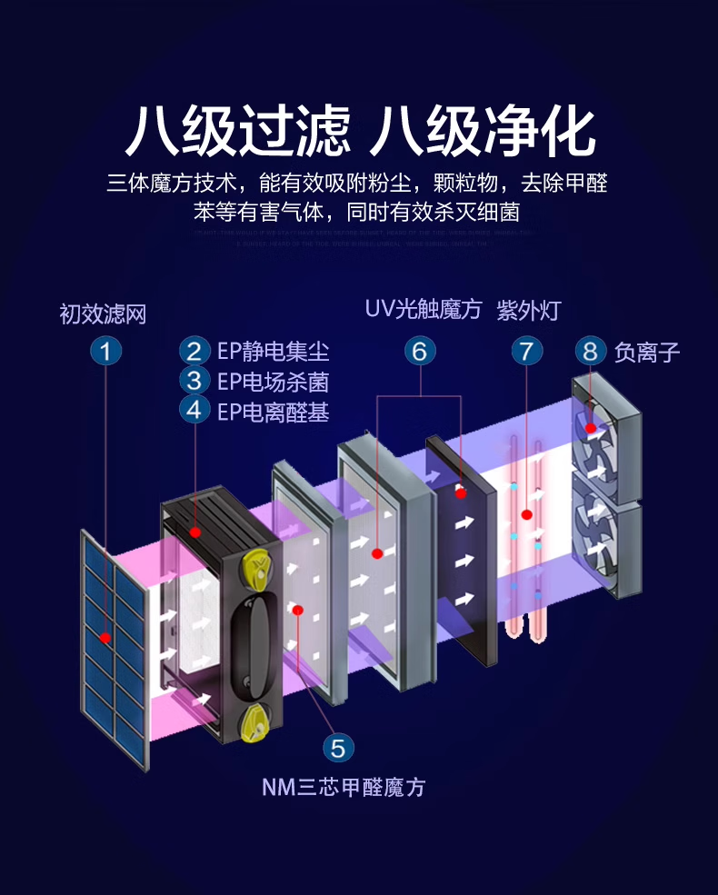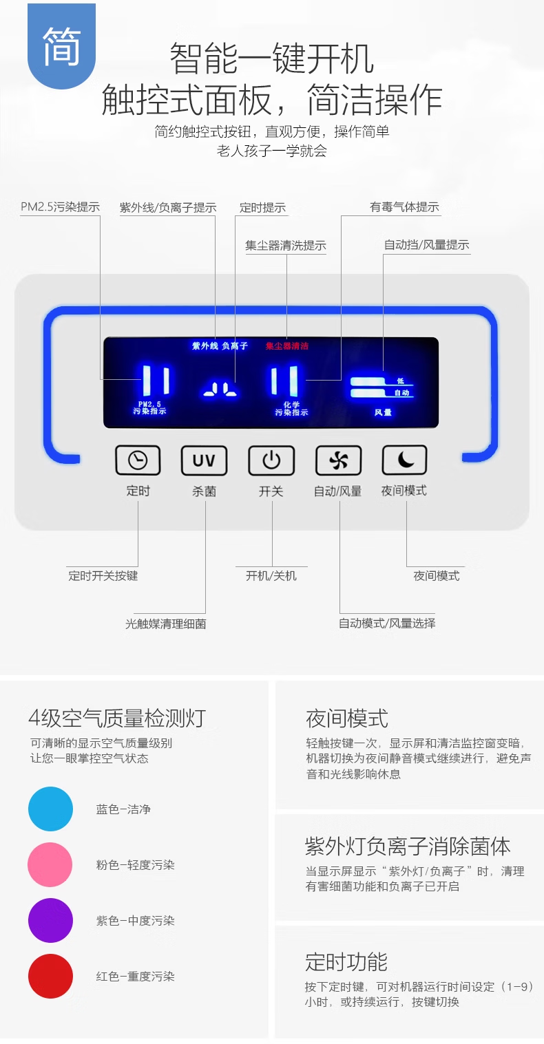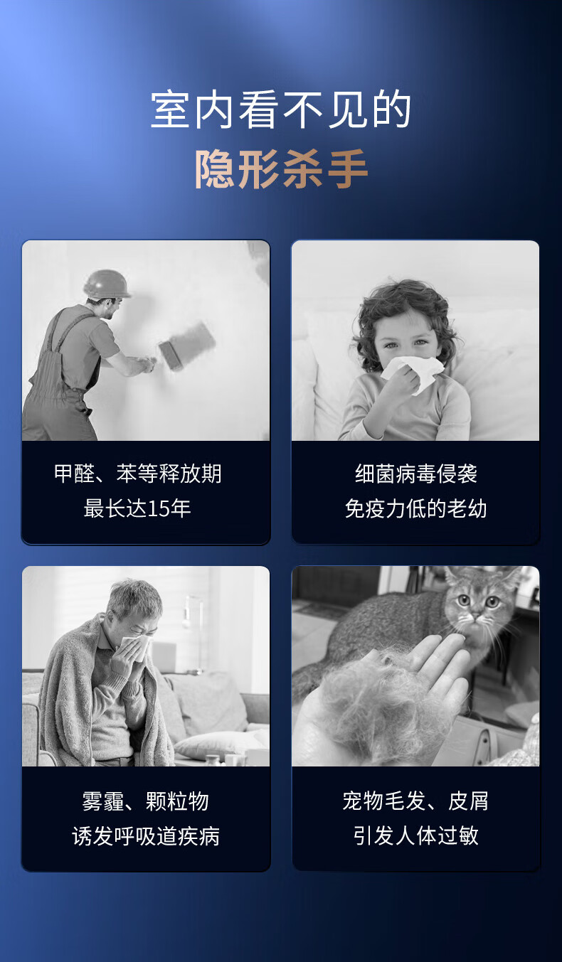川腾无耗材空气净化器家用除甲醛二手烟PM2.5室内卧室内异味紫外线杀菌智能负离子可水洗 旗舰款无耗材+滤网复合顶配款白色