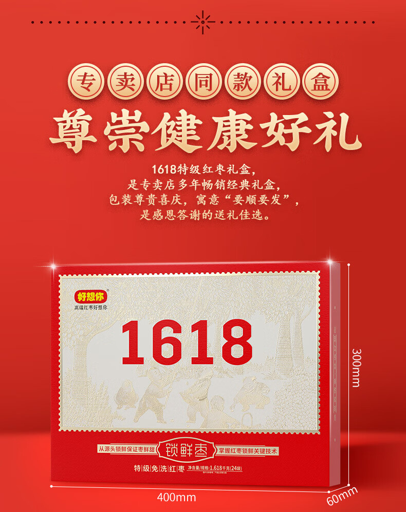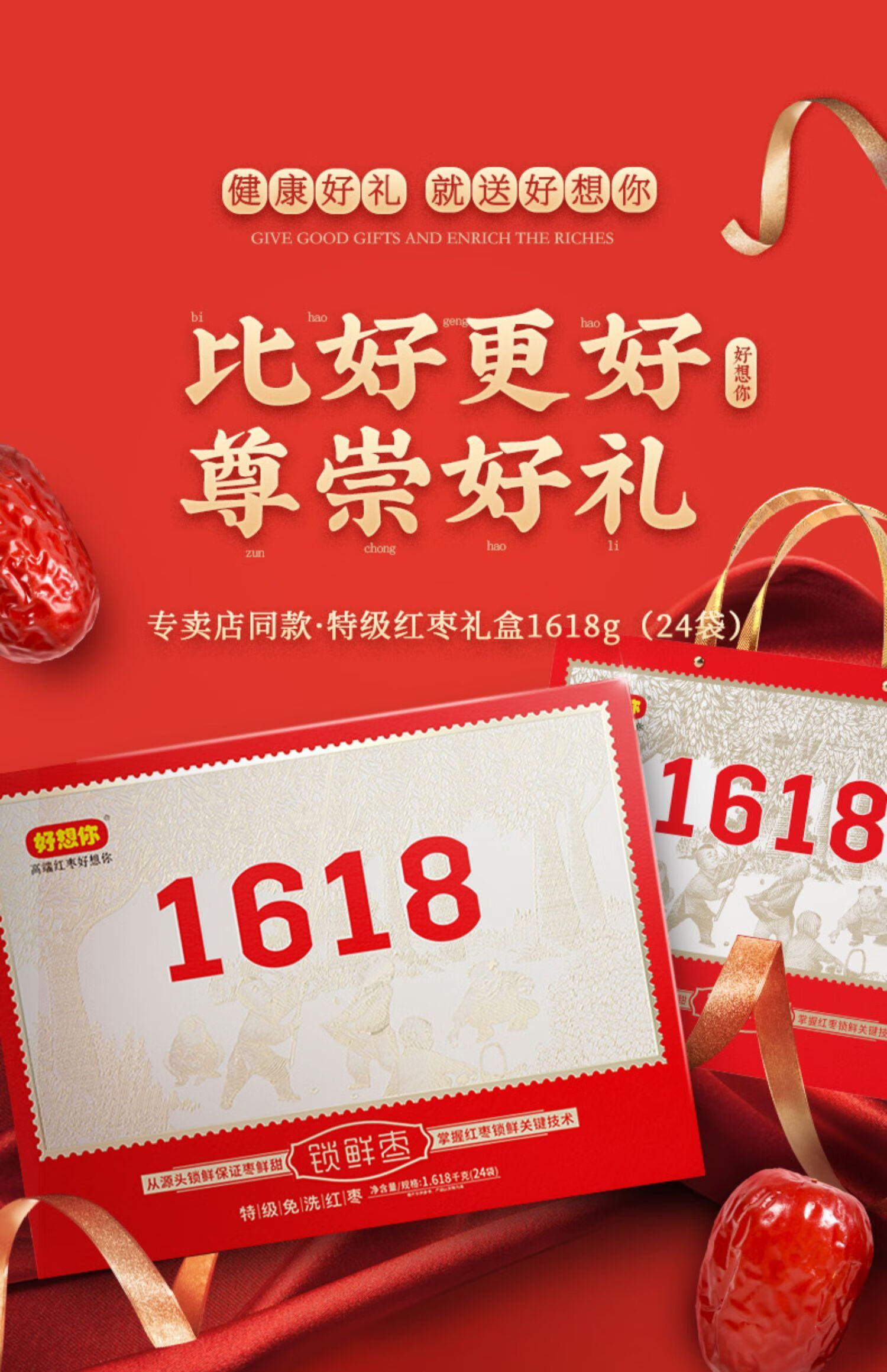 好想你新日期红枣礼盒装1618克特级健康情新疆精选大枣节日礼品 【国标特级】健康情礼盒1618克
