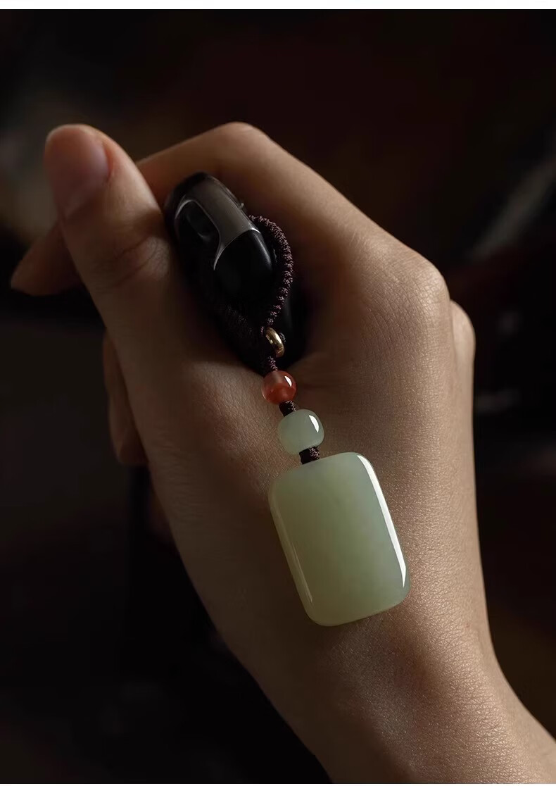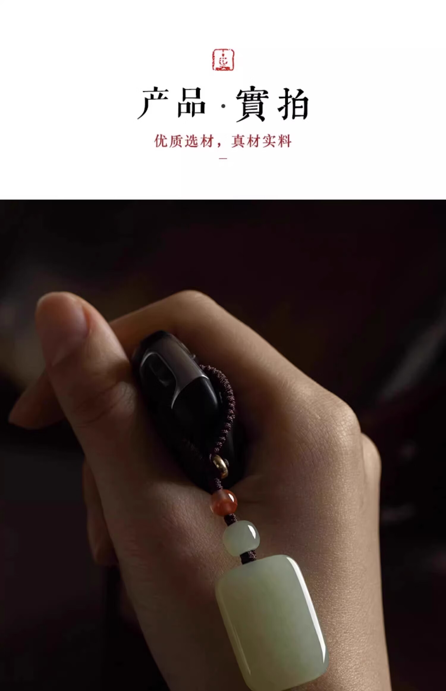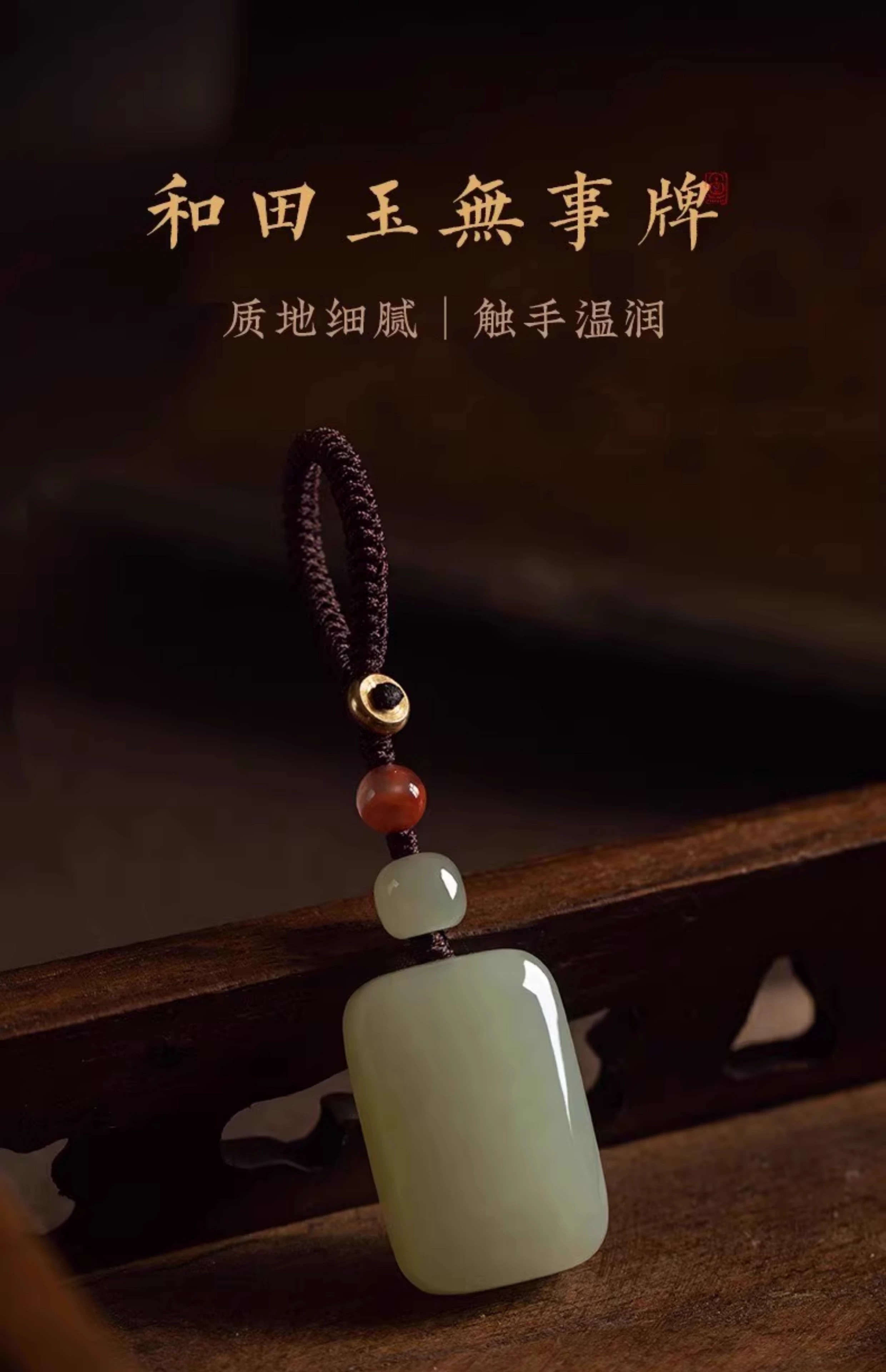 贵兴保真和田玉正品平安无事牌钥匙扣挂坠高档玉佩车钥匙钥匙挂件男女 无事牌挂坠【高端绳】