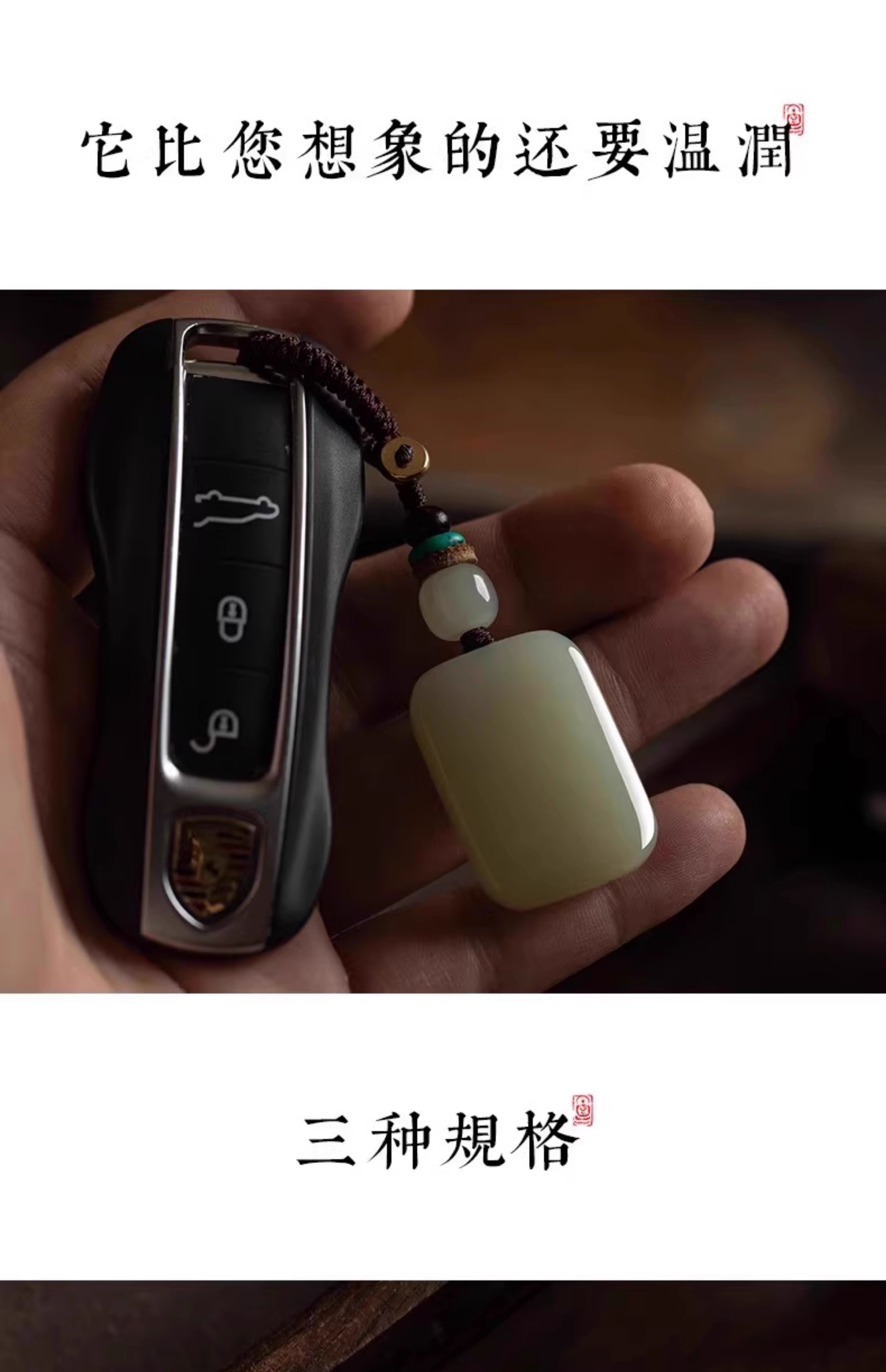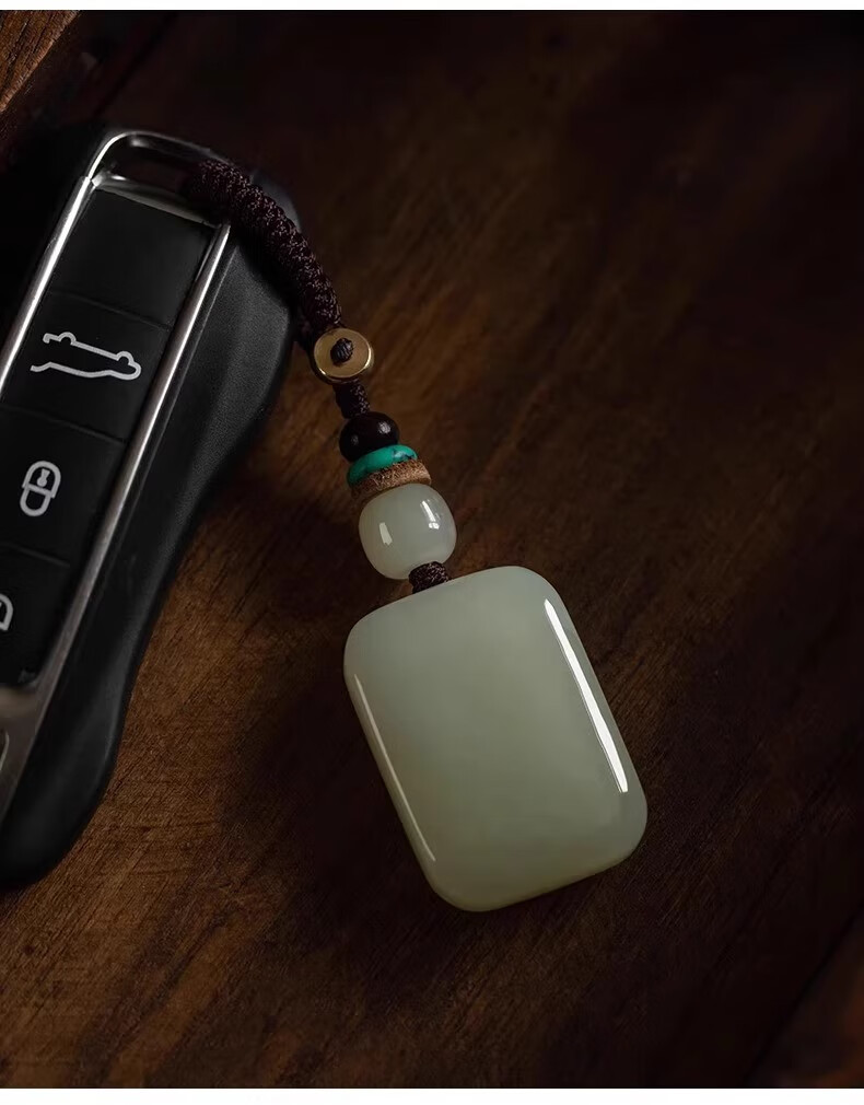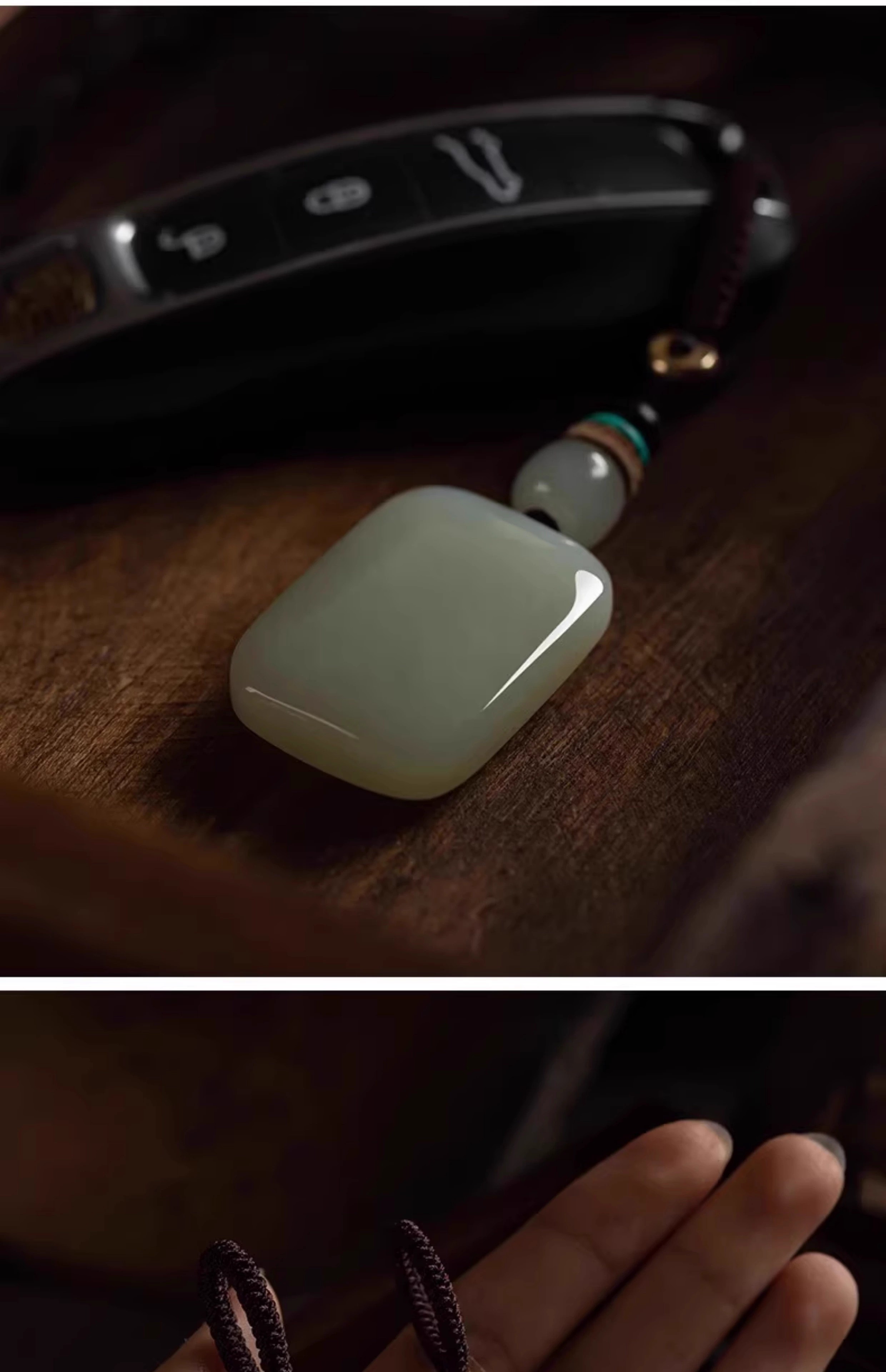 贵兴保真和田玉正品平安无事牌钥匙扣挂坠高档玉佩车钥匙钥匙挂件男女 无事牌挂坠【高端绳】