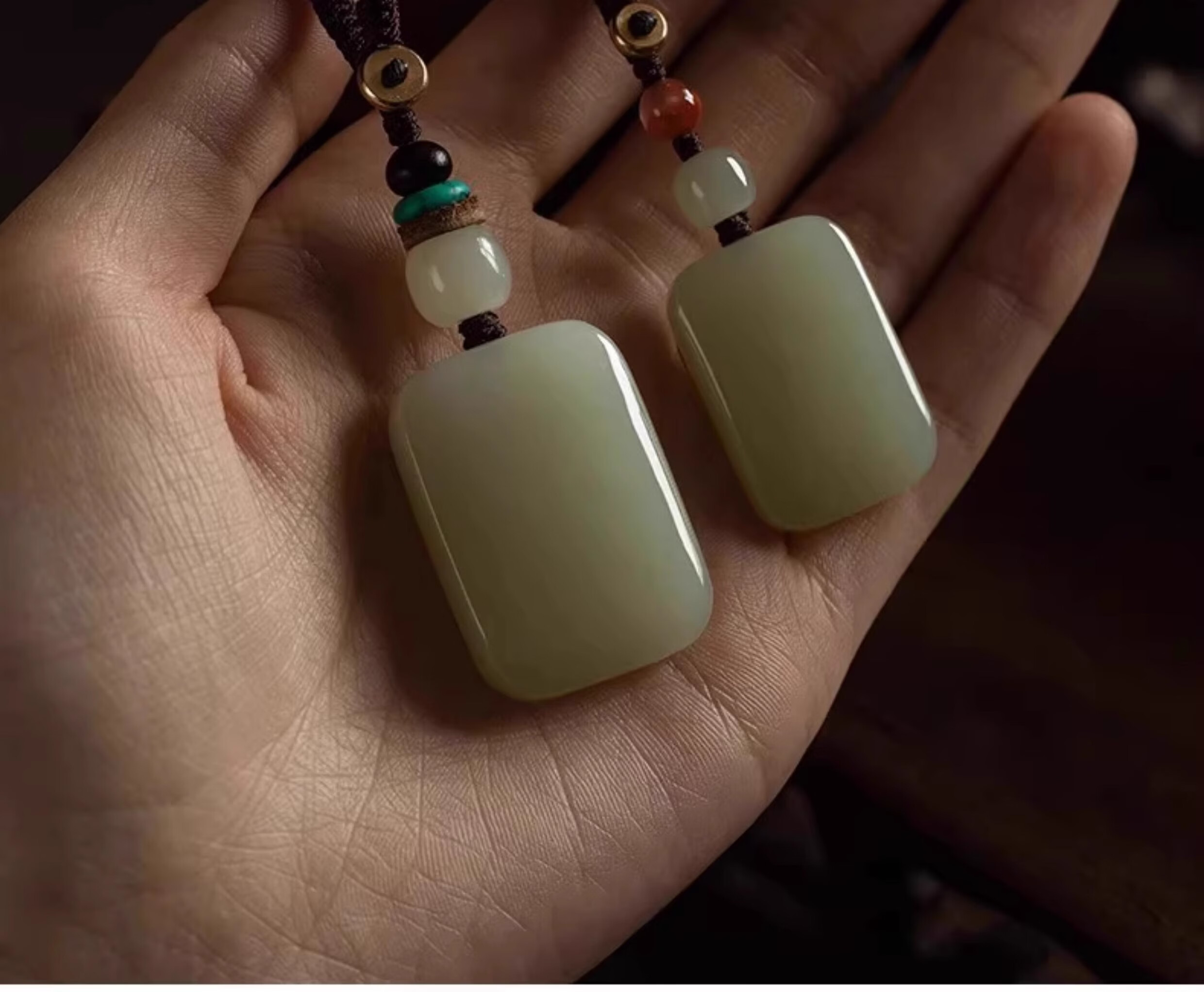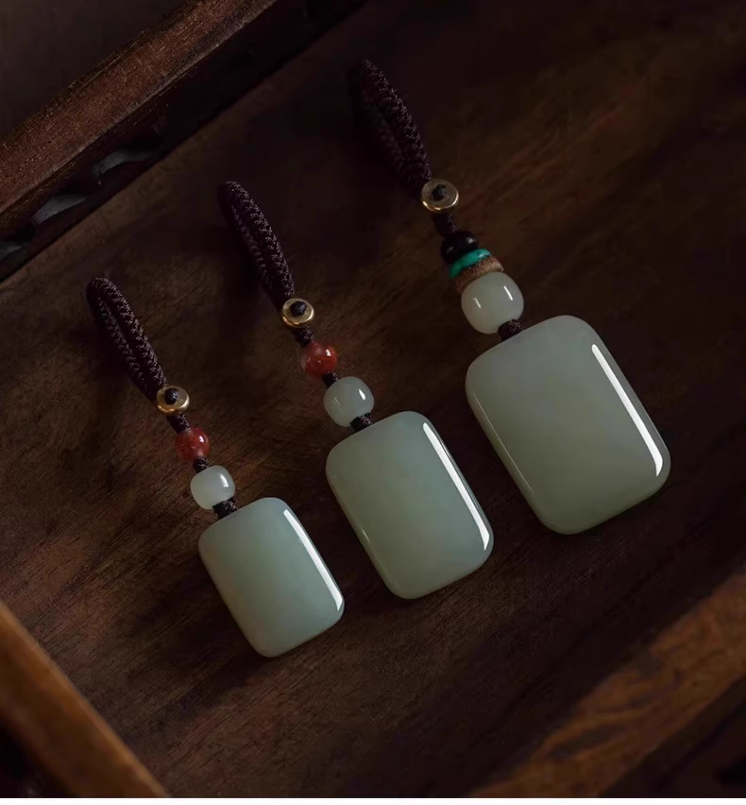 永杰原创和田玉平安牌男女吊坠湖水绿晴水料无事牌挂件玉牌带证书