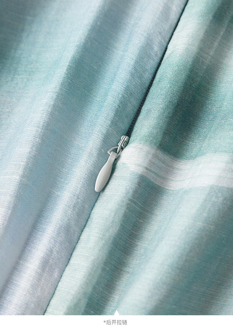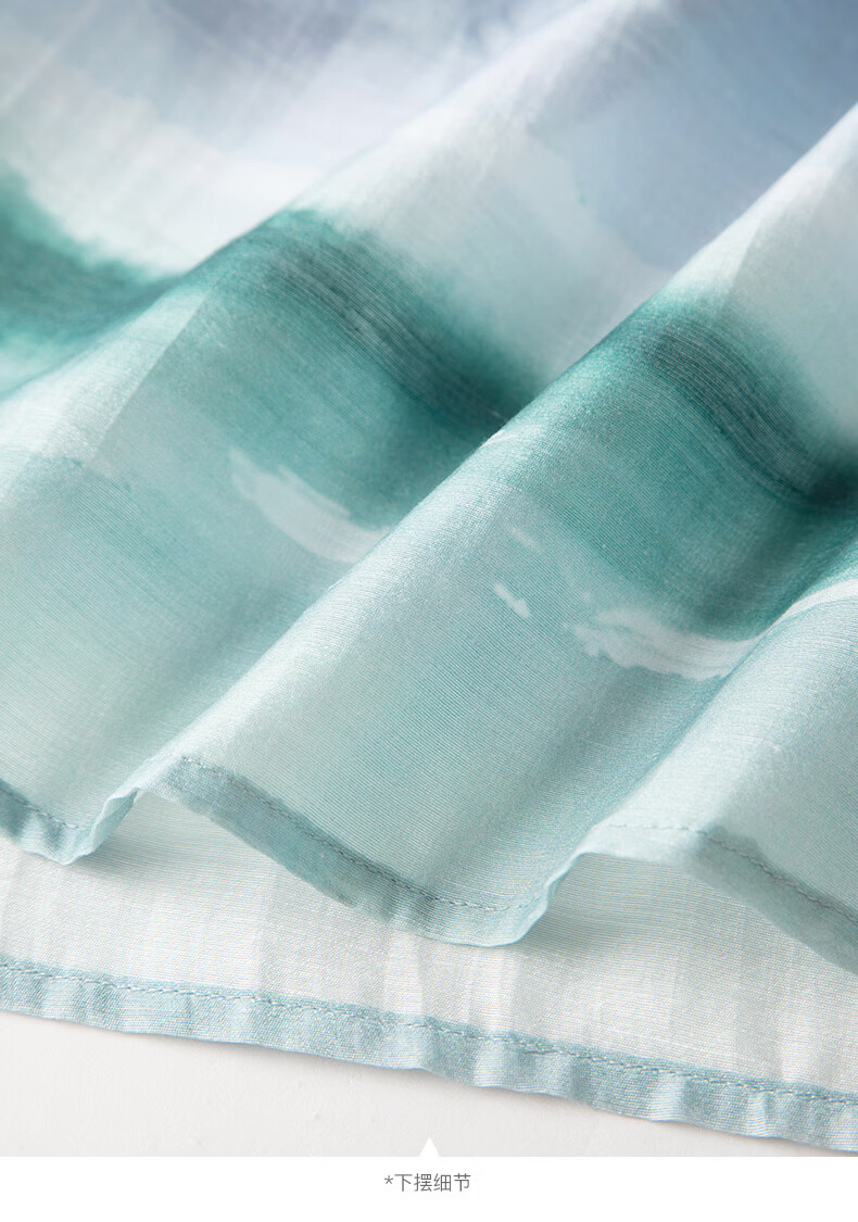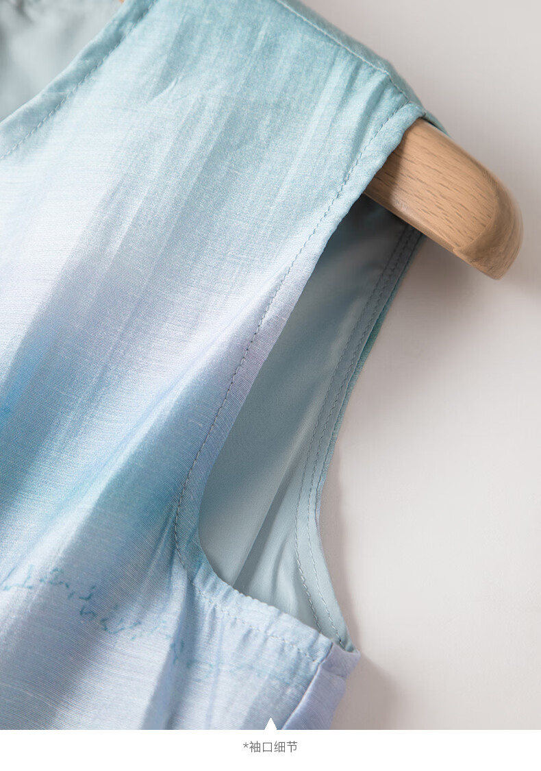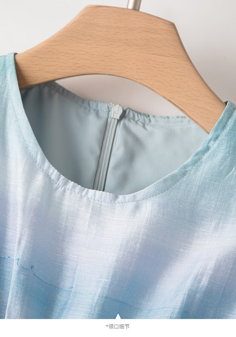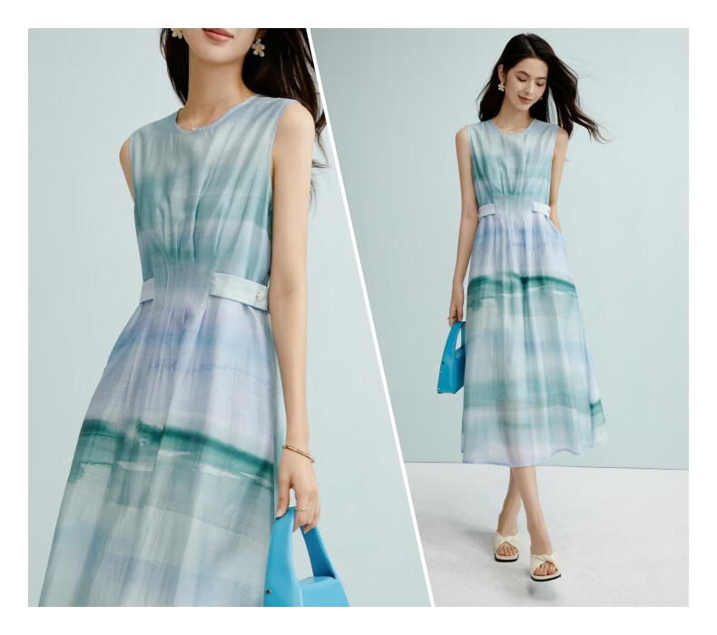 晚白2026年春夏款时尚晕染高腰长裙亲肤柔滑莱赛尔无袖连衣裙 蓝绿色 S