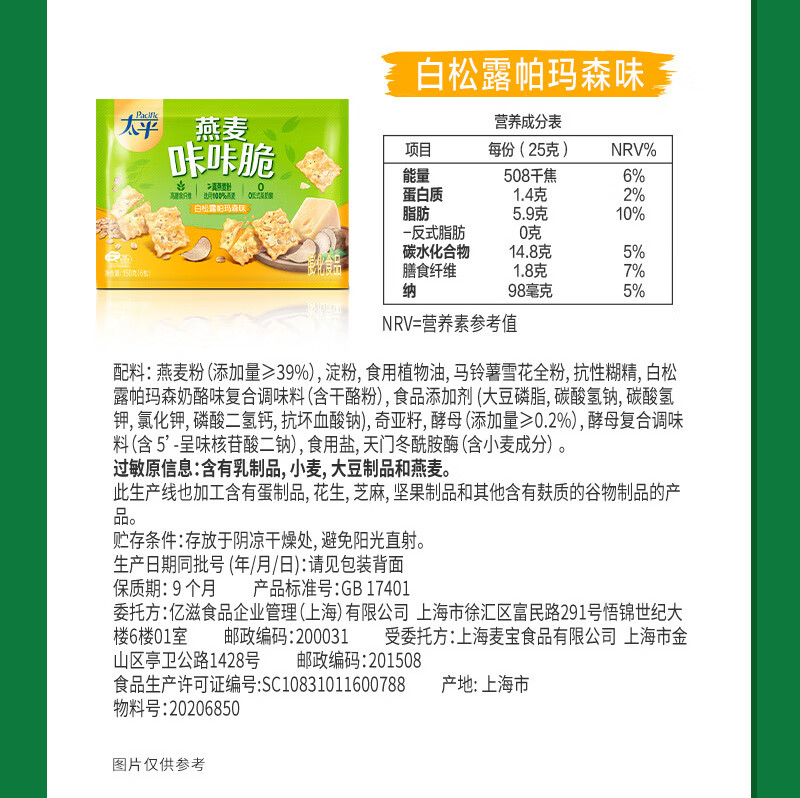 太平《新闻女王》同款燕麦咔咔脆白松露帕玛森味150g苏打饼干休闲零食