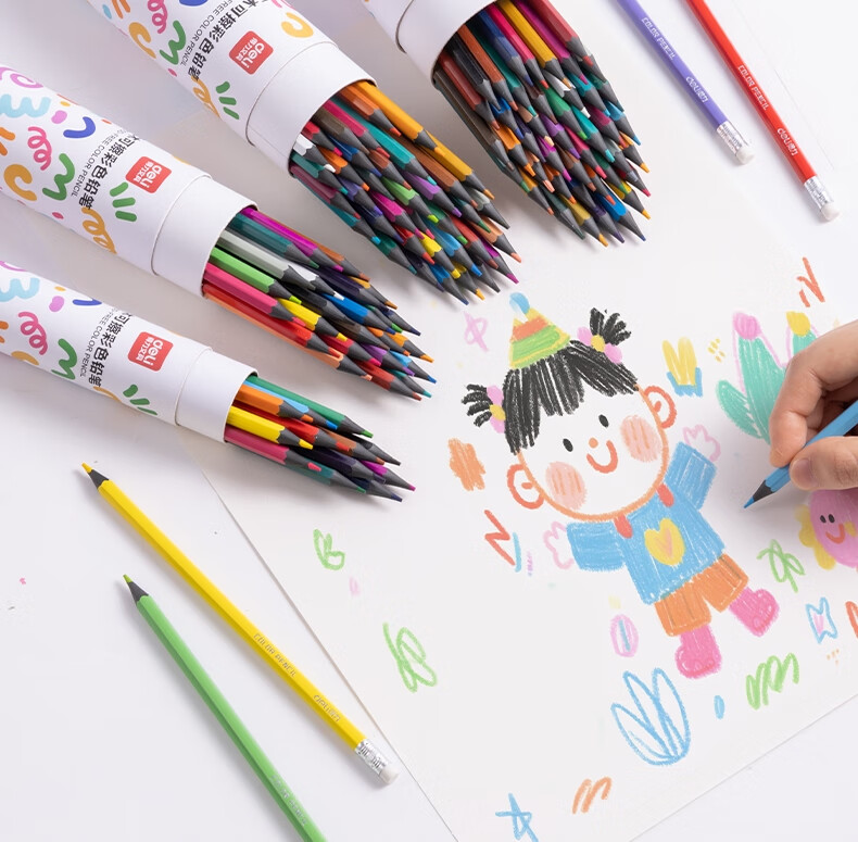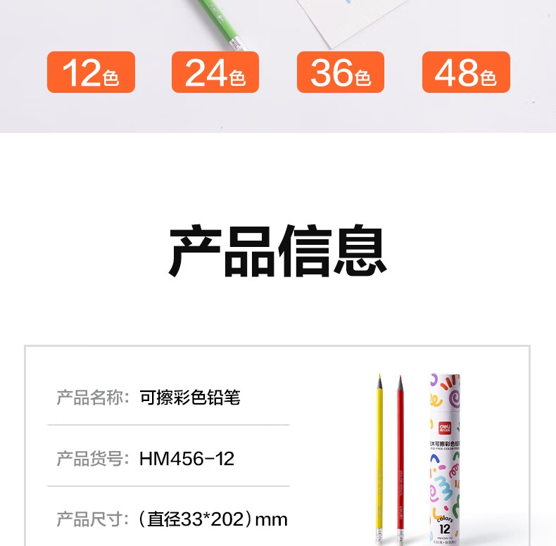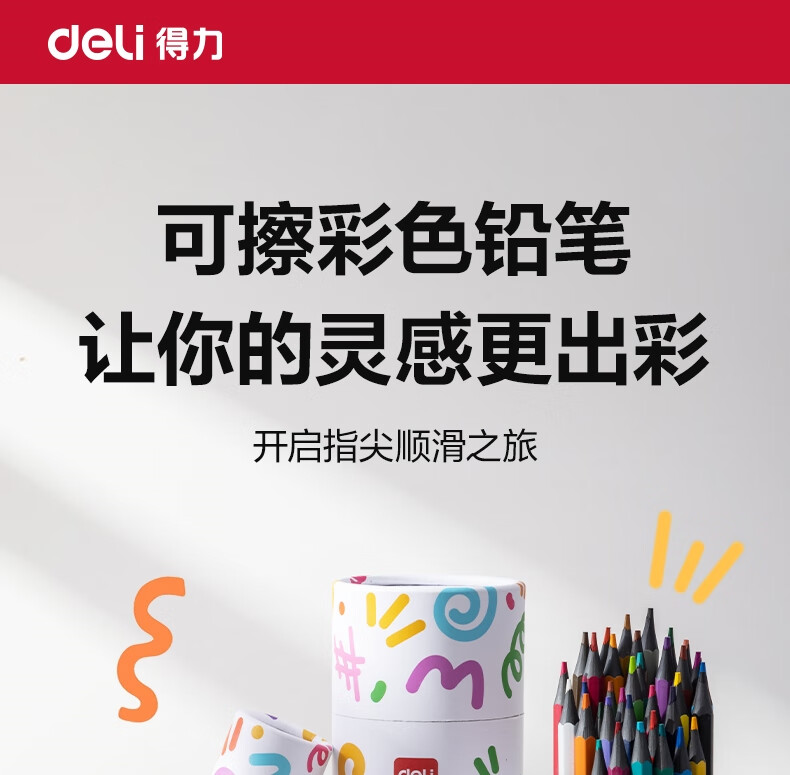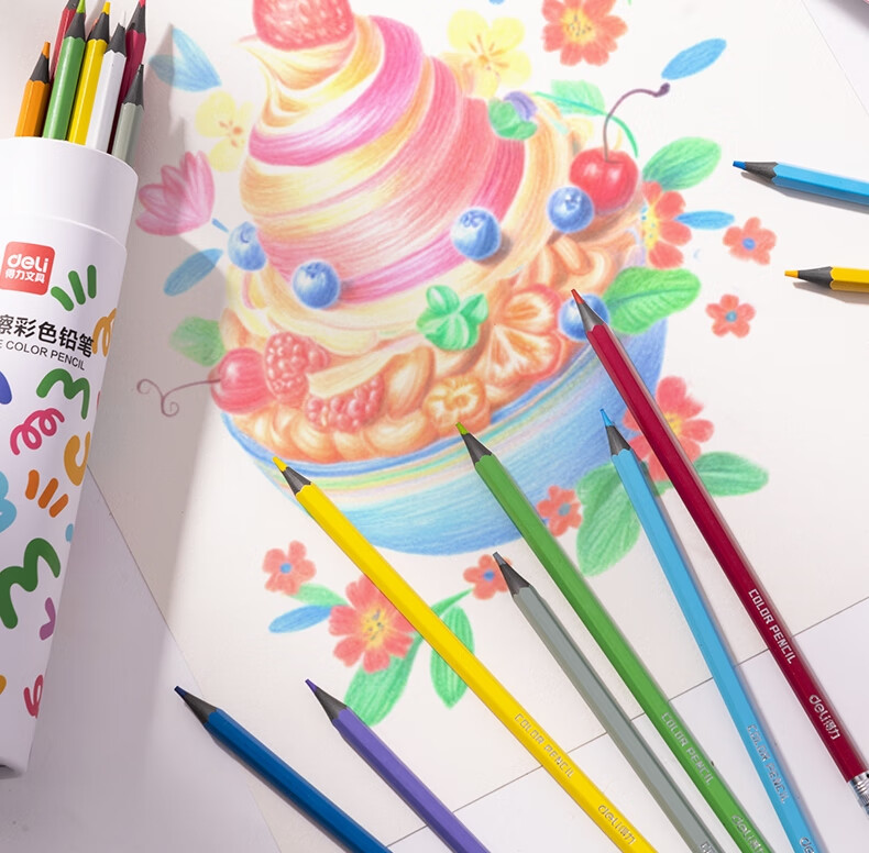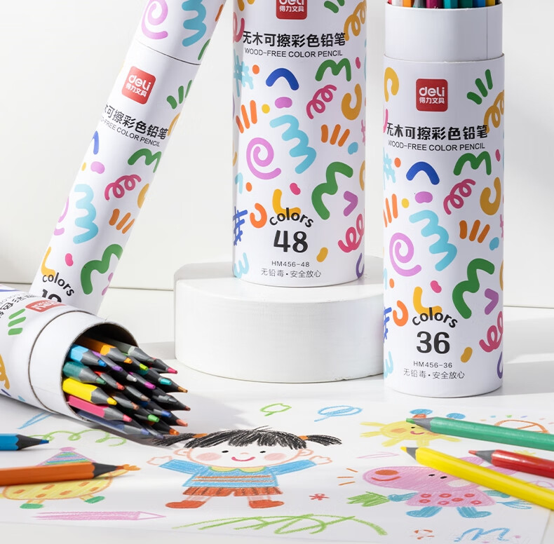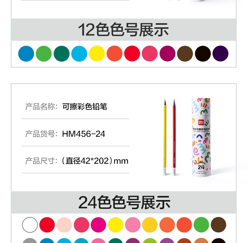 得力(deli)24色六角杆皮头可擦彩铅作业涂色美术绘画儿童涂鸦手绘易洗可擦女孩儿童礼物HM456-24