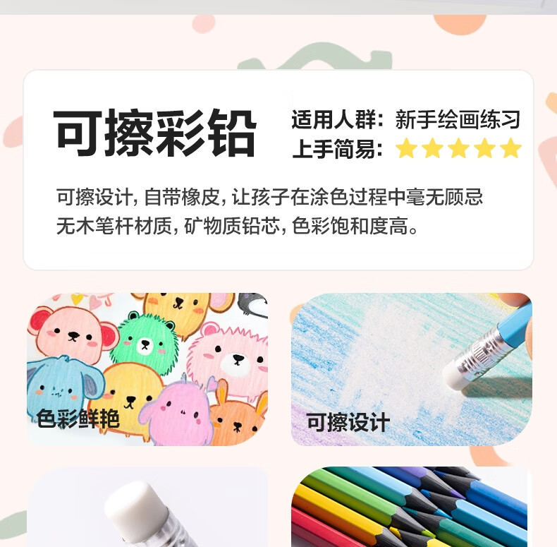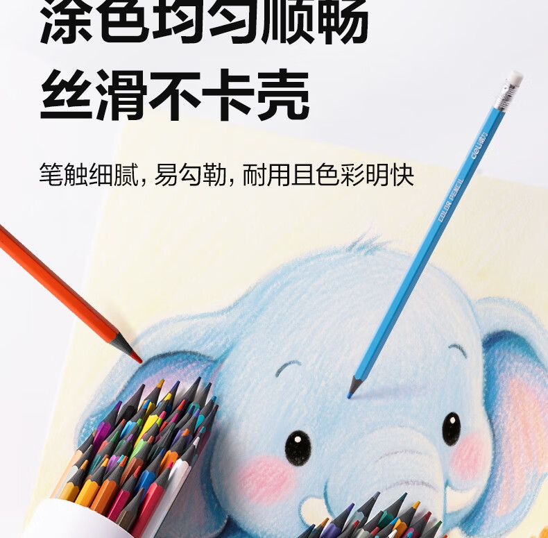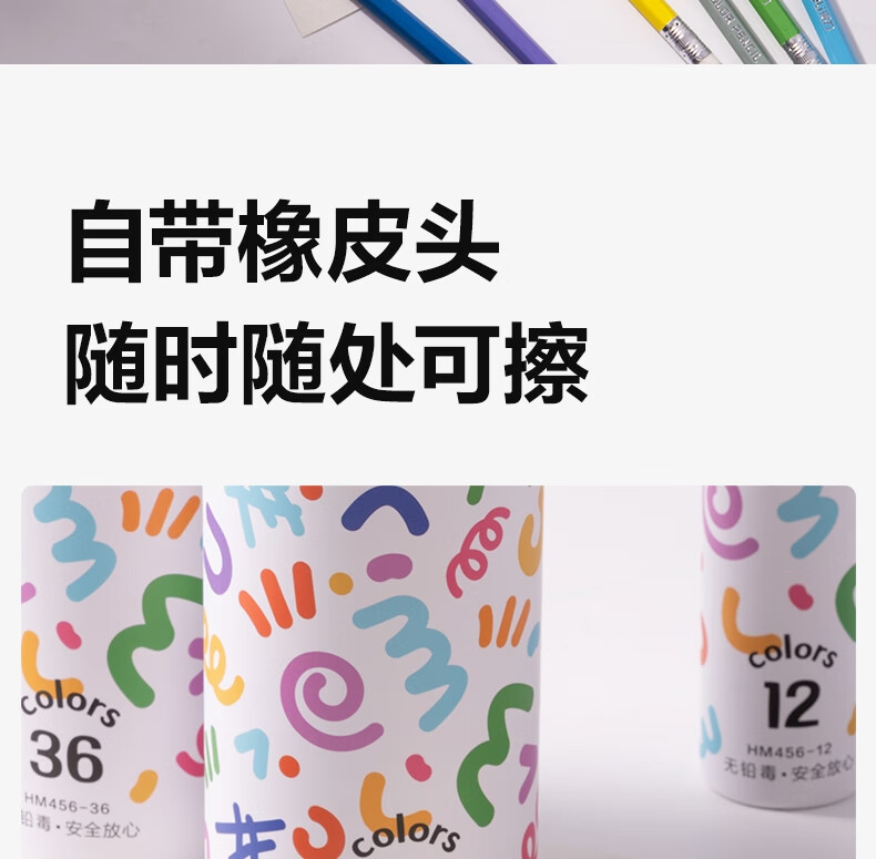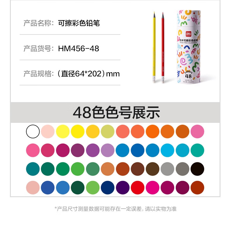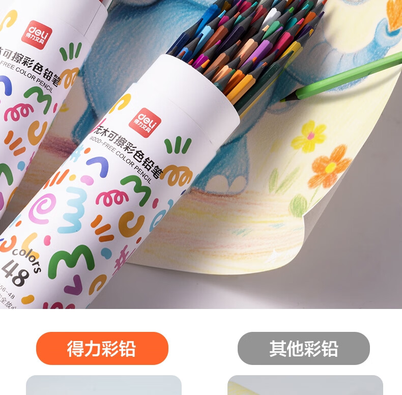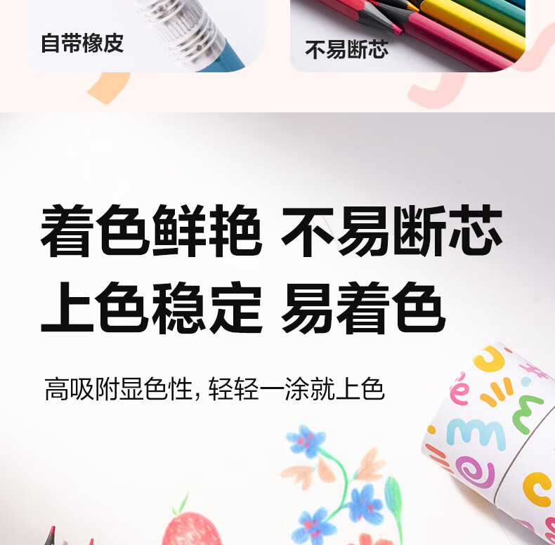 得力(deli)24色六角杆皮头可擦彩铅作业涂色美术绘画儿童涂鸦手绘易洗可擦女孩儿童礼物HM456-24