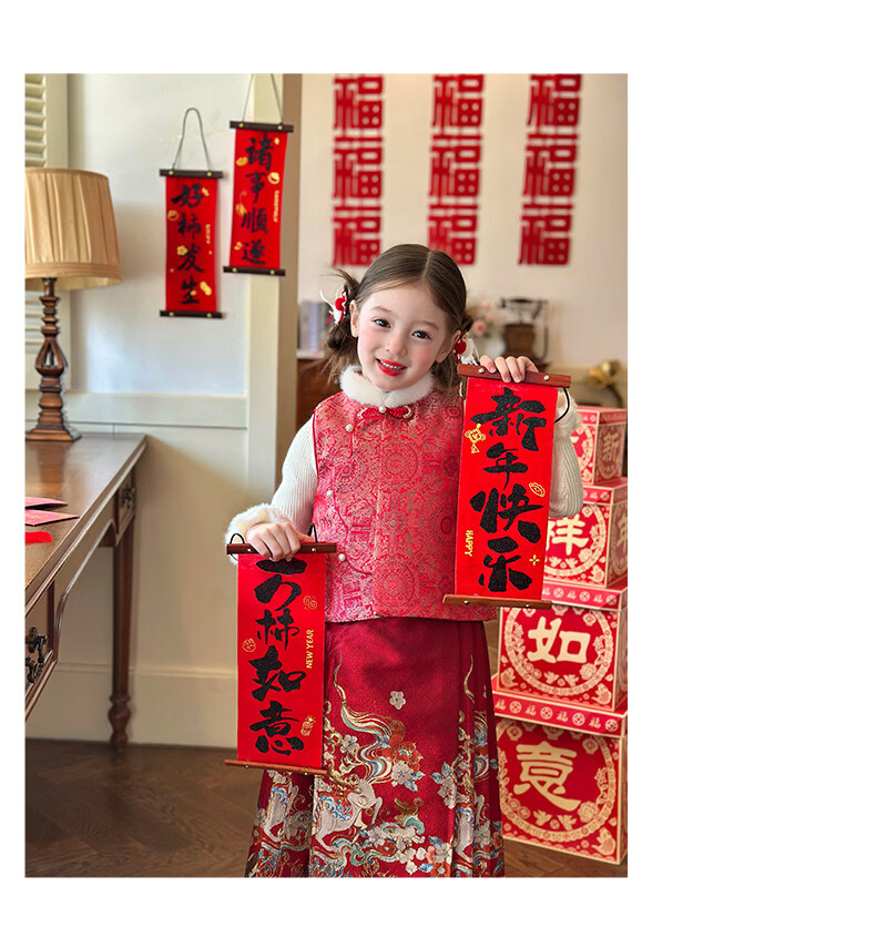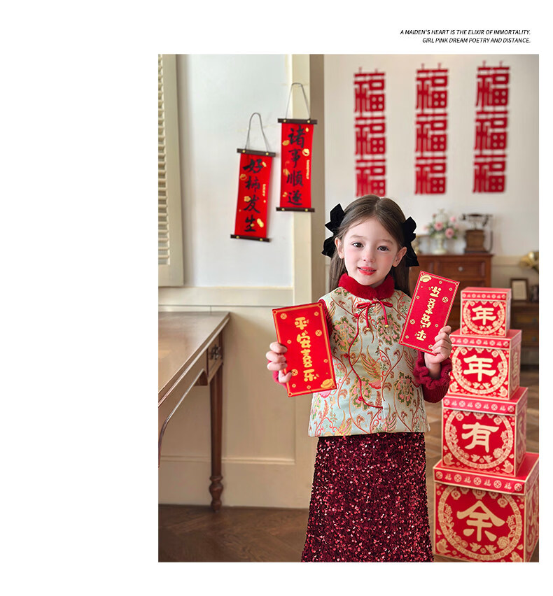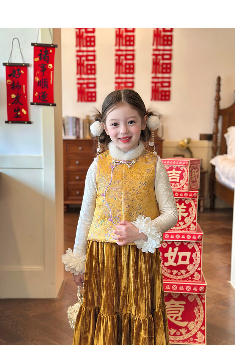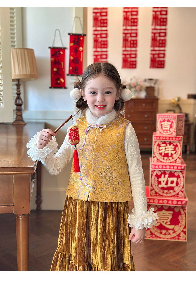 媛媛公主【国风拜年服】儿童夹棉背心冬季新款中大童喜庆保暖女童新年马甲 红色 110