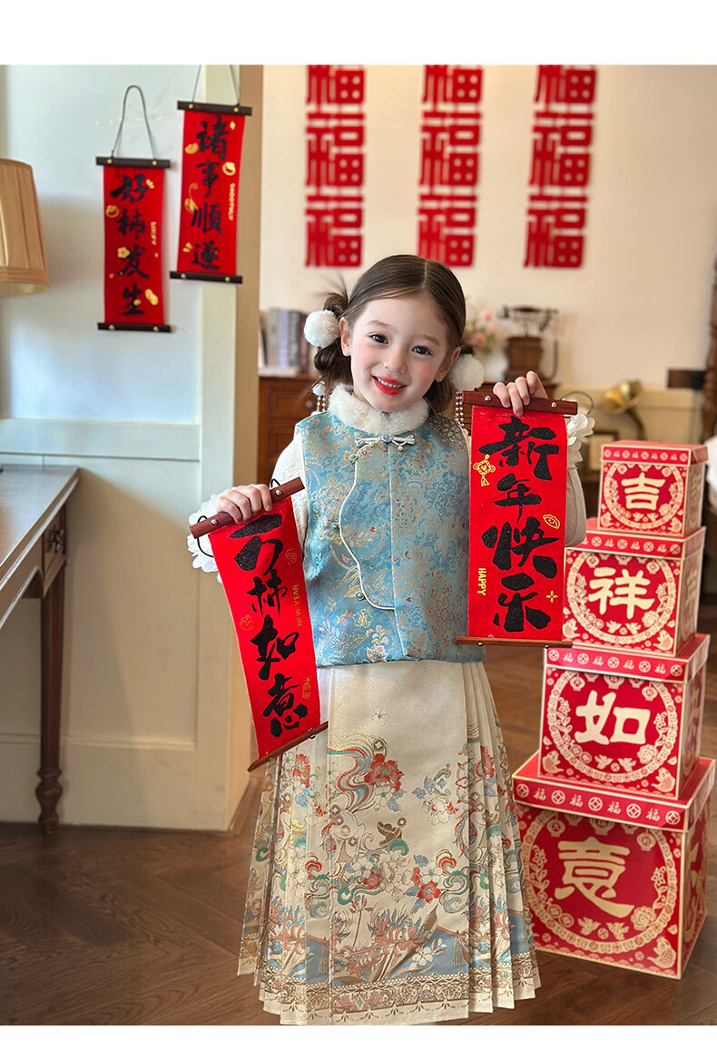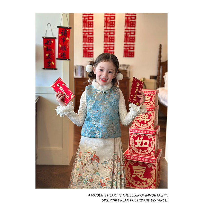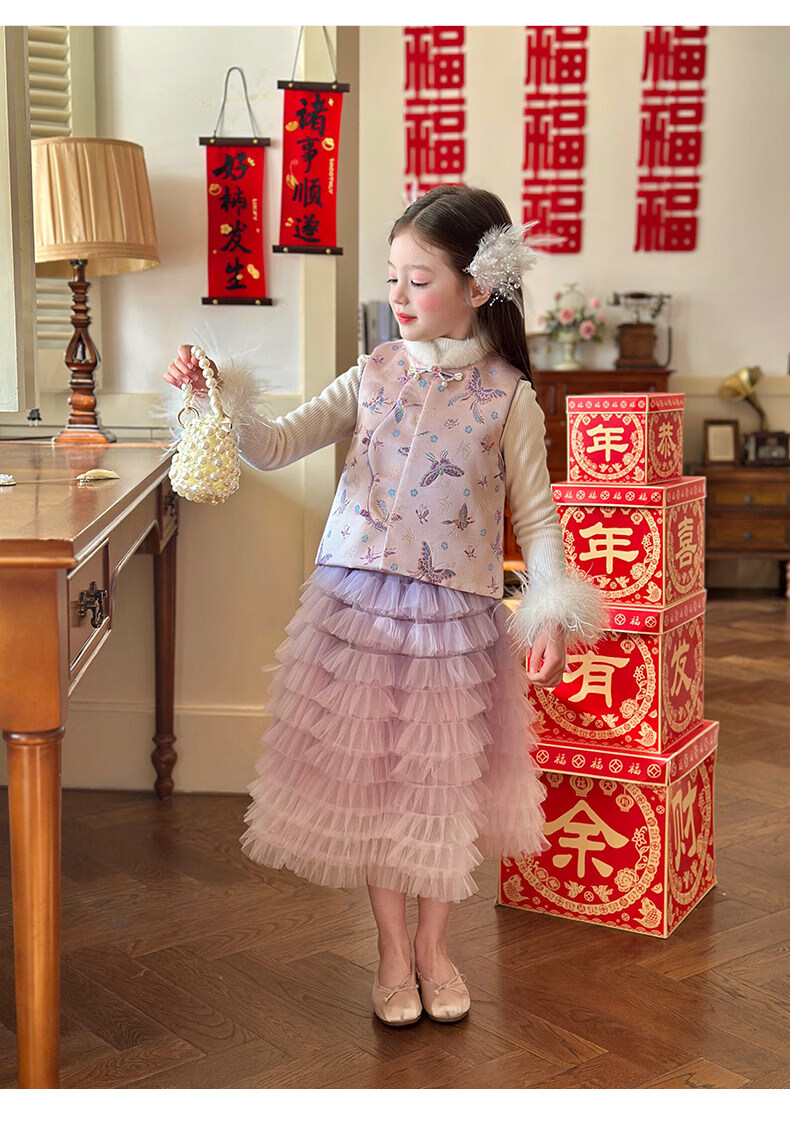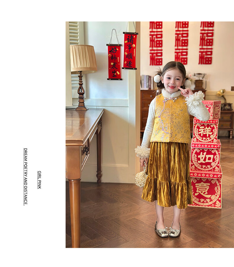 媛媛公主【国风拜年服】儿童夹棉背心冬季新款中大童喜庆保暖女童新年马甲 红色 110