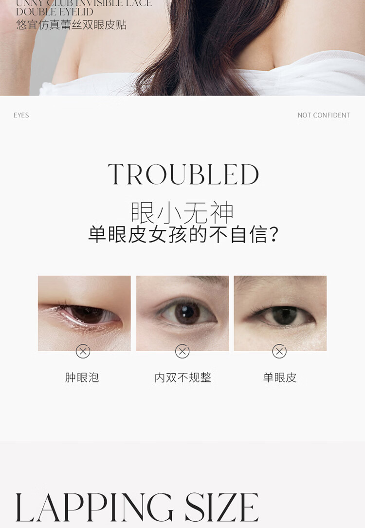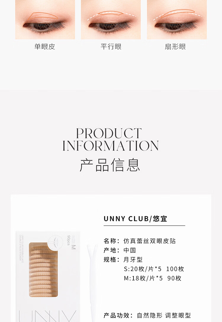 屈臣氏UNNY CLUB仿真蕾丝双眼皮贴 M S 20pc*5 S 100枚
