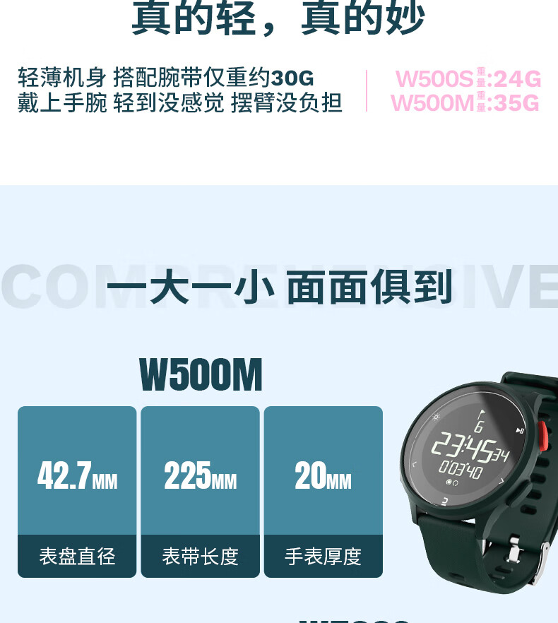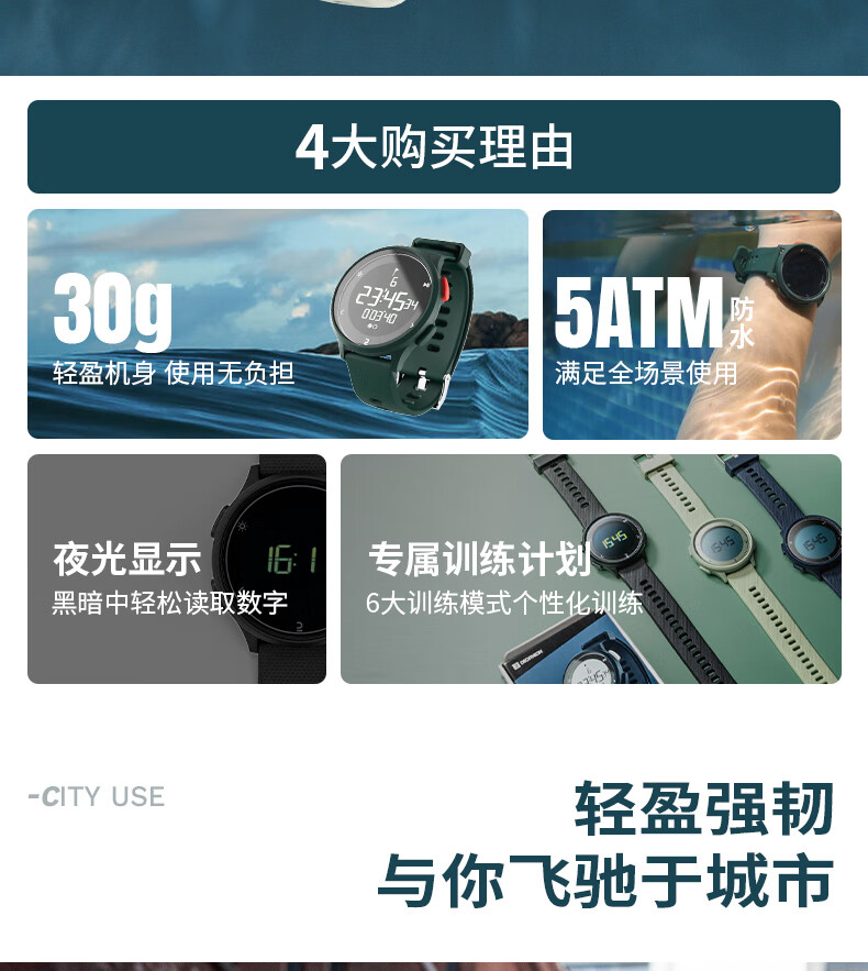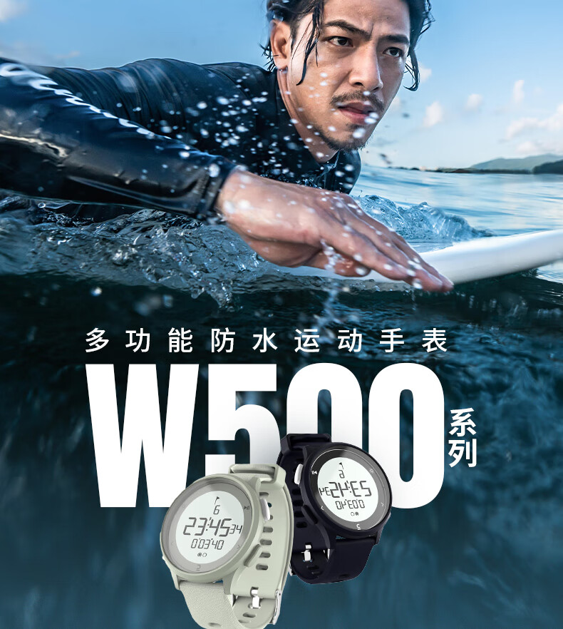 迪卡侬手表电子表W500学生跑步马拉松训练多功能不防热水-4124777