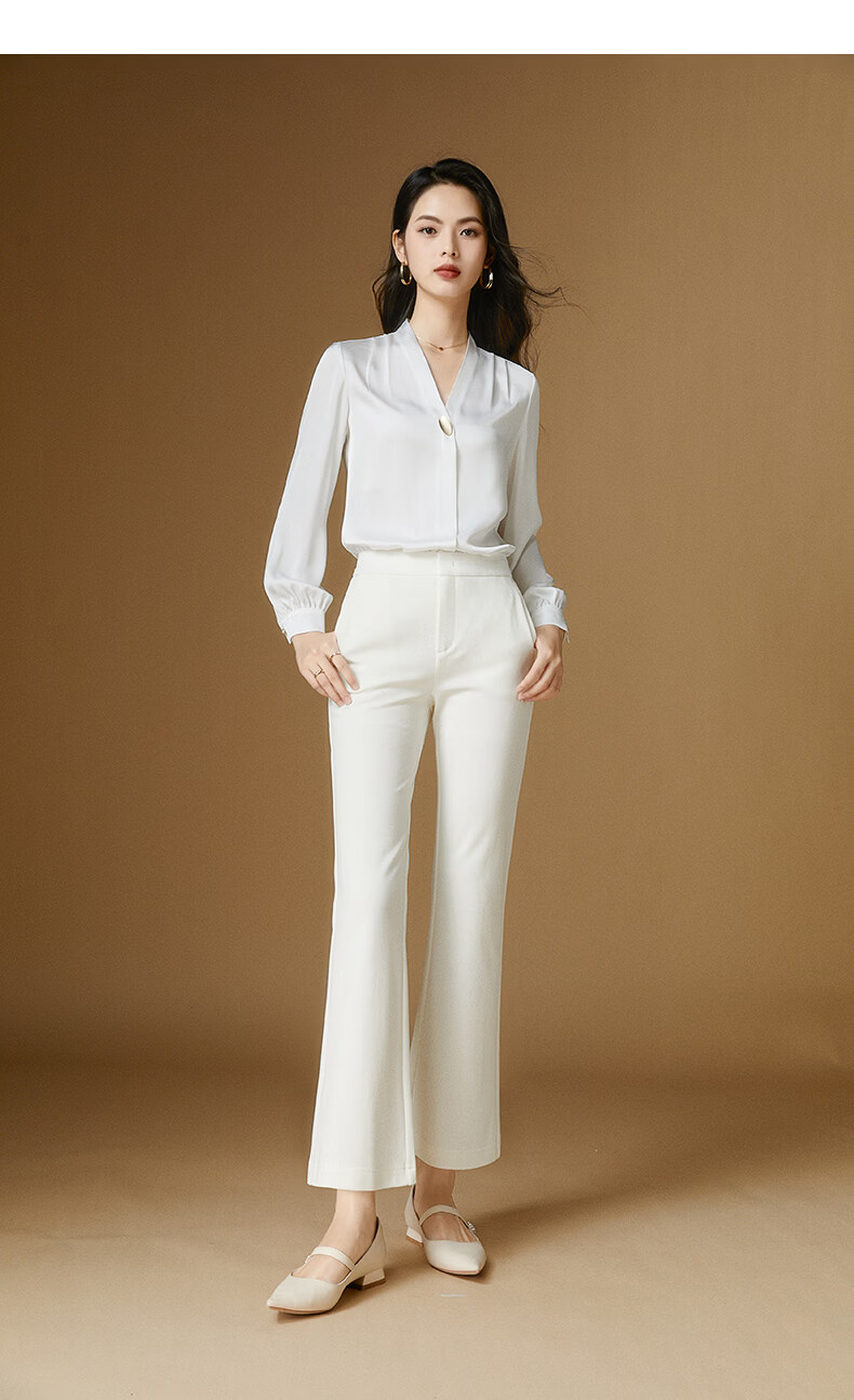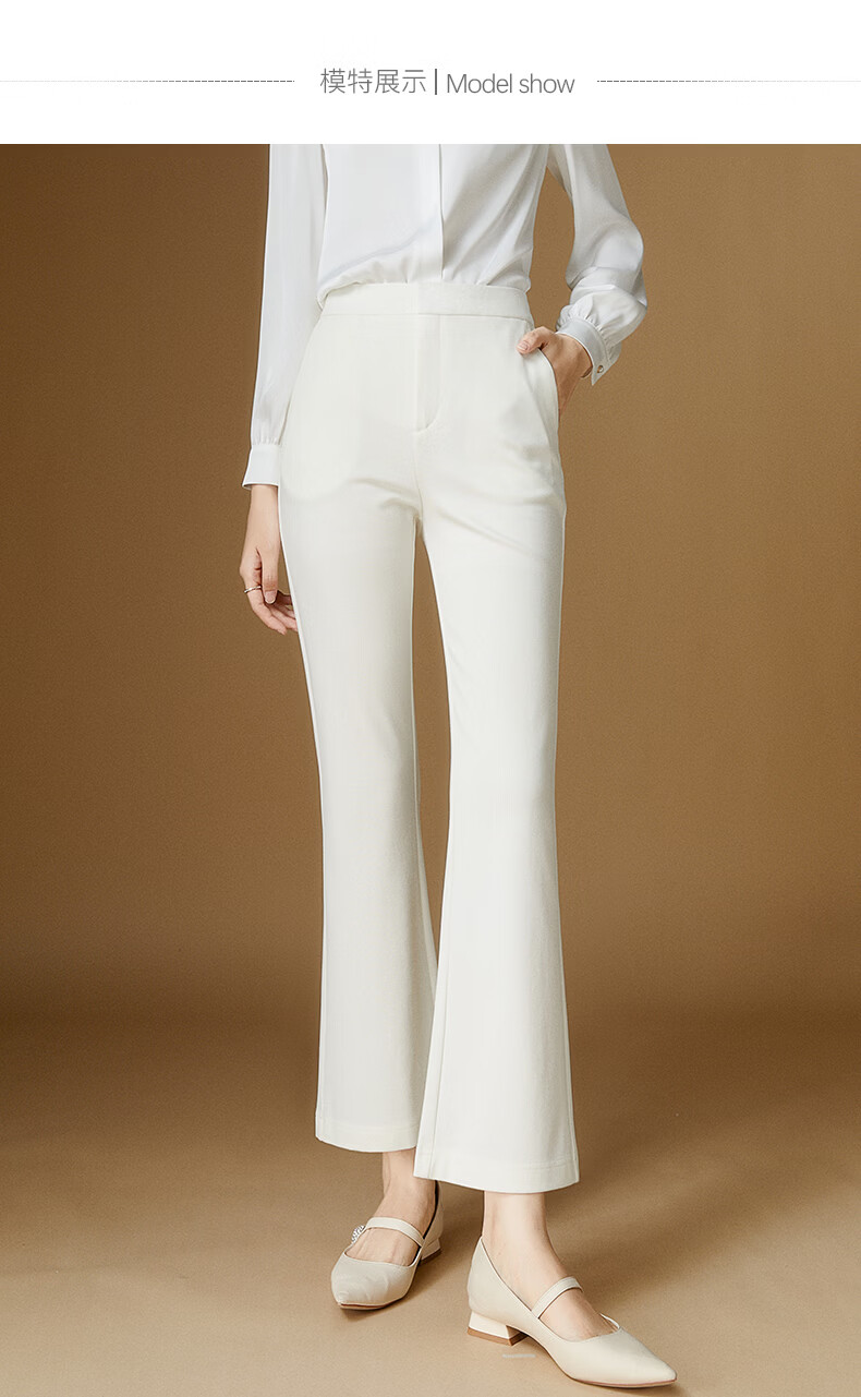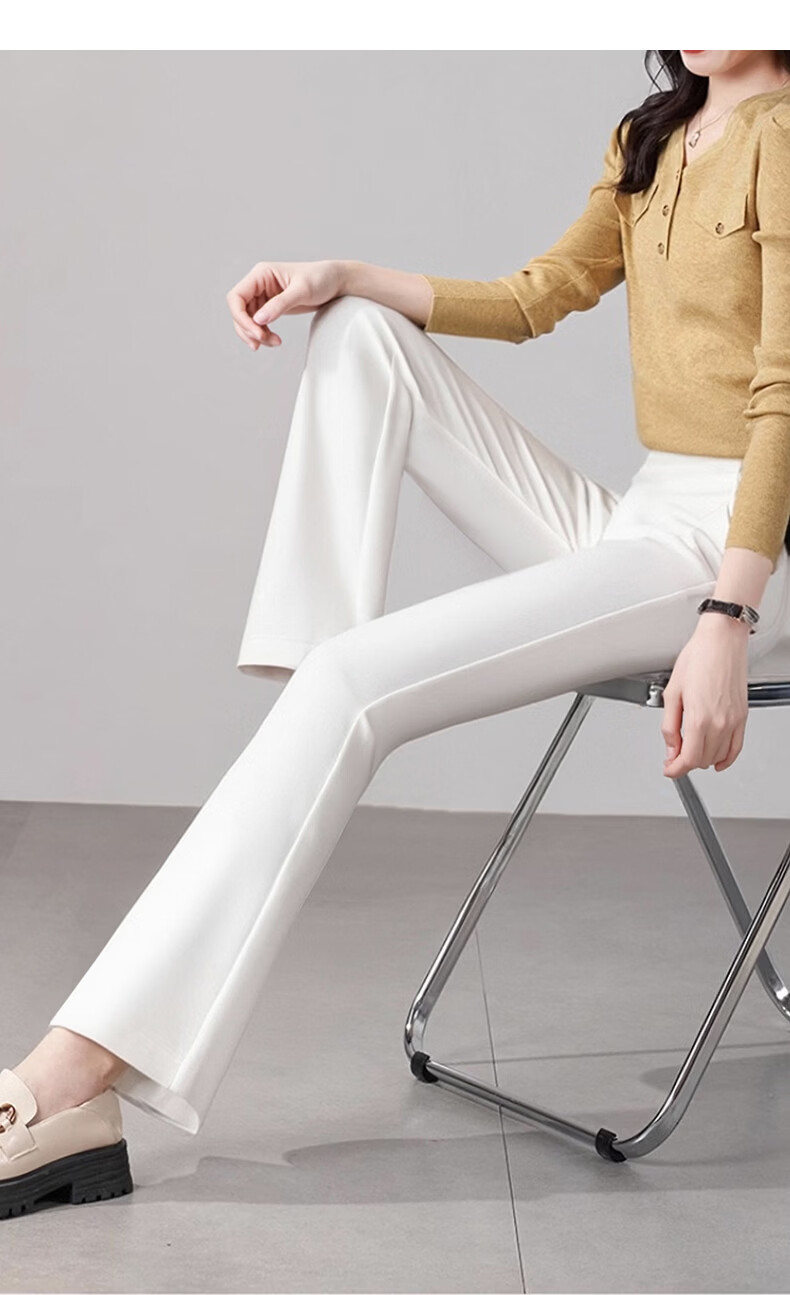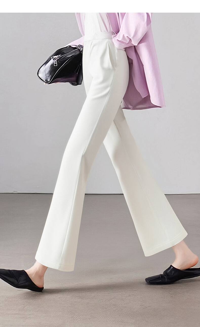 晚白【断码清仓】2026年春季款修身裤子通勤纯色微喇裤OL休闲裤女 白色 27