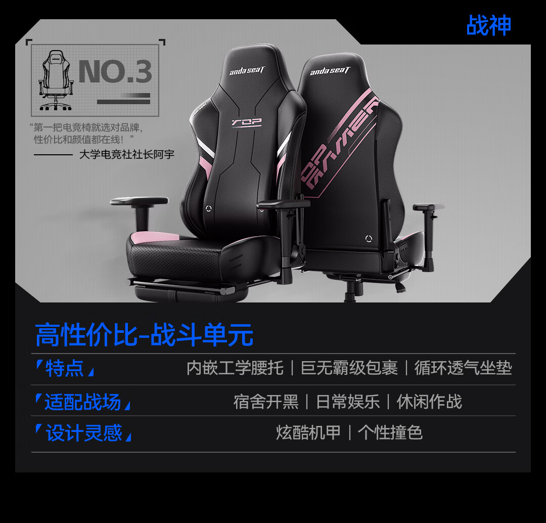 andaseaT安德斯特电竞椅电脑椅游戏椅 人体工学办公椅 战神Pro 玄红脚托