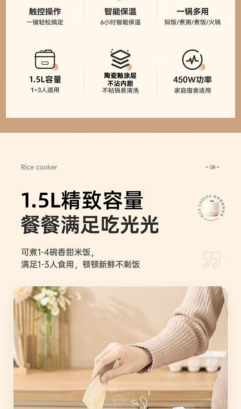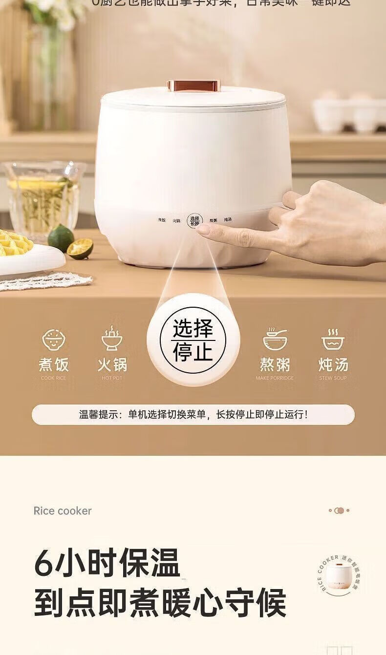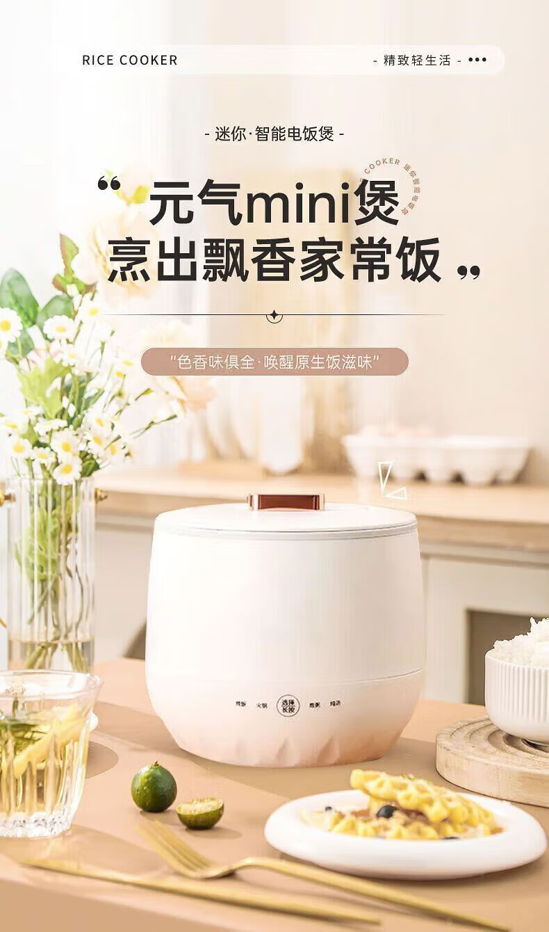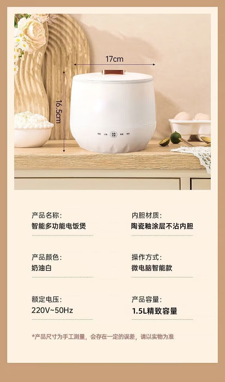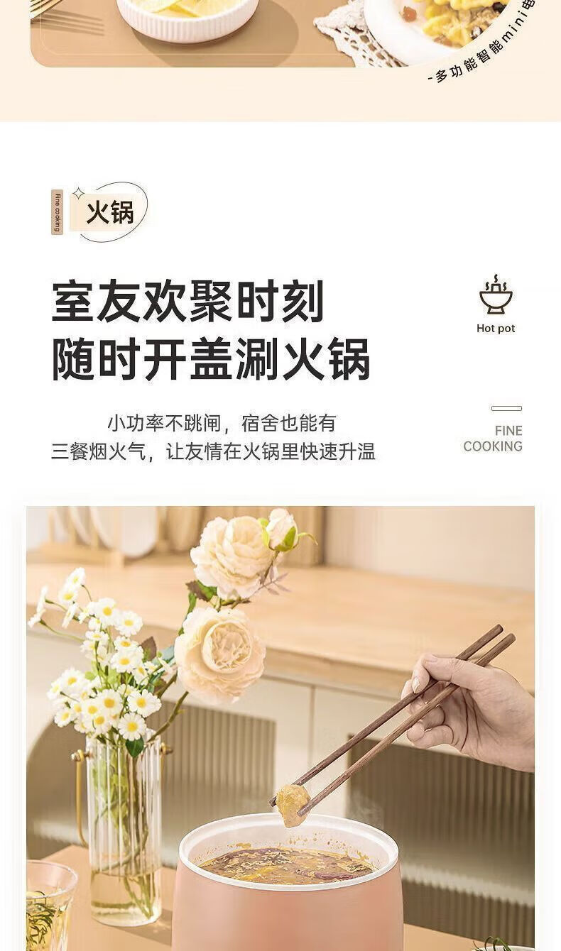 智能电煮锅电锅小电锅电炒锅电热锅多功能一锅多用宿舍电煮锅电炖锅火锅1-2人蒸煮一体电蒸锅火锅锅学生锅 1.5L白色陶瓷釉涂层内胆【送量杯+自动断电】