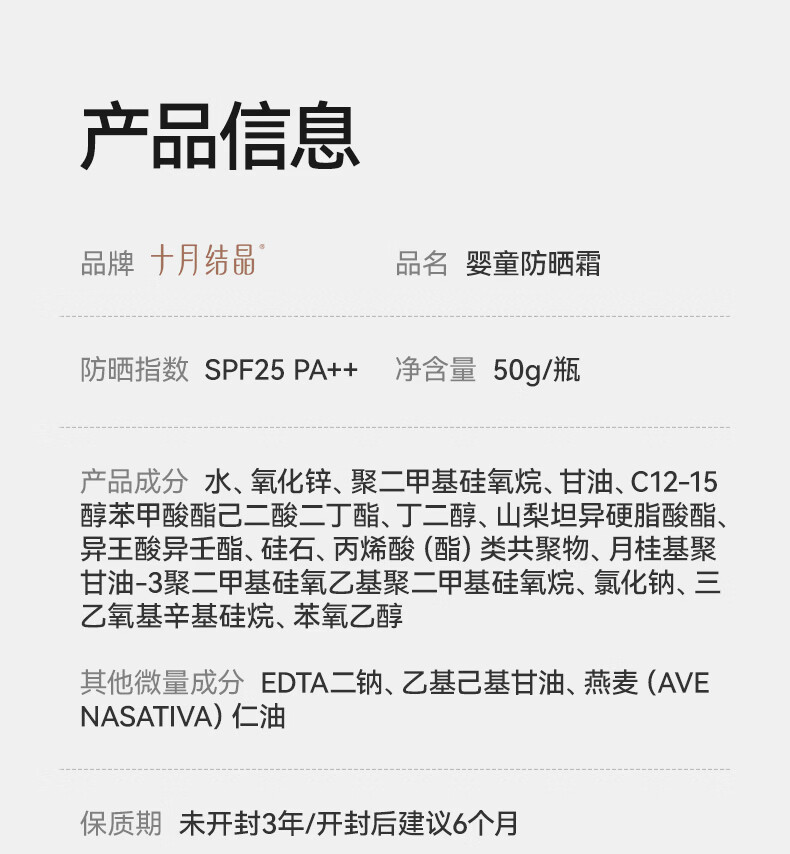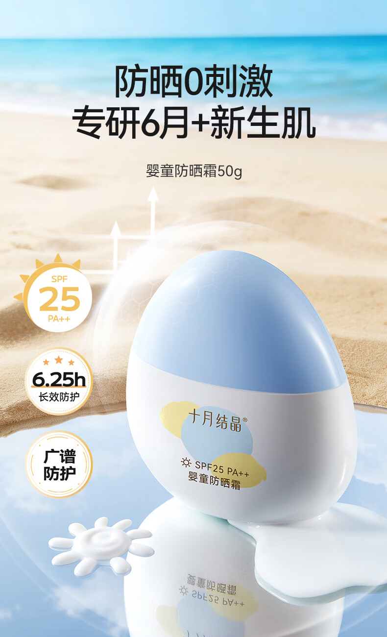 十月结晶儿童防晒霜隔离紫外线婴儿小宝宝专用夏季温和物理防晒乳 50g 1瓶 【6个月+宝宝专研】