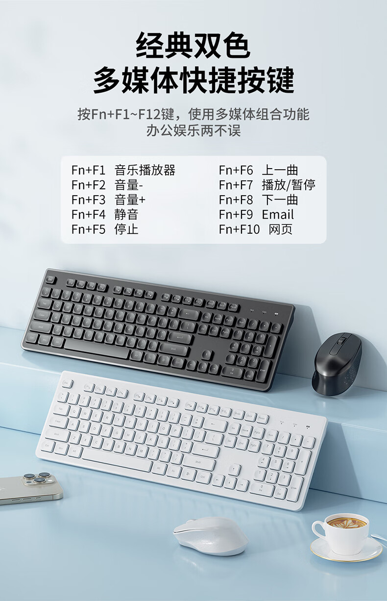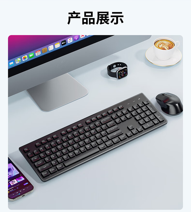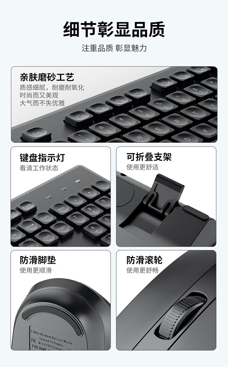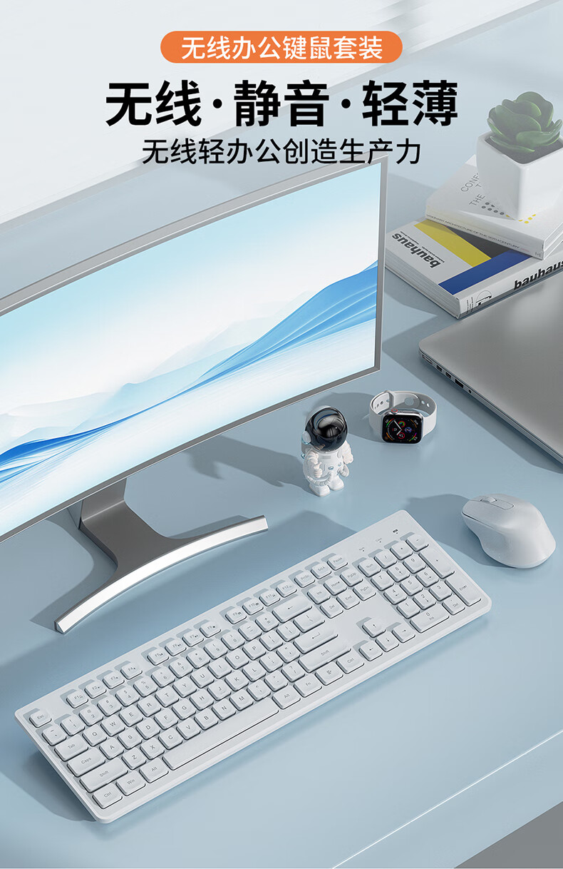秋坤轻薄无线键盘鼠标套装家用办公笔记本电脑台式持久耐用苹果小米华硕静音巧克力防溅水男女通用键盘 黑色-键盘鼠标套装【带独立开关/无线/静音/省电】