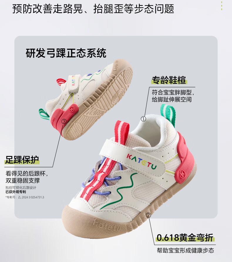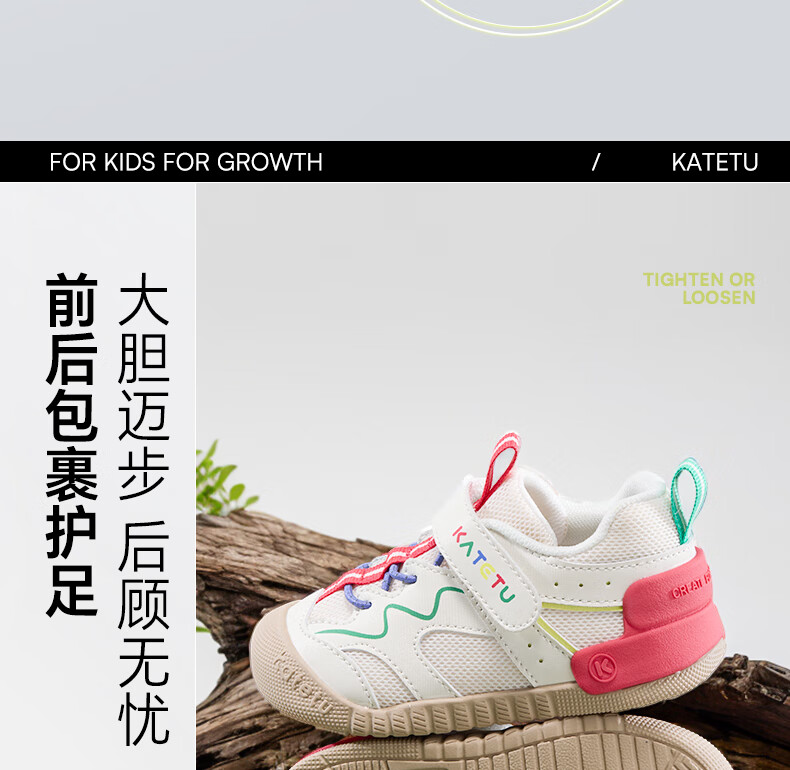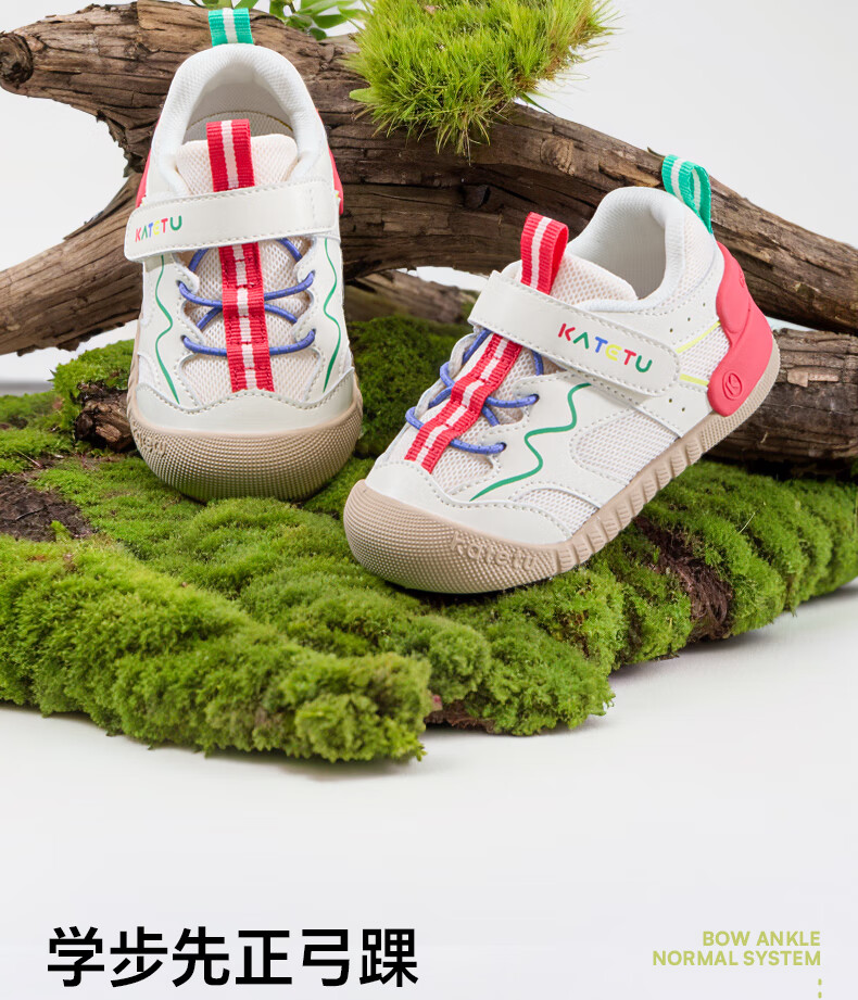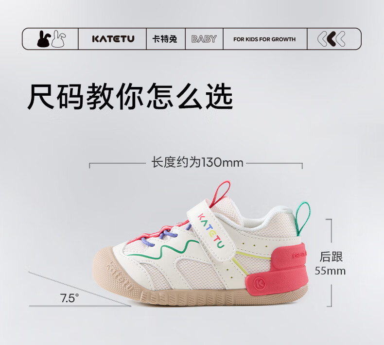 卡特兔宝宝学步鞋春季网眼透气小k盾宝宝鞋防滑软底机能鞋儿童鞋 白粉 24 内长14.5cm 脚长13.6-14.2