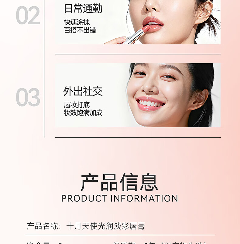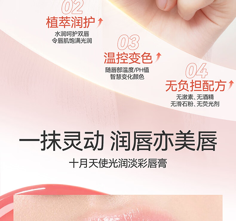 十月天使淡彩润唇膏准孕妇变色口红唇用滋养润护唇膜女性打底温感变色唇膏 淡彩变色润唇膏【感温变色】