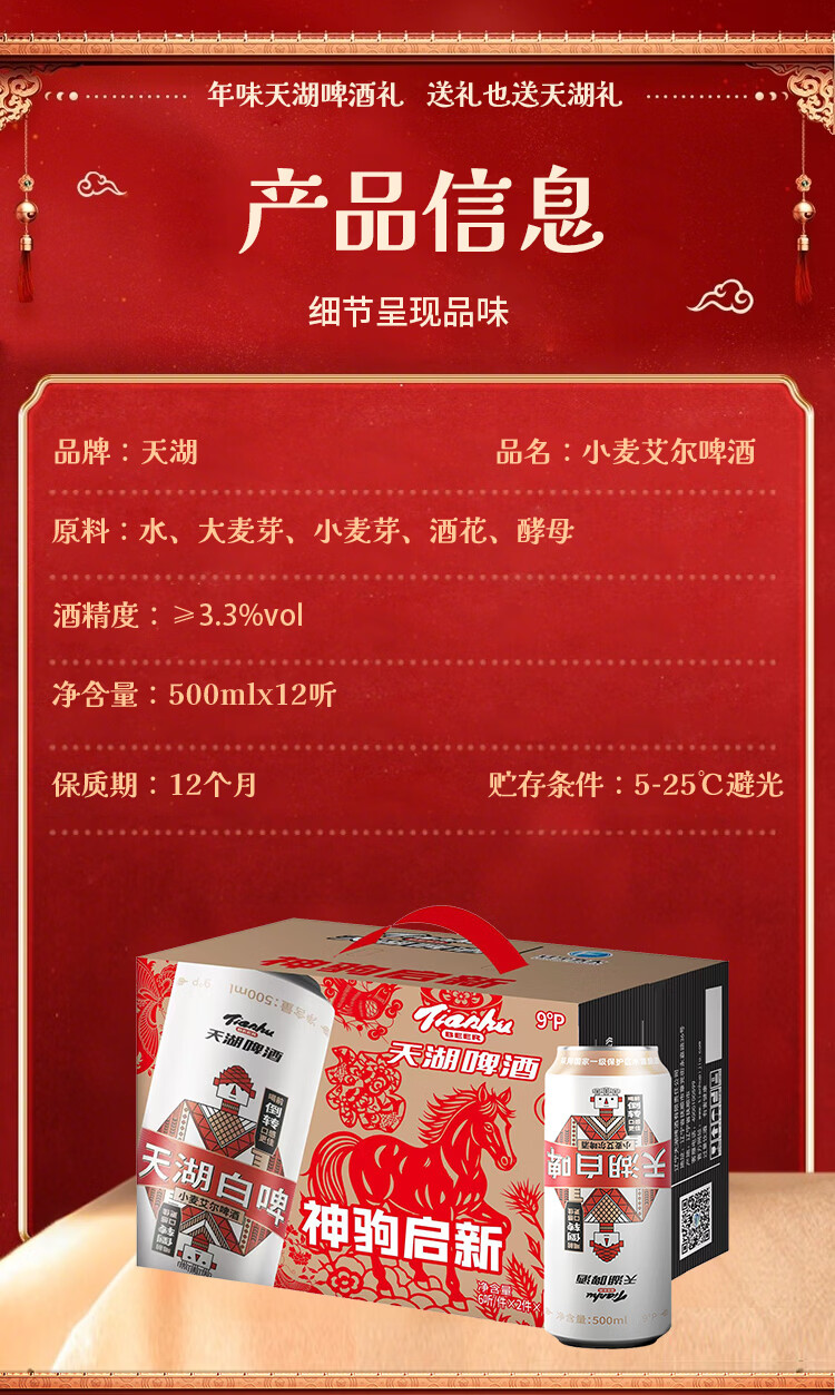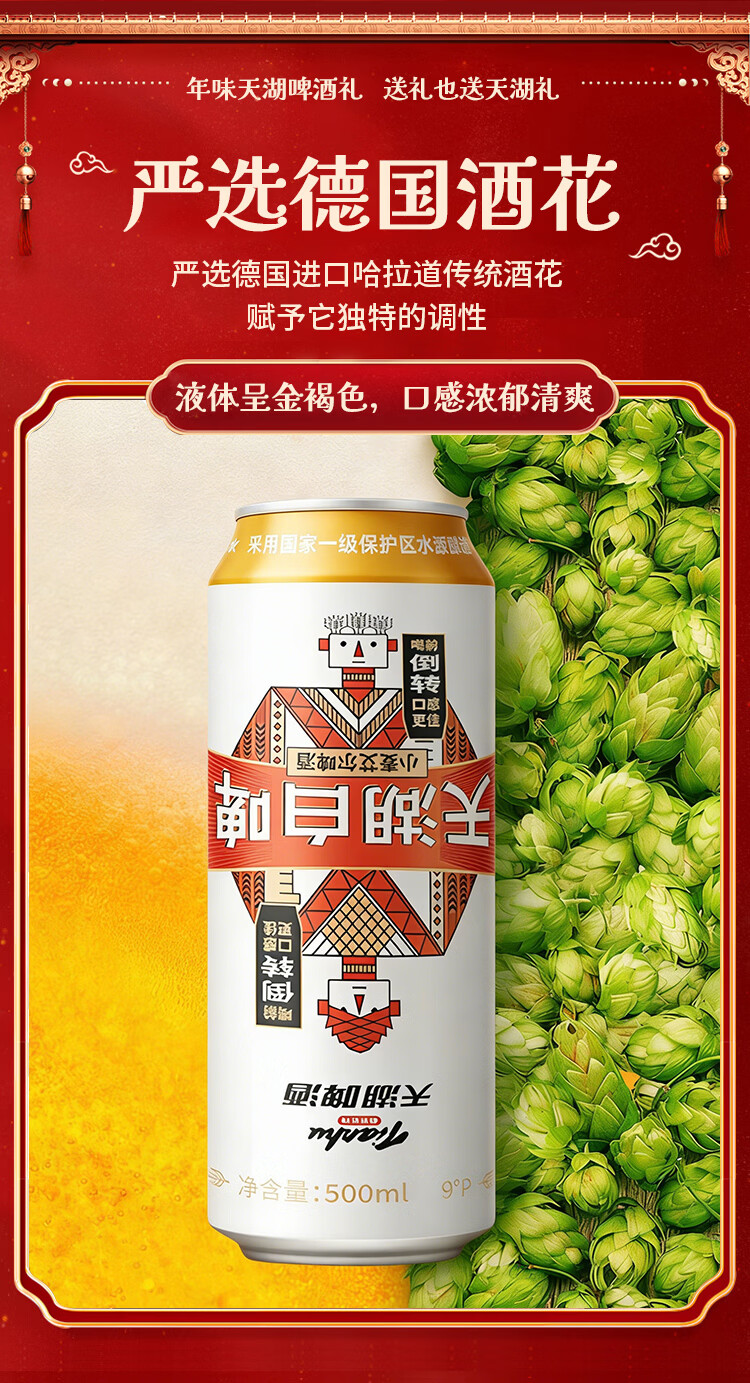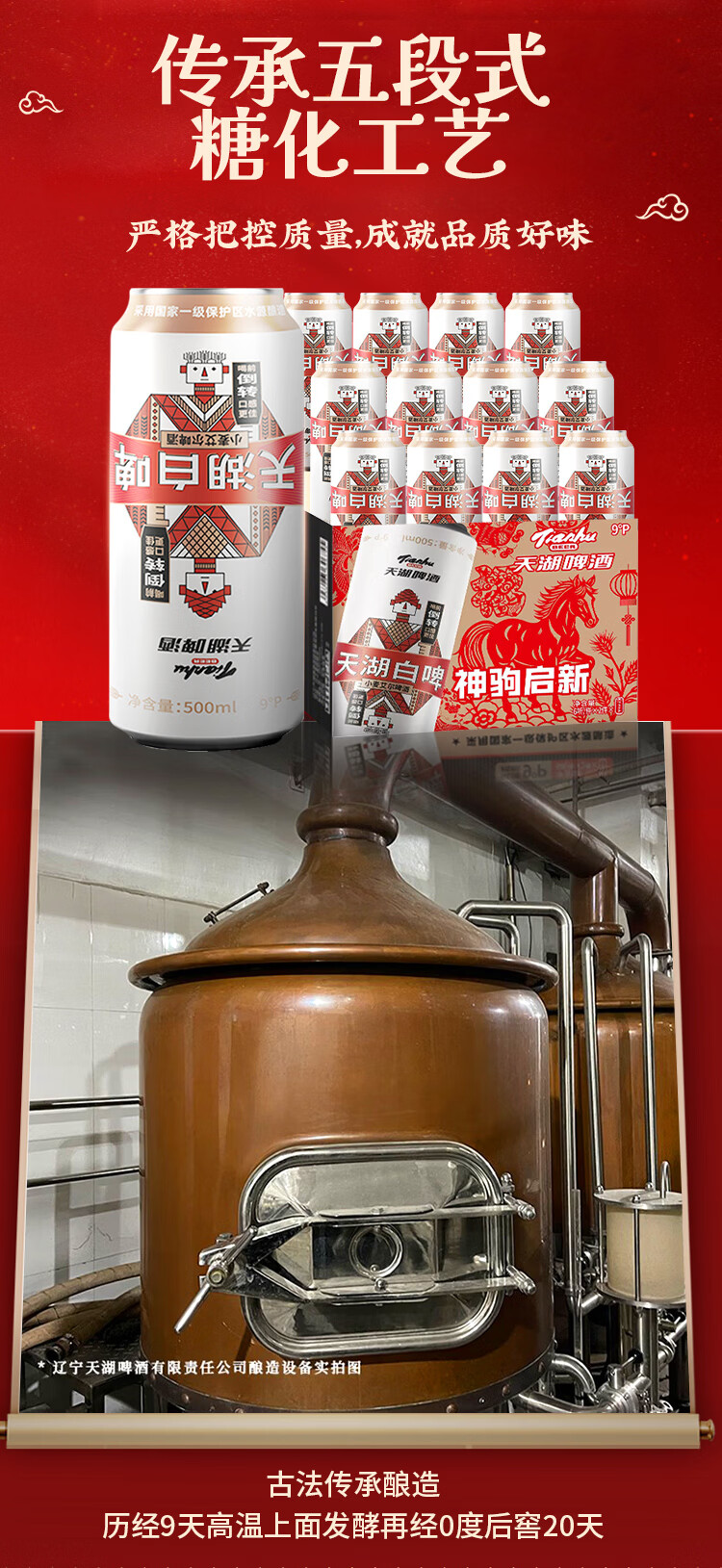 天湖啤酒9度精酿白啤浑浊型小麦艾尔啤酒口感醇正东北抚顺特产啤酒 500ml*12罐