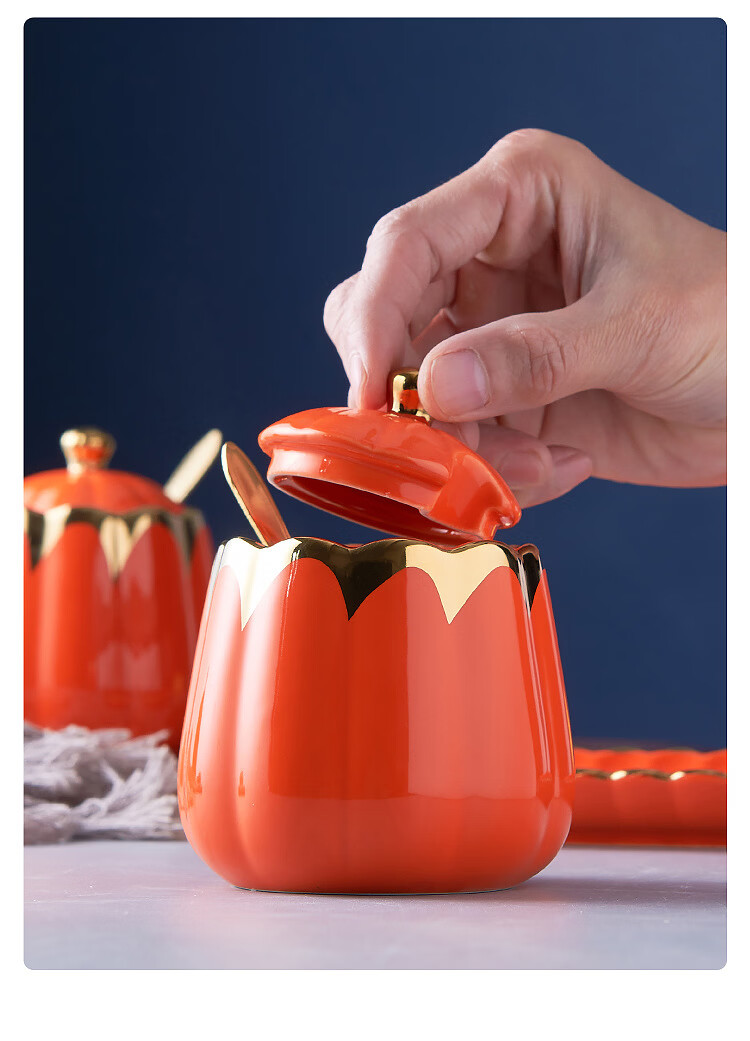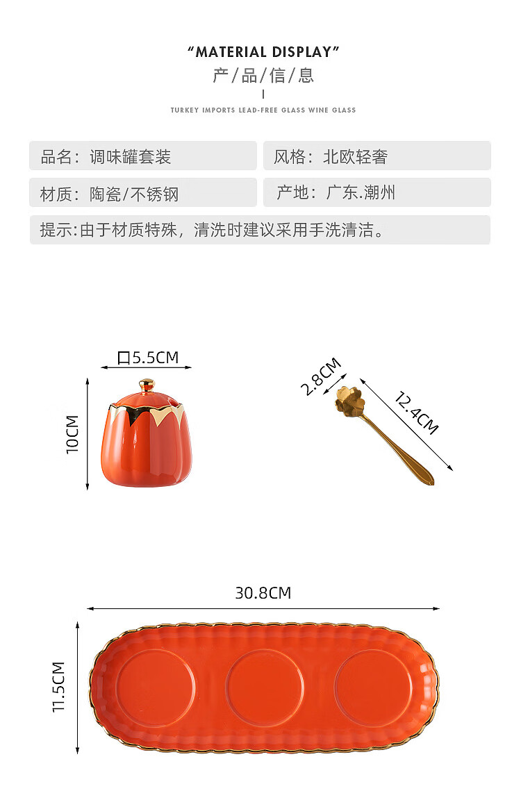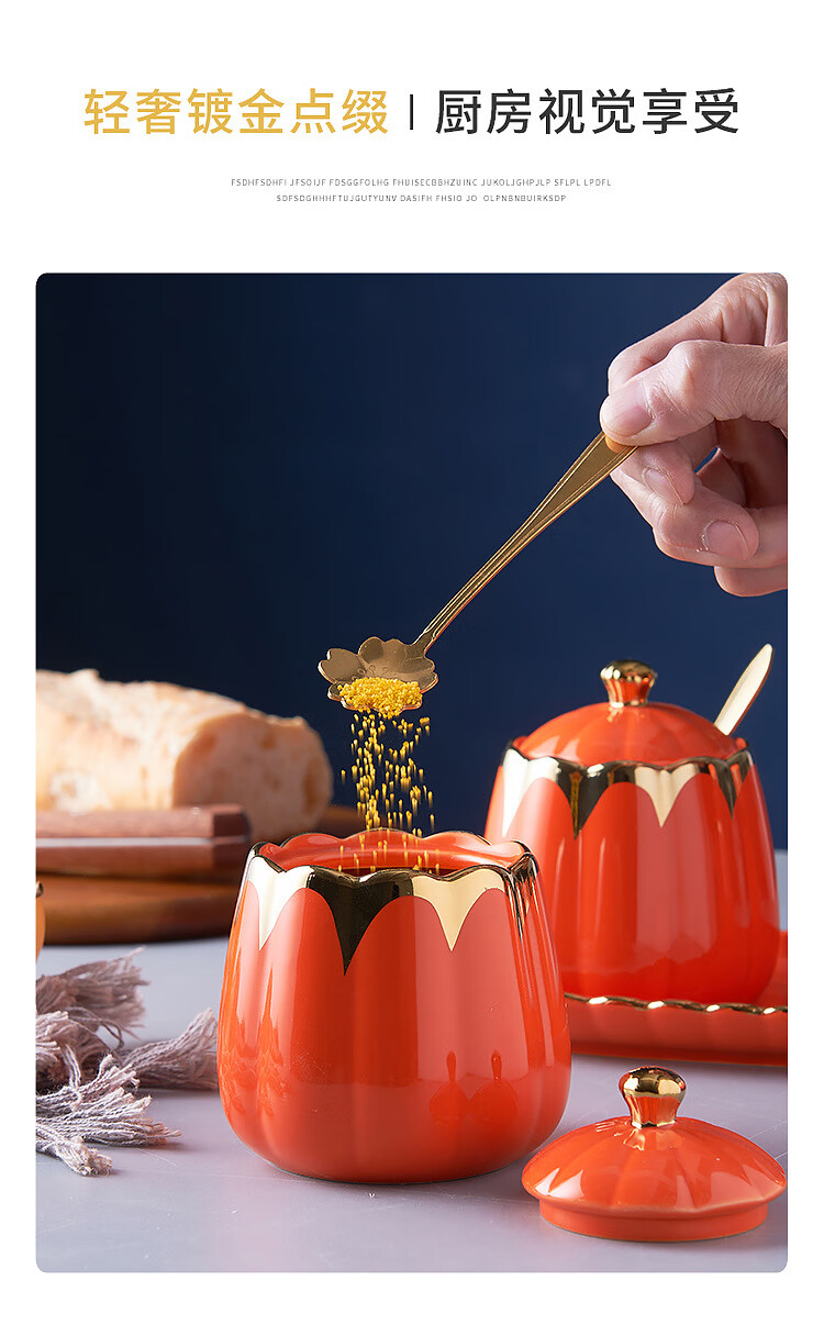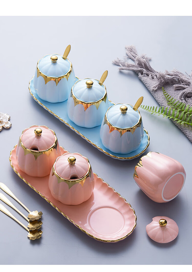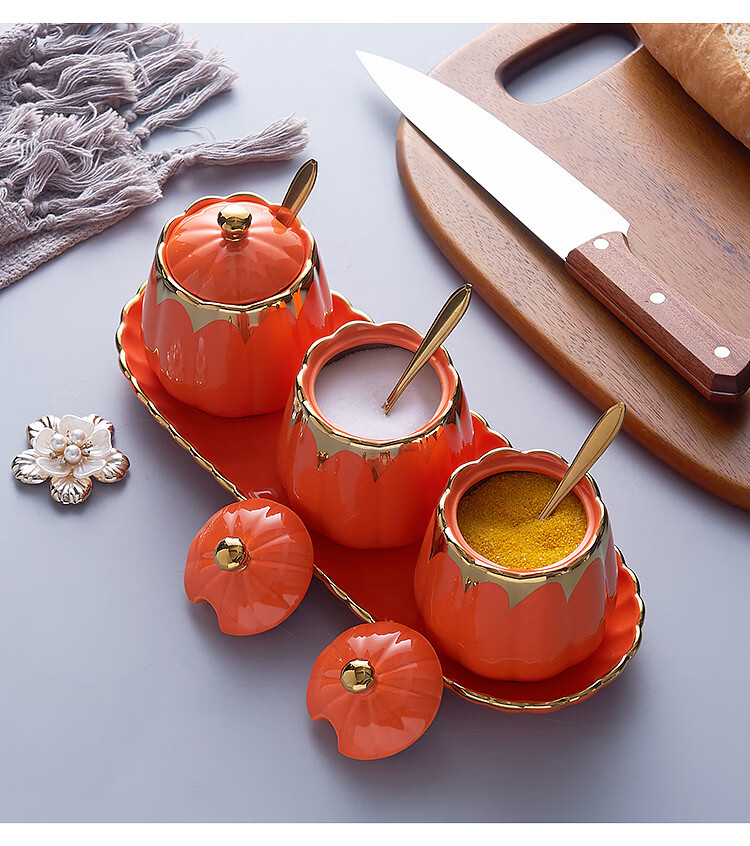 MMOTRO日本品牌陶瓷调料罐家用调味罐组合套装调料收纳佐料盐罐厨房用品 墨绿色 3罐+托盘+3勺