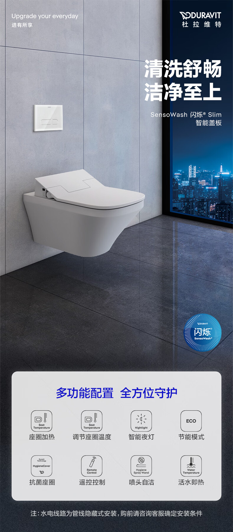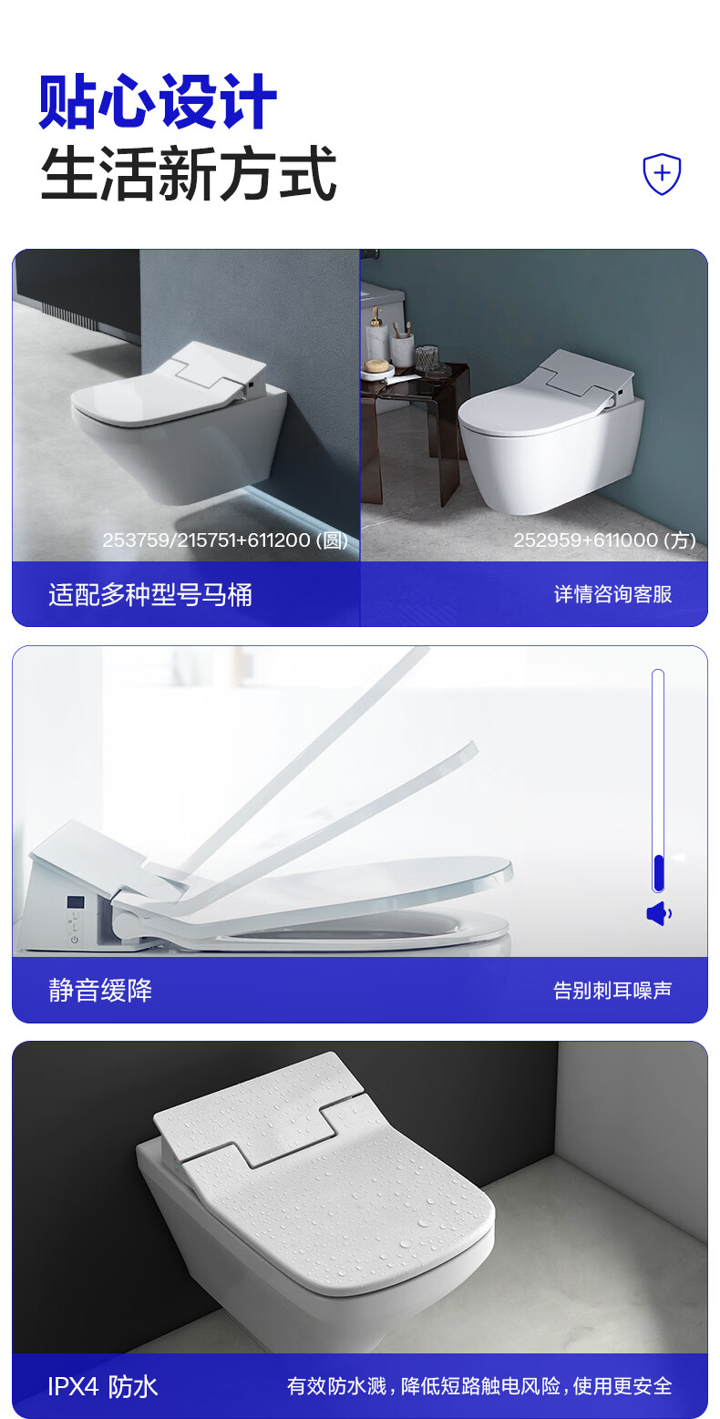DURAVIT(杜拉维特)智能座便器盖板抗菌即热式多重清洗多功能611200 611200 【加热+自洁】暗线-方形