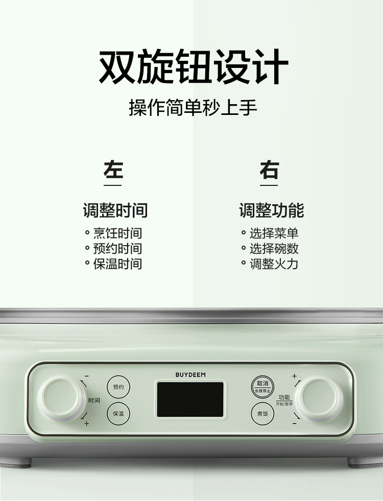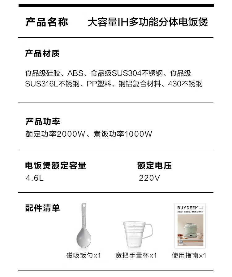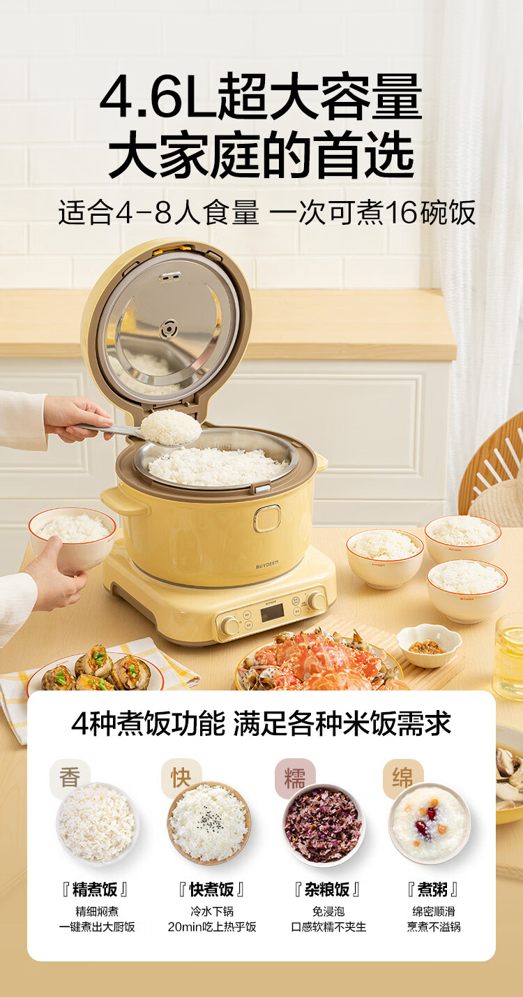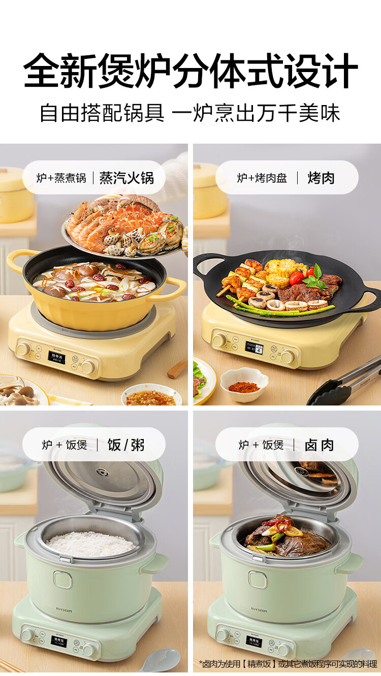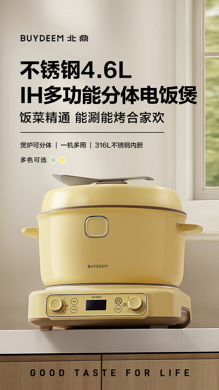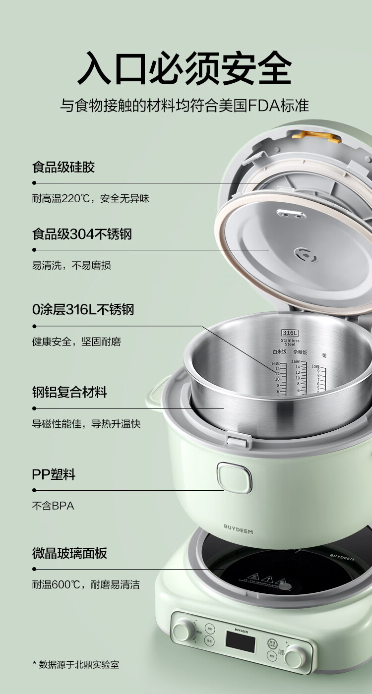 北鼎(Buydeem)电饭煲电饭锅4-8人家用大容量多功能煮粥锅煮饭锅 预约保温IH变频加热0涂层内胆R551电饭煲 浅杉绿