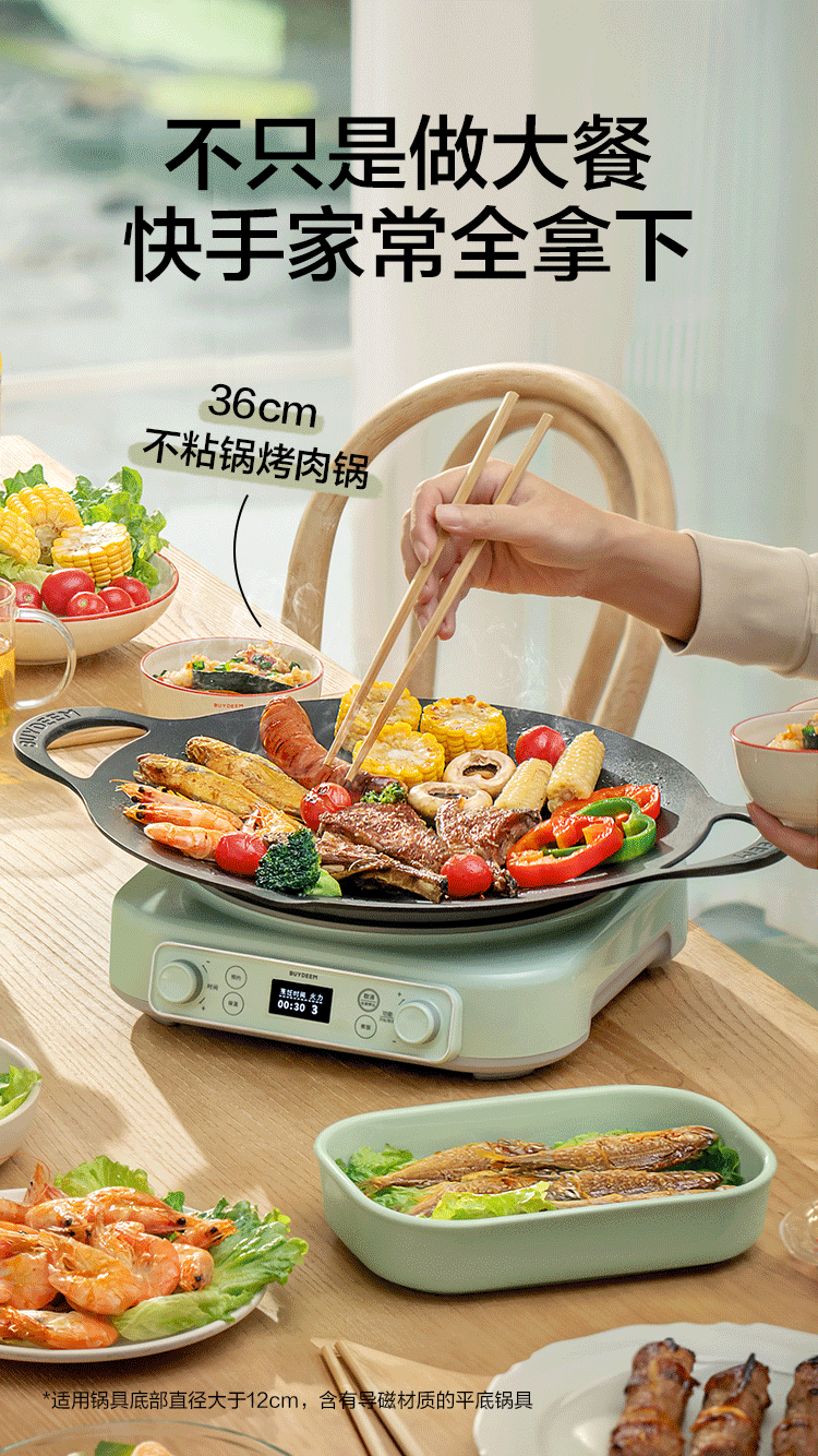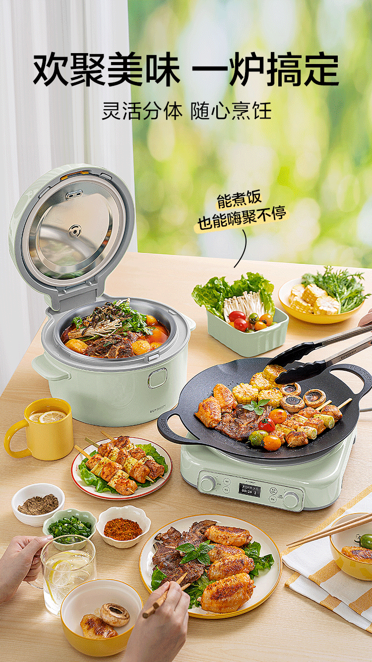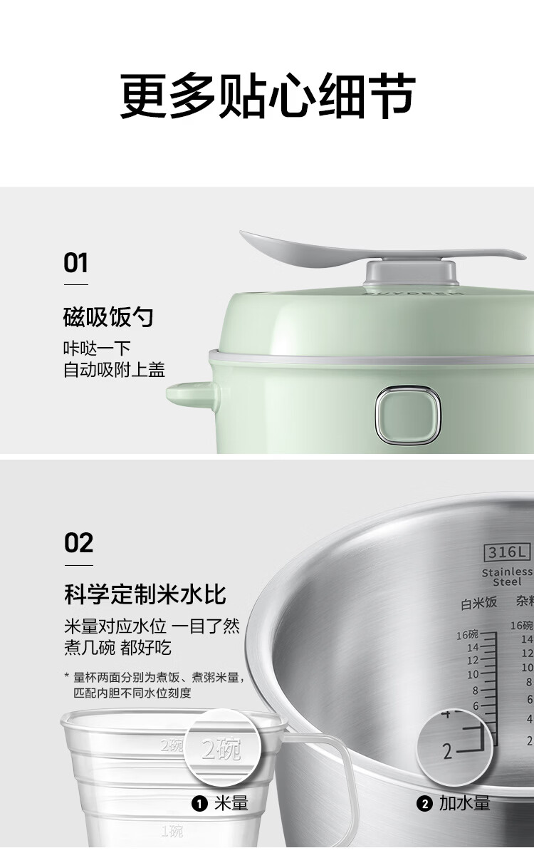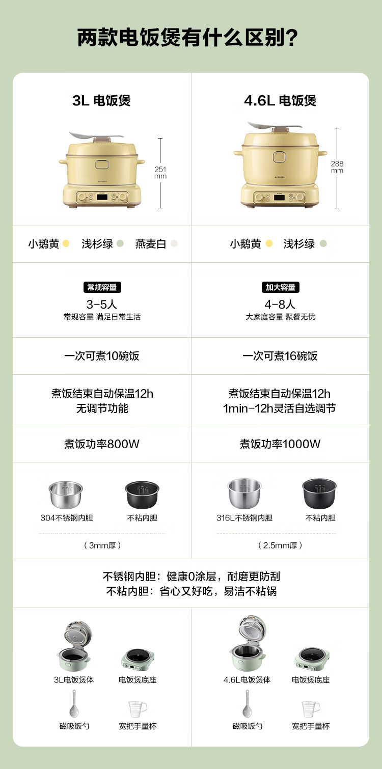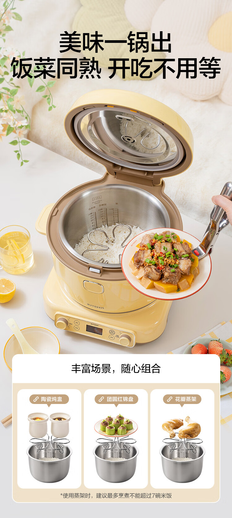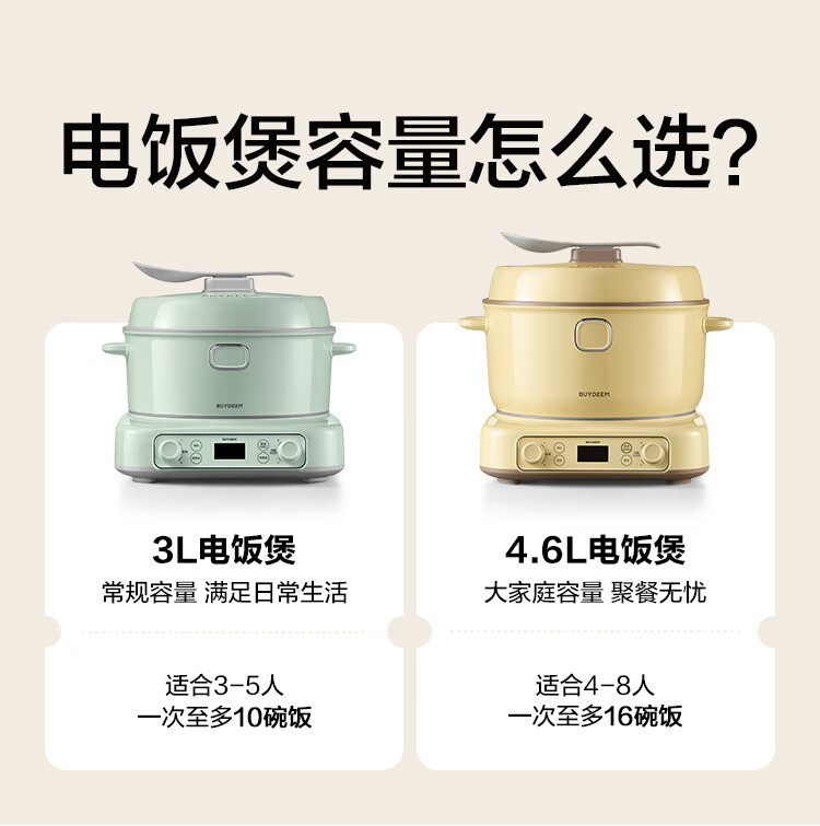 北鼎(Buydeem)电饭煲电饭锅4-8人家用大容量多功能煮粥锅煮饭锅 预约保温IH变频加热0涂层内胆R551电饭煲 浅杉绿