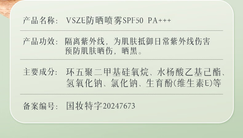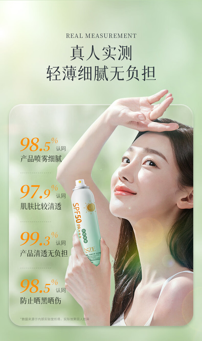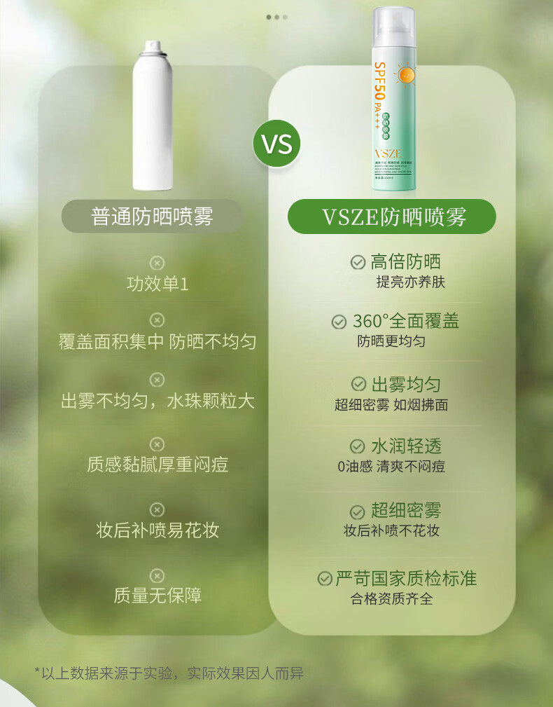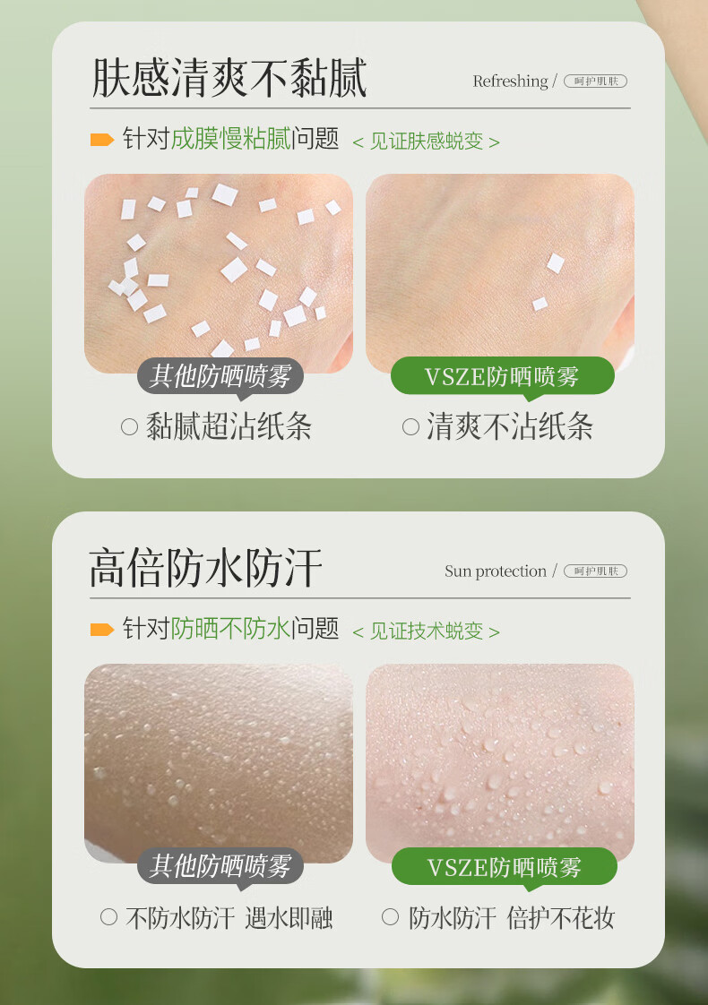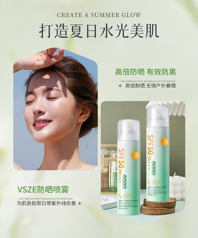 VSZE防晒喷雾霜男女士军训专用高倍美白防水防汗持久防紫外线SPF50+ 【青色新升级】军训高倍防晒喷雾150ml*2瓶