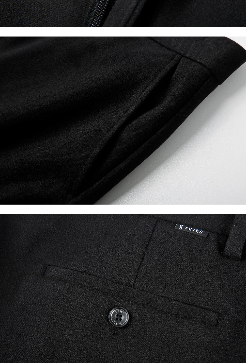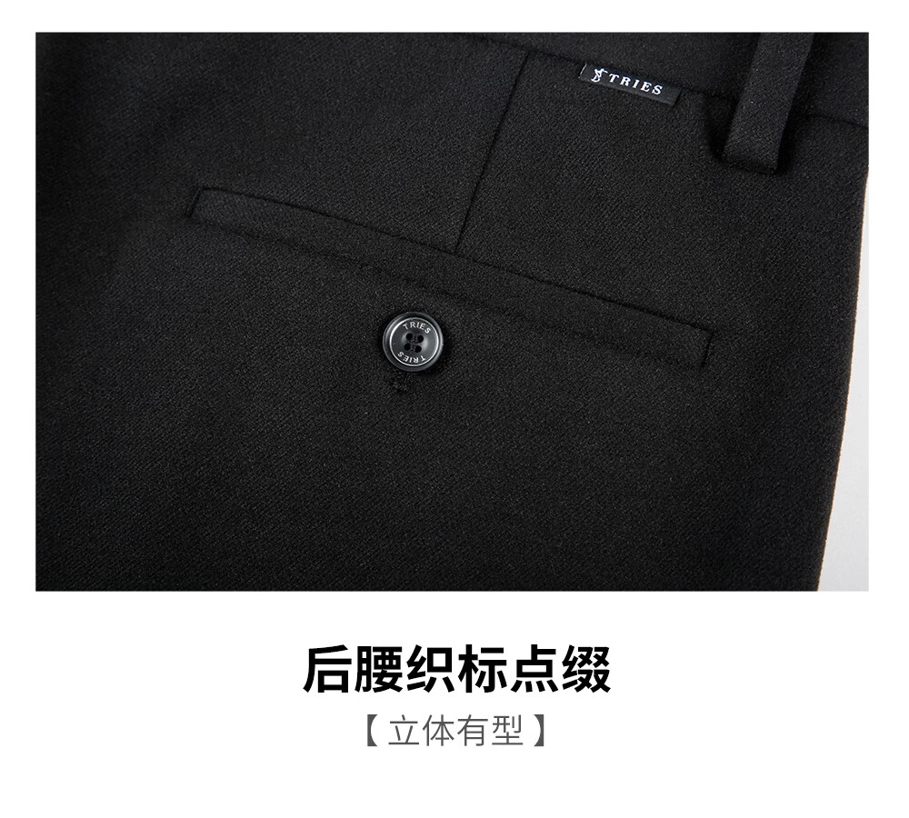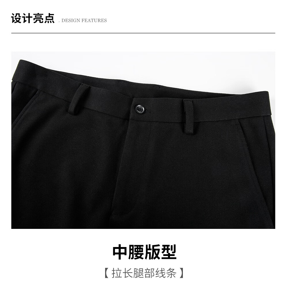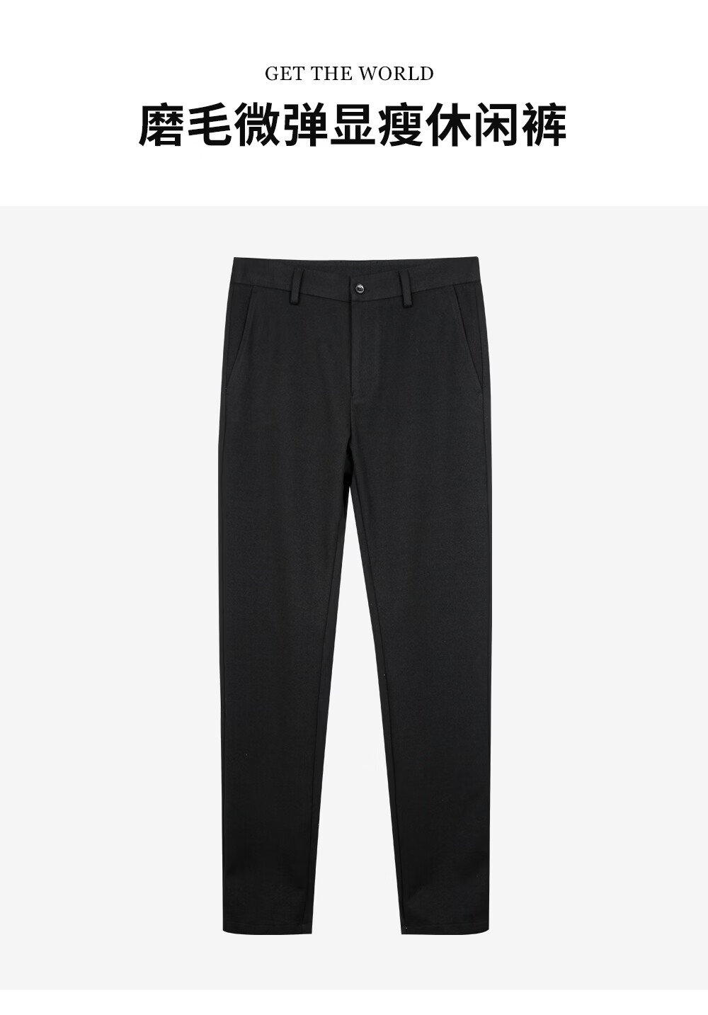 才子(TRIES)春季新款男士磨毛微弹休闲裤修身直筒显瘦商务通勤抗皱百搭长裤 黑色 39 /100cm