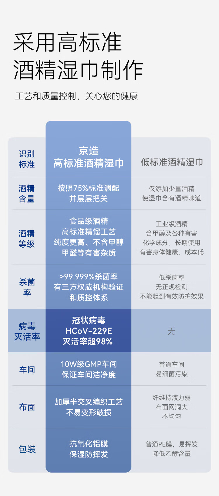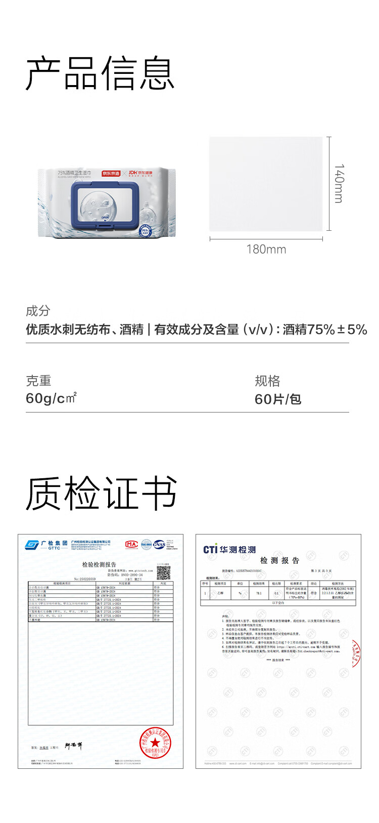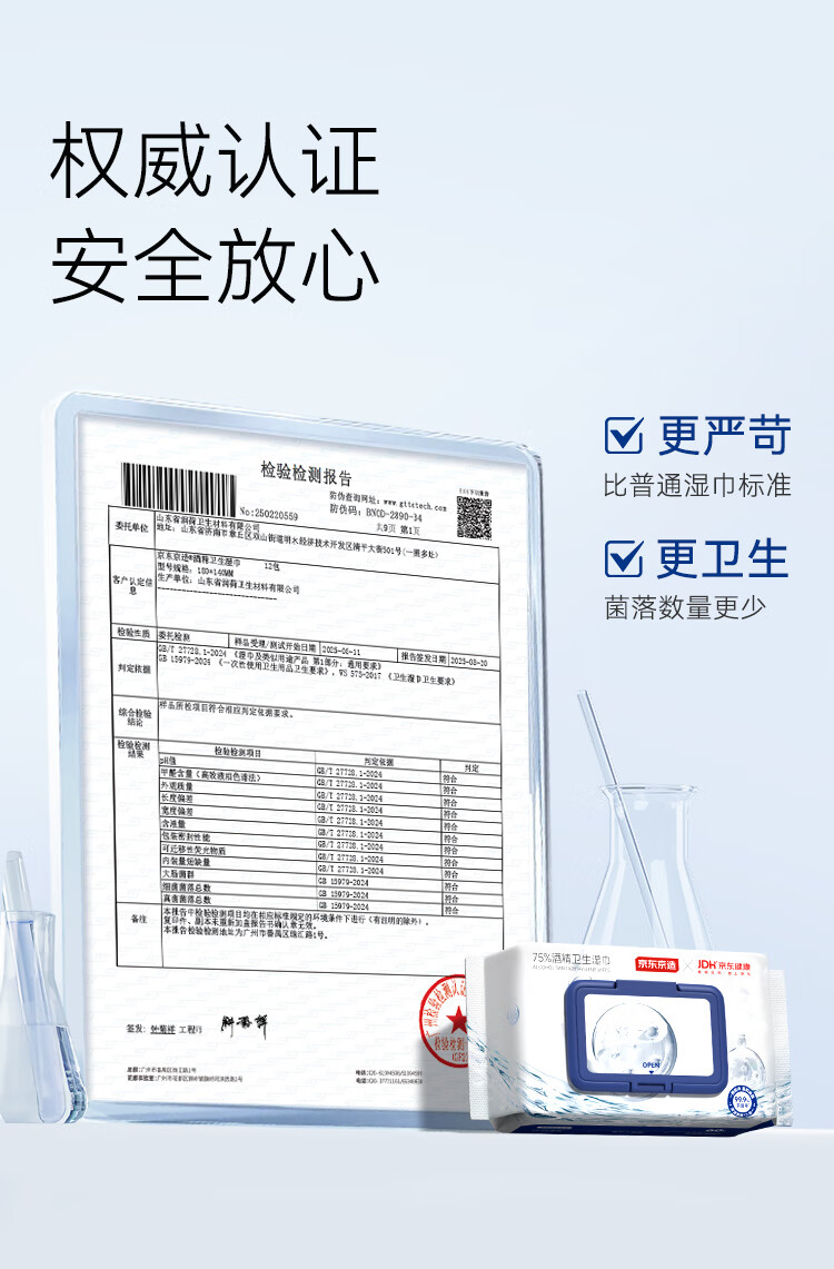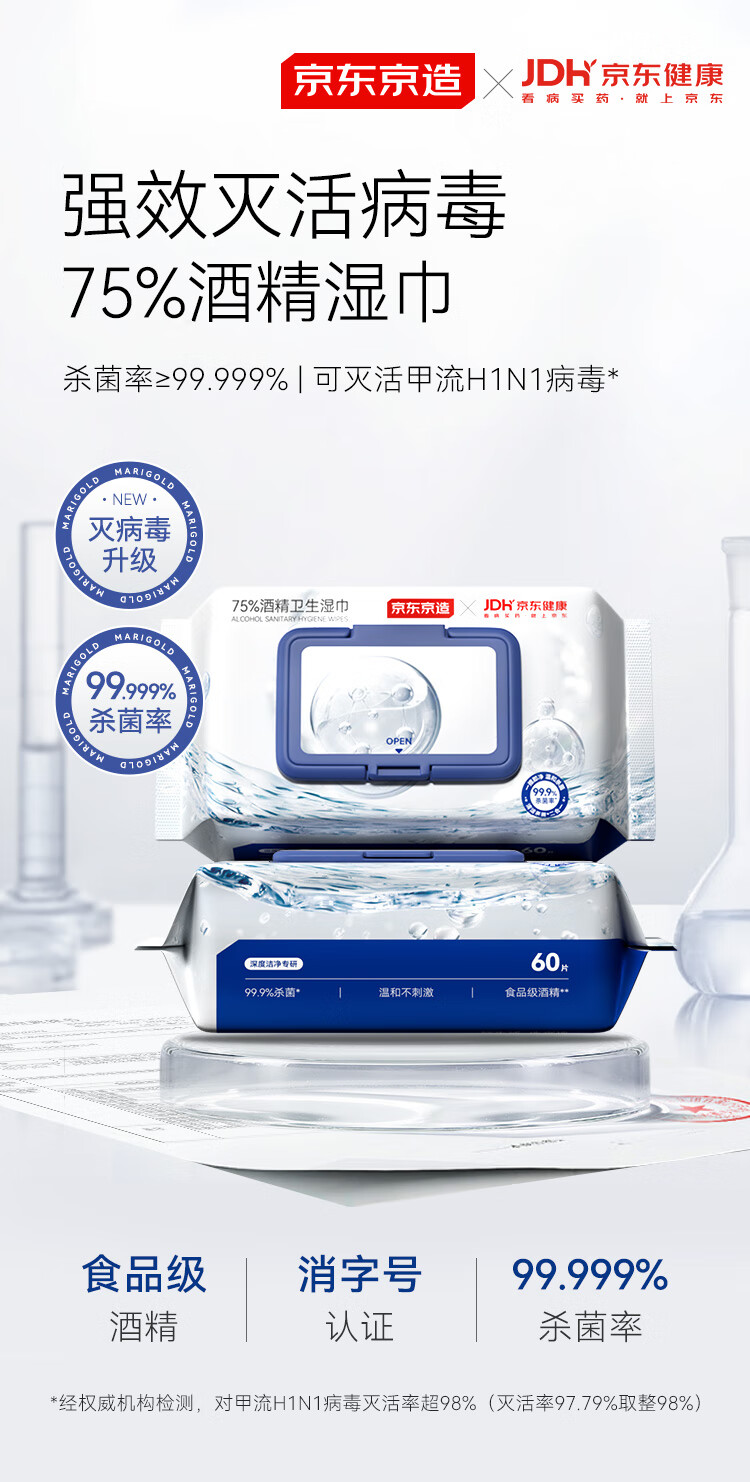 京东京造&京东健康 75%酒精湿巾60片杀菌率99.9% 湿纸巾 消毒湿巾可灭病毒