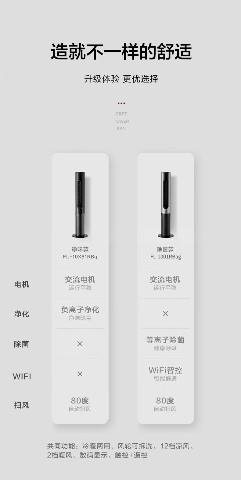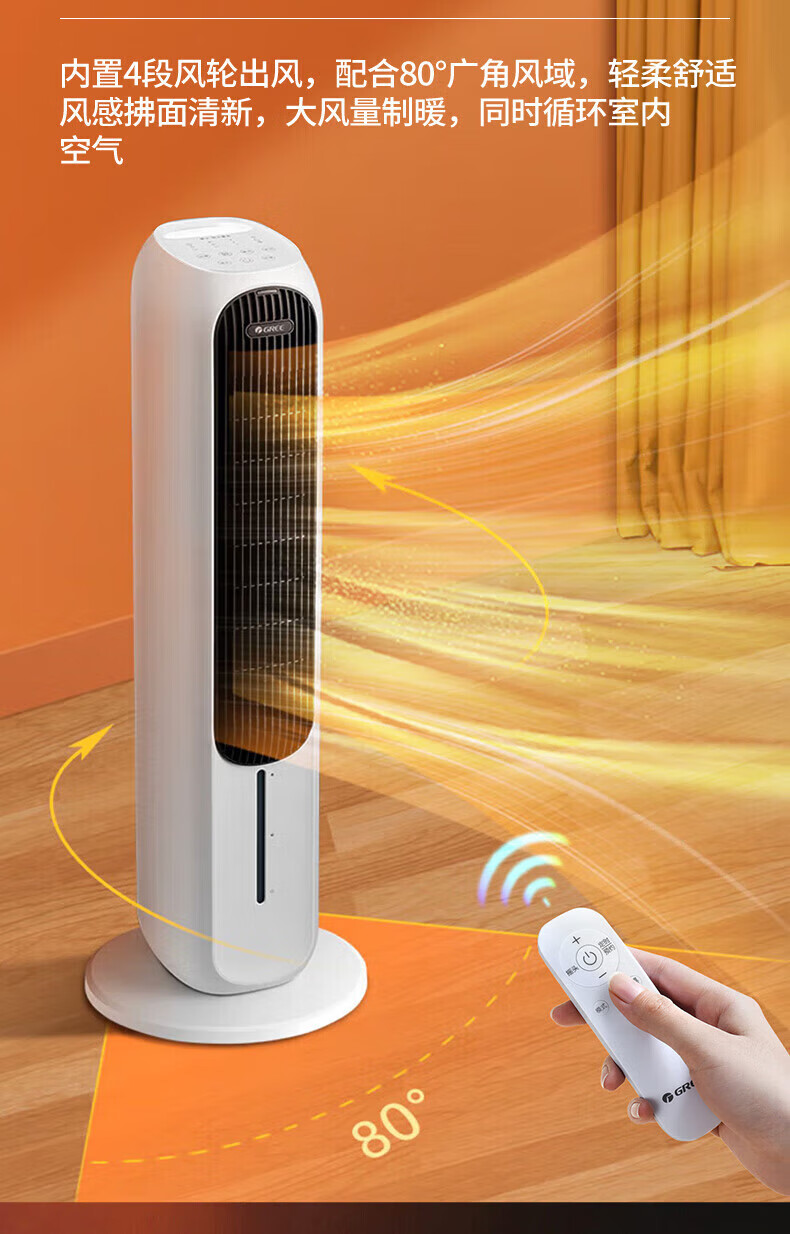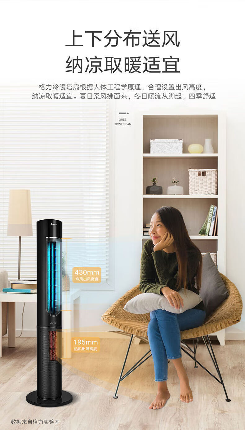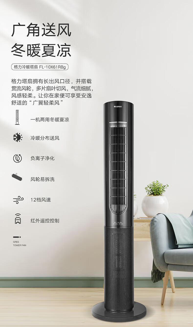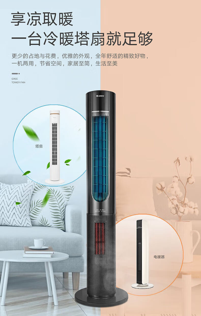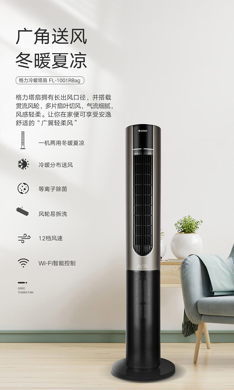 格力(GREE) 塔扇冷暖两用落地扇 电风扇家用塔式无叶加湿风扇等离子除菌取暖器暖风机WIFI 智控节能低躁电扇 FL-1001RBag