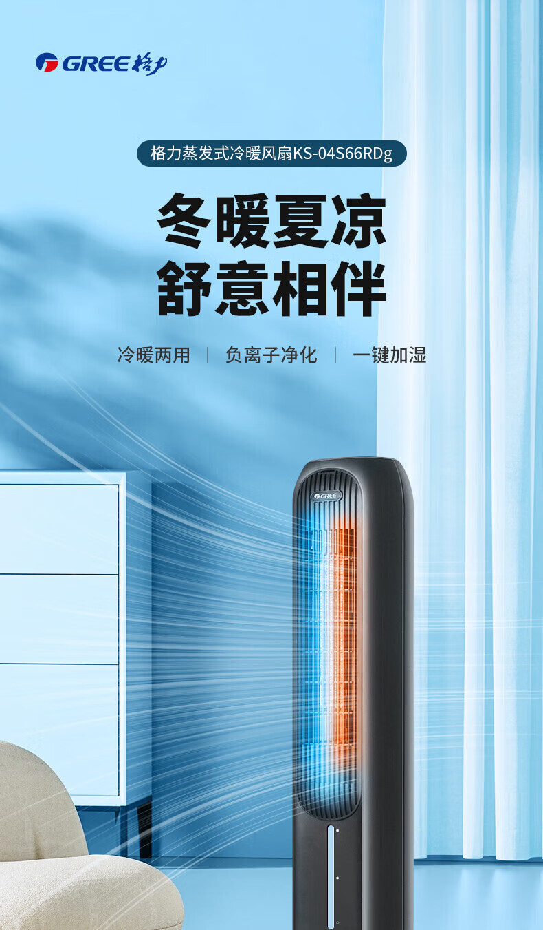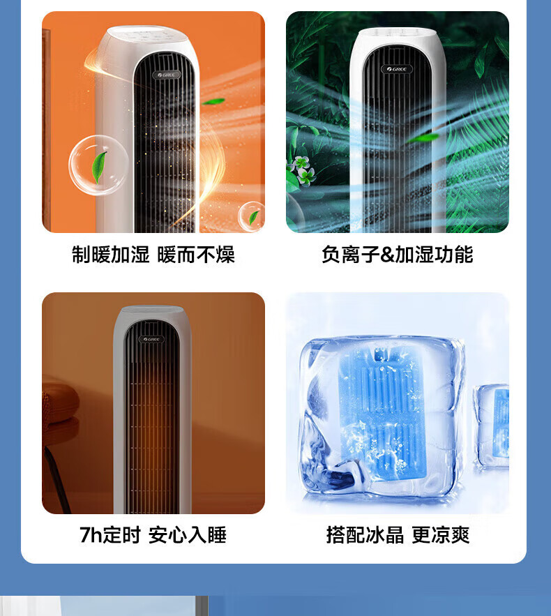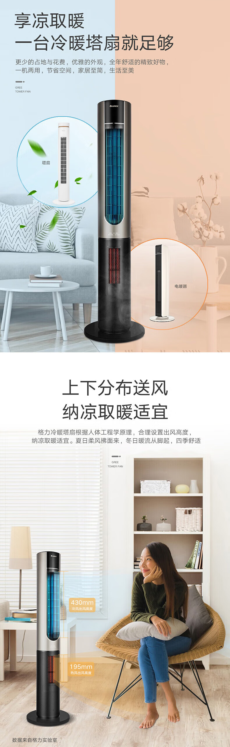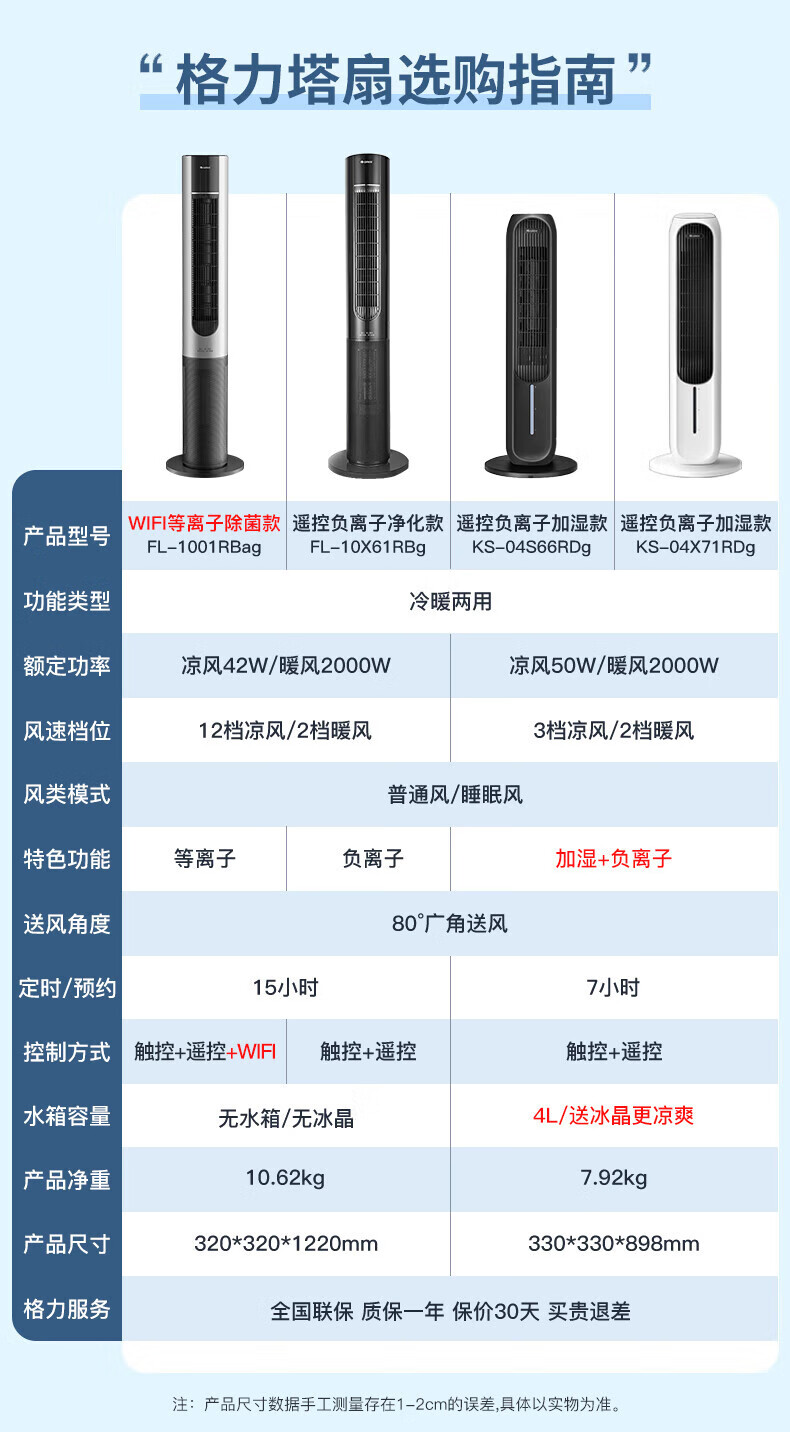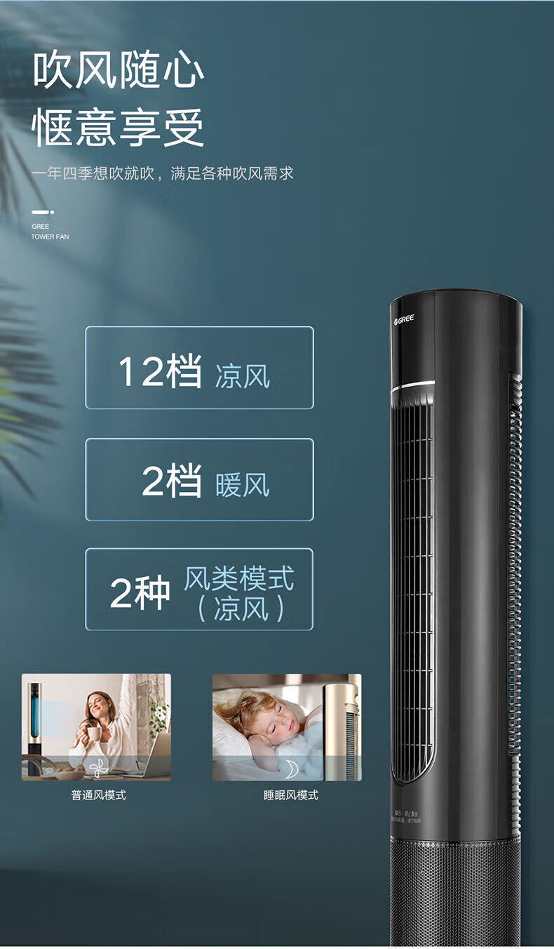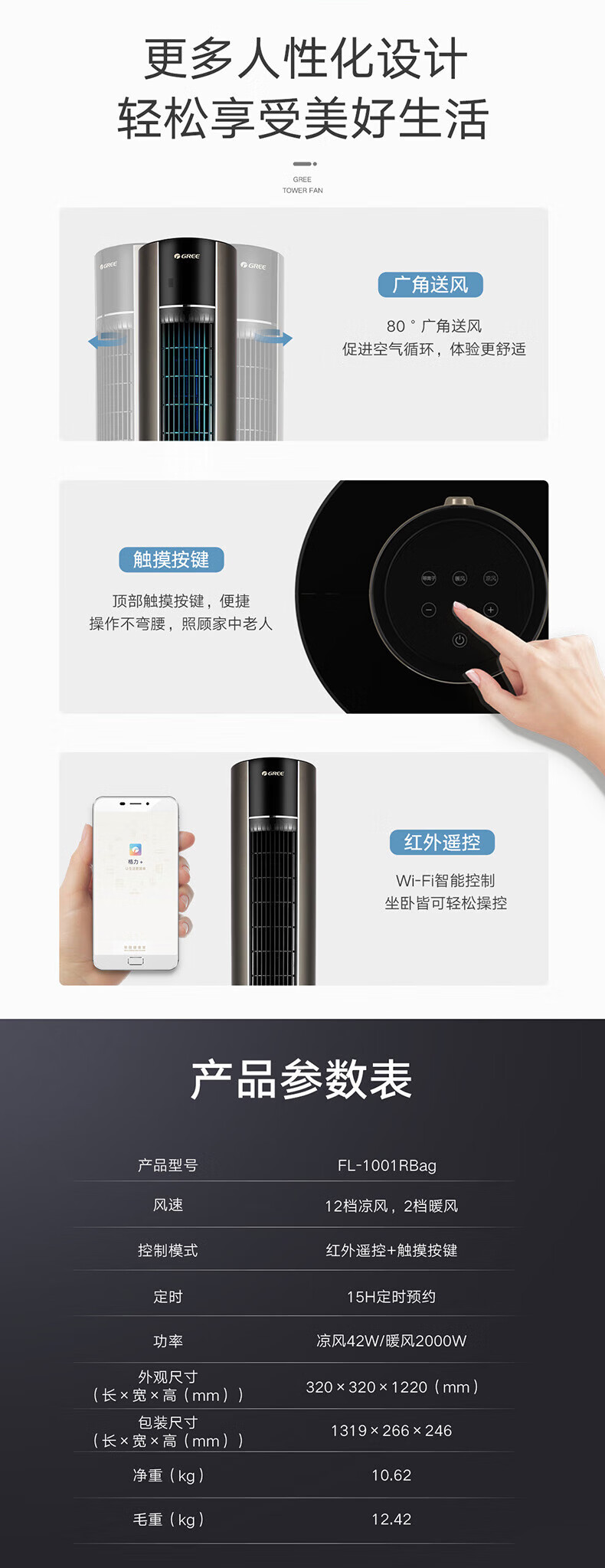 格力(GREE) 塔扇冷暖两用落地扇 电风扇家用塔式无叶加湿风扇等离子除菌取暖器暖风机WIFI 智控节能低躁电扇 FL-1001RBag