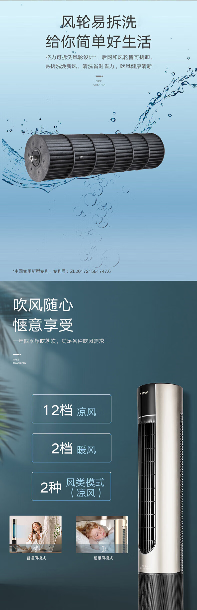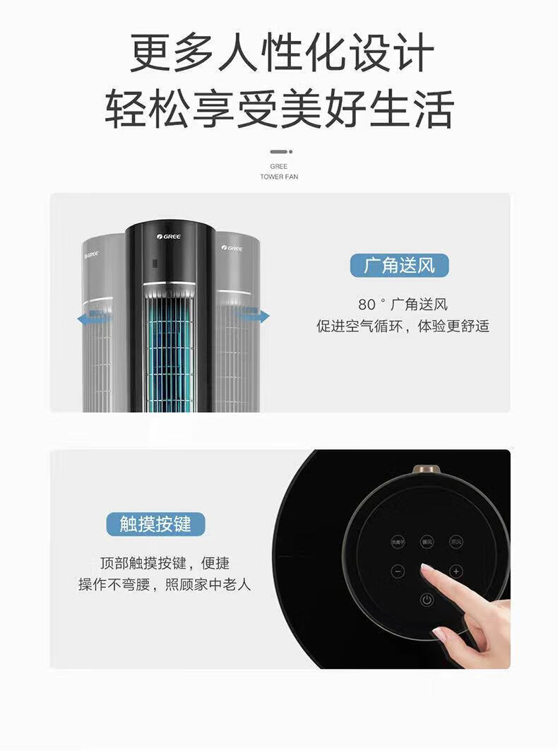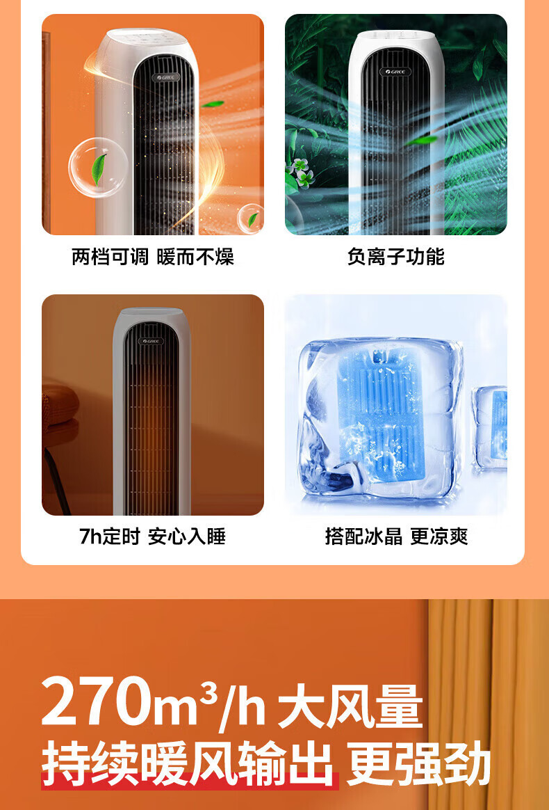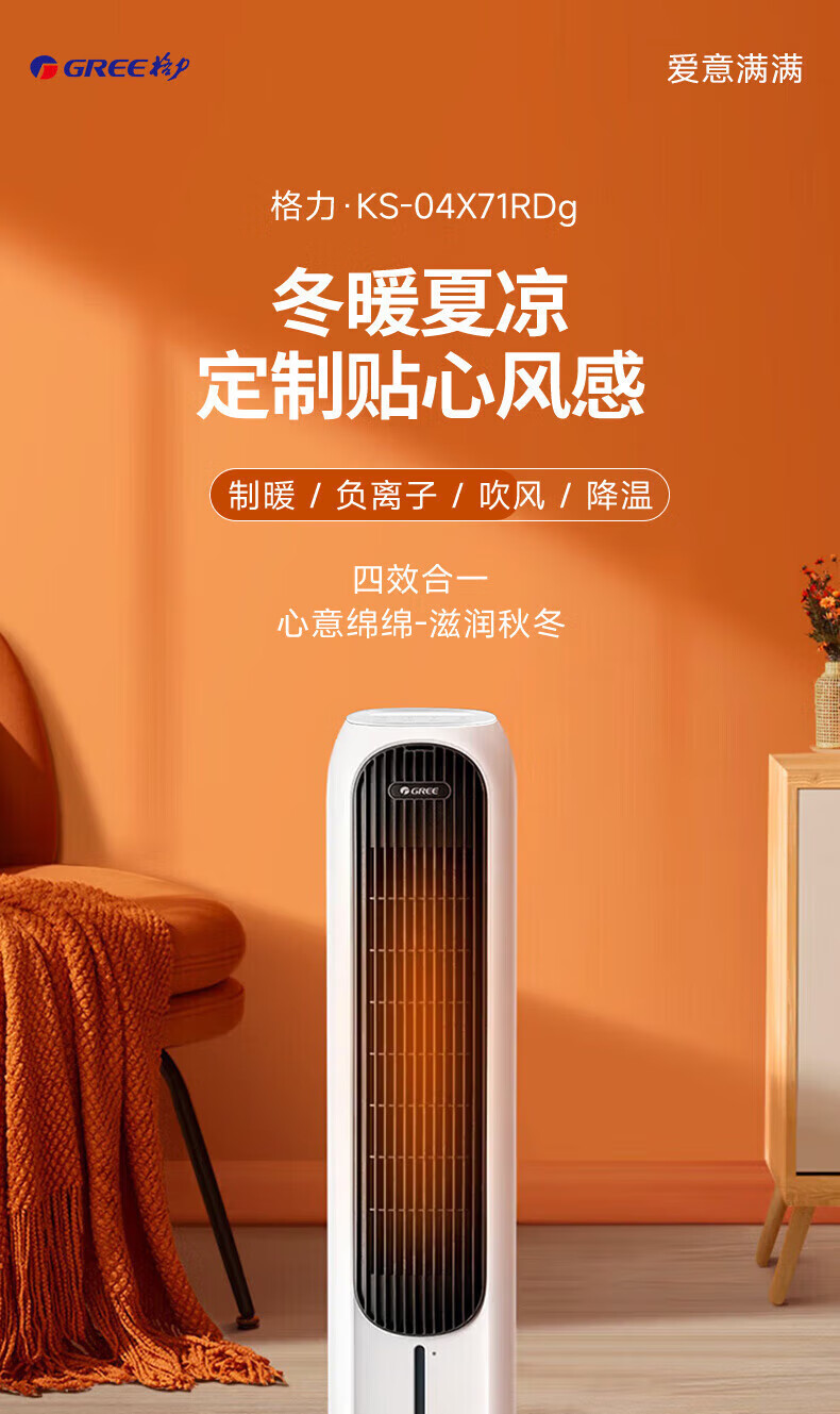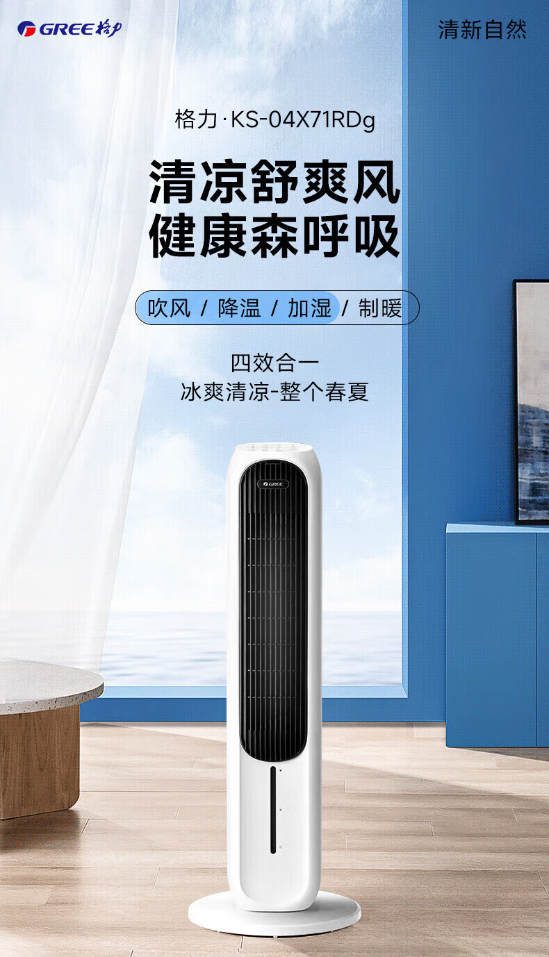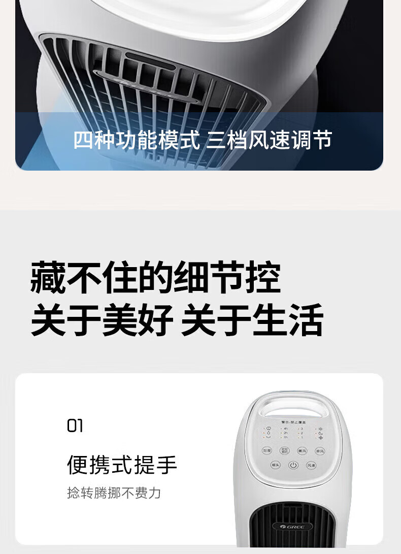 格力(GREE) 塔扇冷暖两用落地扇 电风扇家用塔式无叶加湿风扇等离子除菌取暖器暖风机WIFI 智控节能低躁电扇 FL-1001RBag