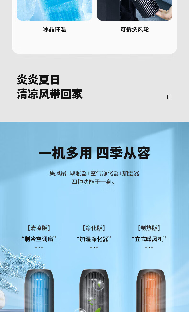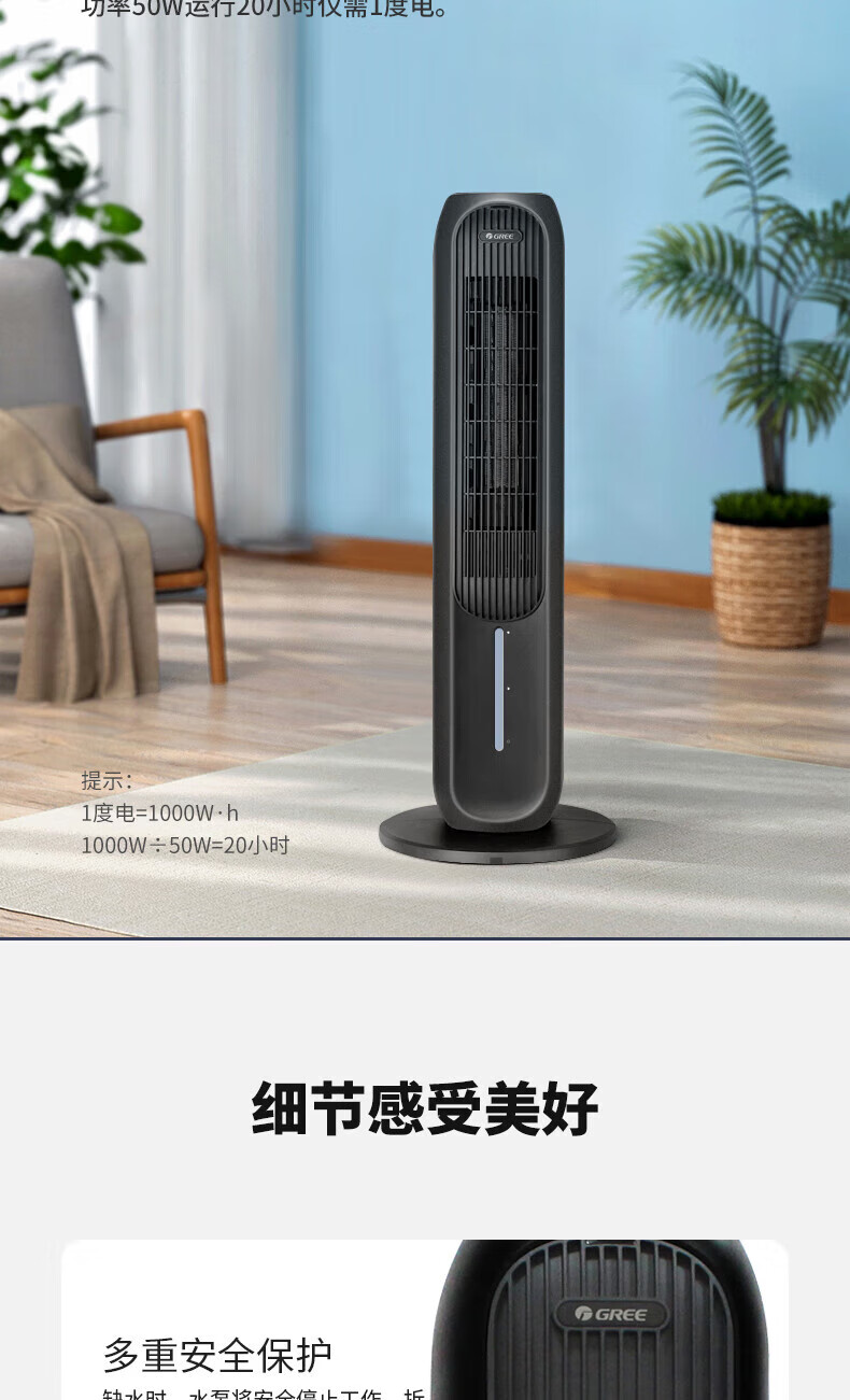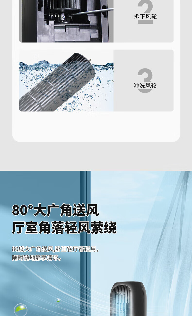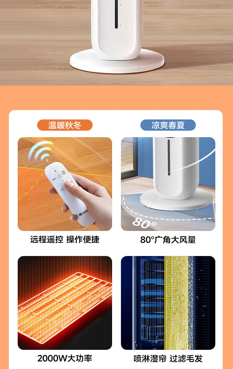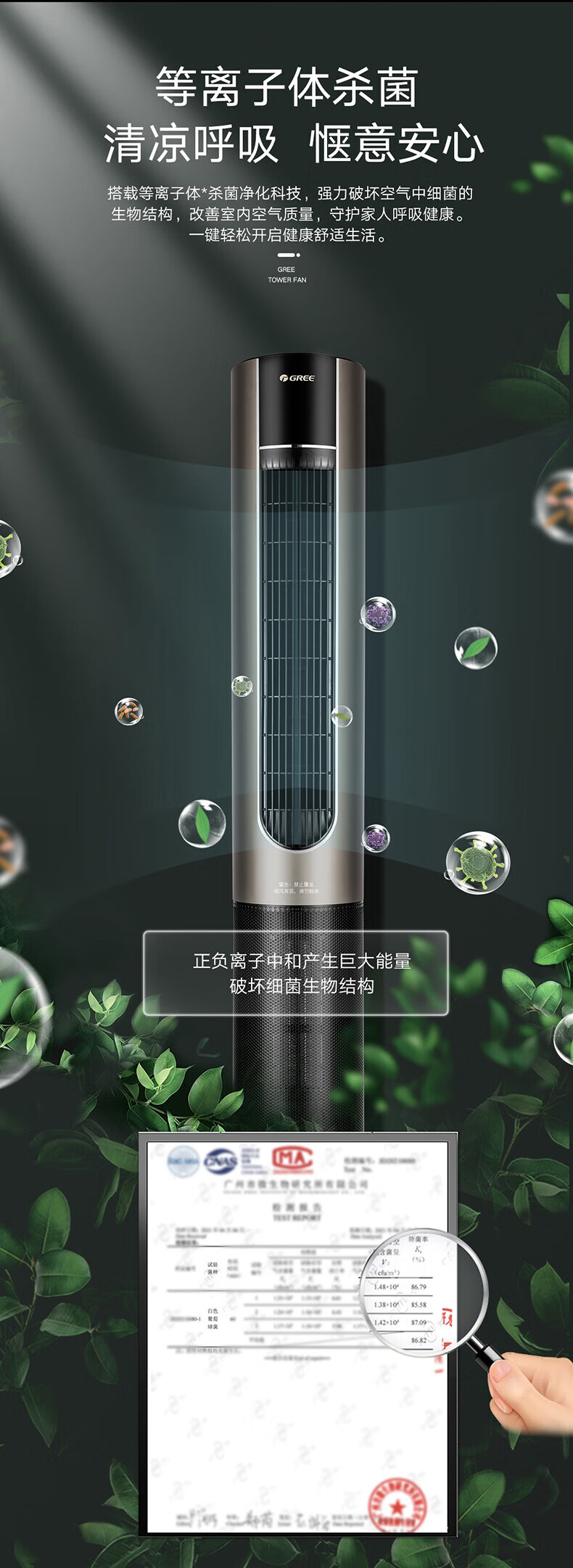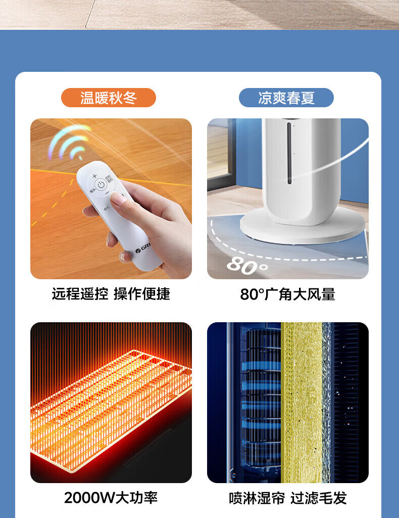 格力(GREE) 塔扇冷暖两用落地扇 电风扇家用塔式无叶加湿风扇等离子除菌取暖器暖风机WIFI 智控节能低躁电扇 FL-1001RBag