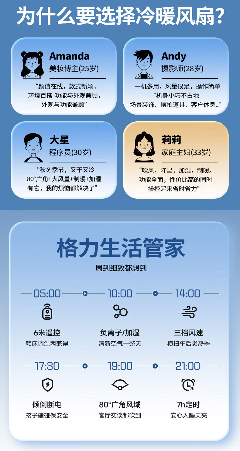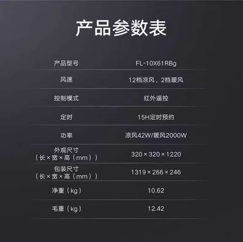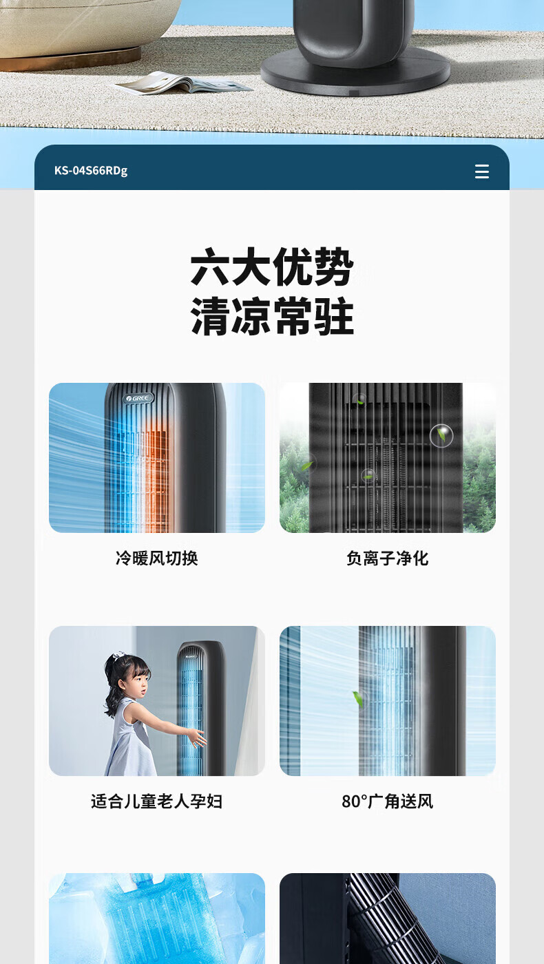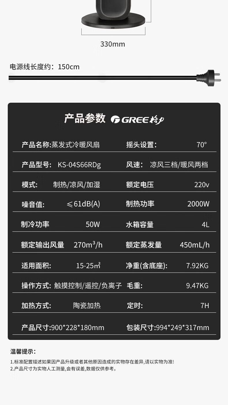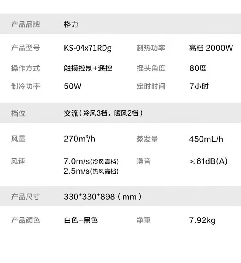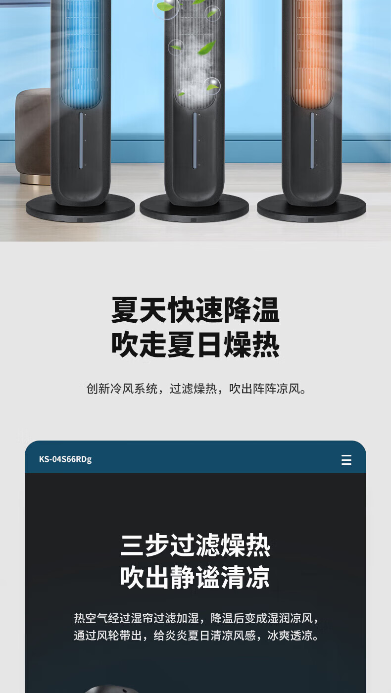 格力(GREE) 塔扇冷暖两用落地扇 电风扇家用塔式无叶加湿风扇等离子除菌取暖器暖风机WIFI 智控节能低躁电扇 FL-1001RBag