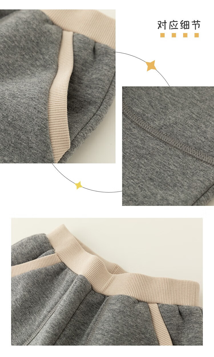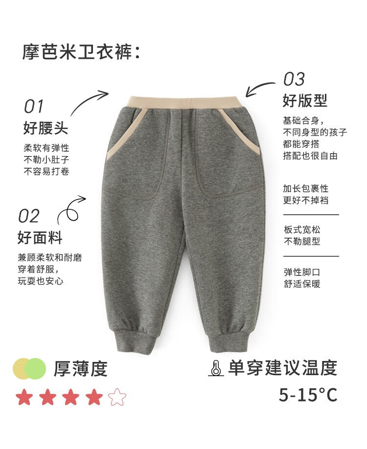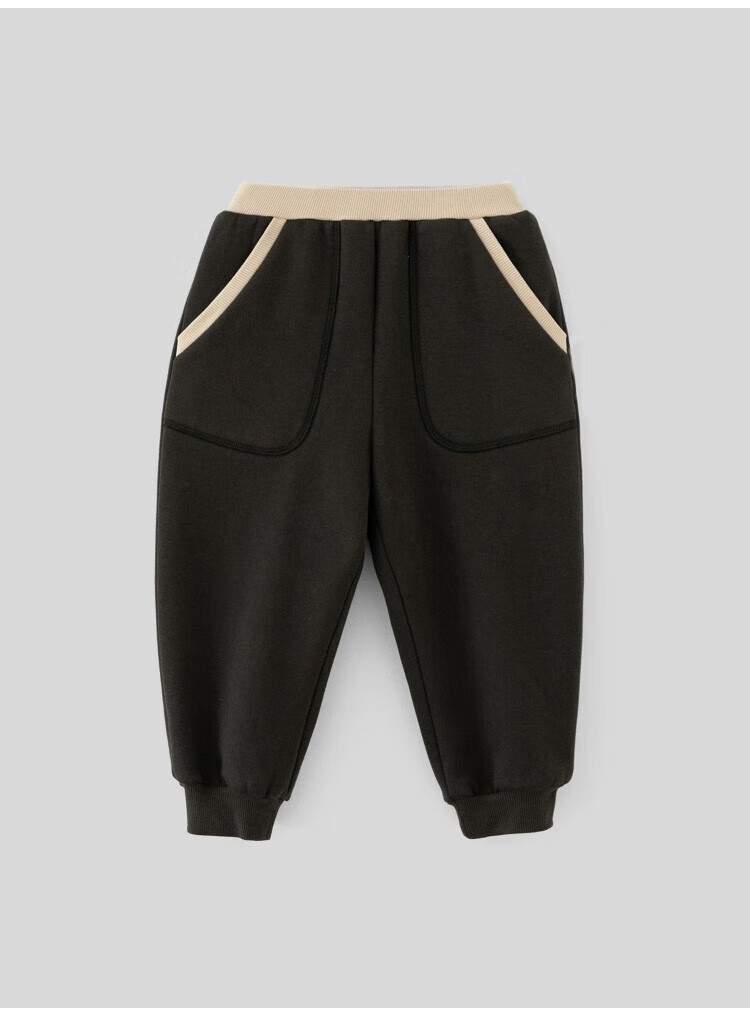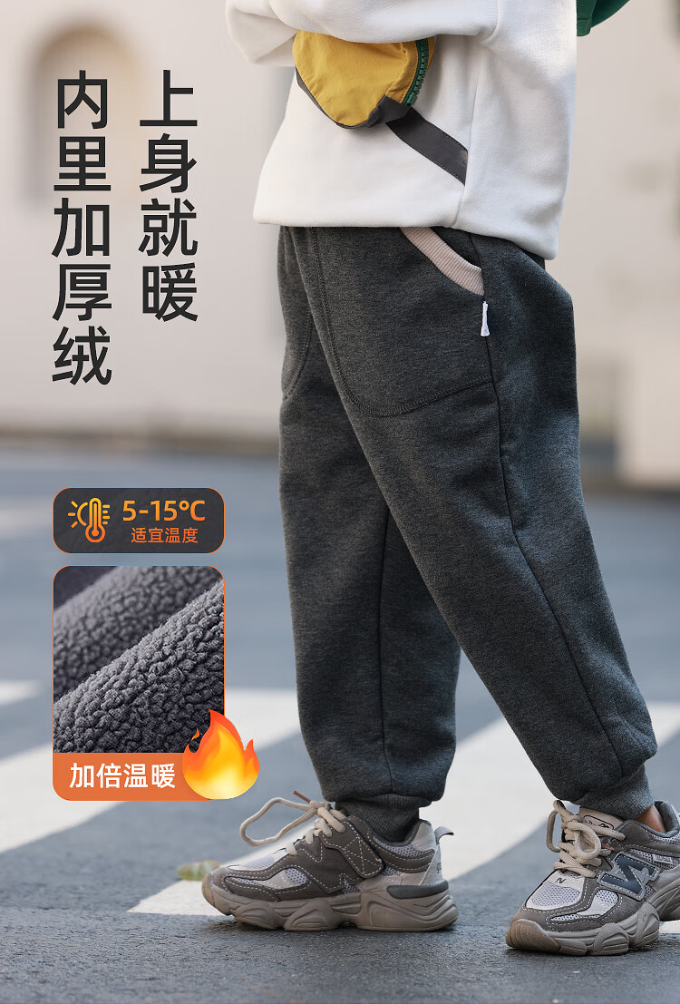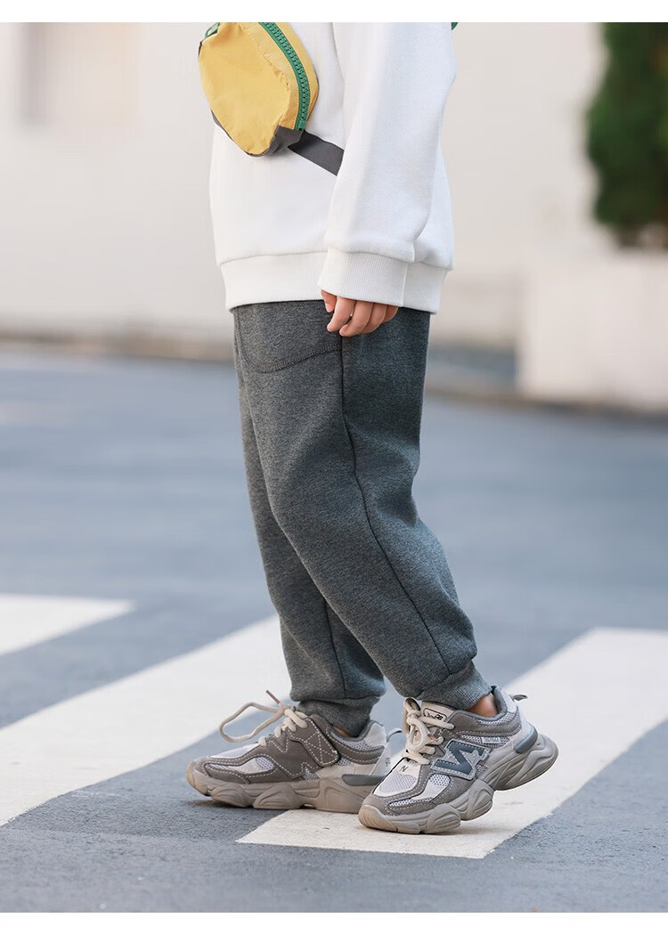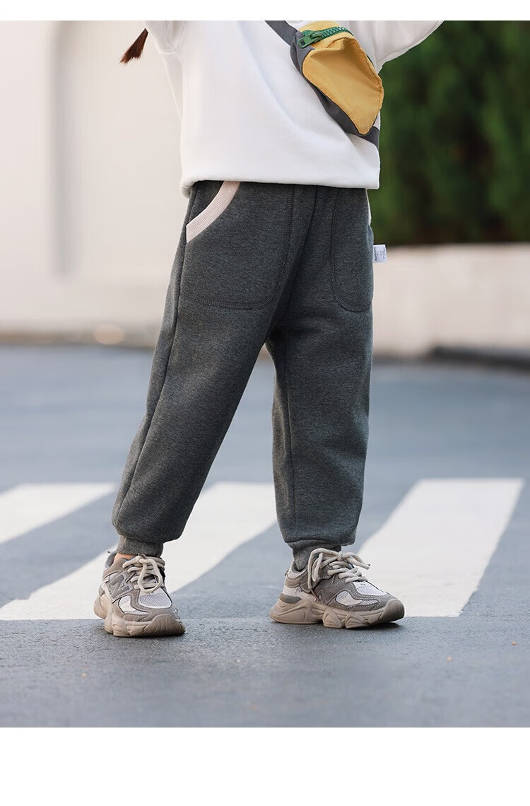 摩芭米mobami秋冬儿童裤子加绒加厚卫裤蓬松保暖束口裤耐磨抗造儿童裤子 碳灰 130