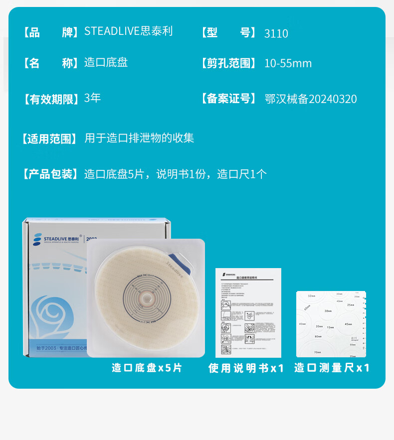 思泰利(STEADLIVE)新升级二件式造口袋60mm卡扣式肠造瘘透明粘贴式大便袋 新品-可微调卡扣式袋体210E(5个)