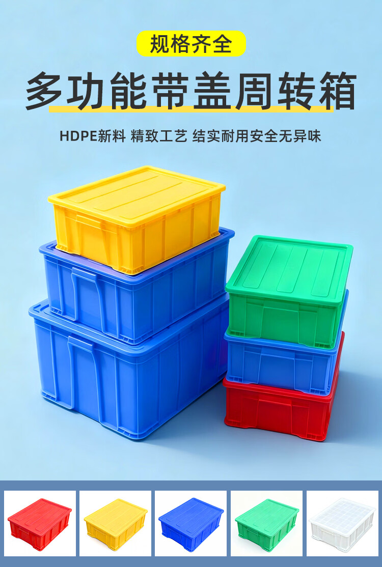 塑料周转箱长方形物流箱工业收纳整理箱胶筐五金工具箱带盖物料盒 17号箱无盖700*450*170mm【白色】